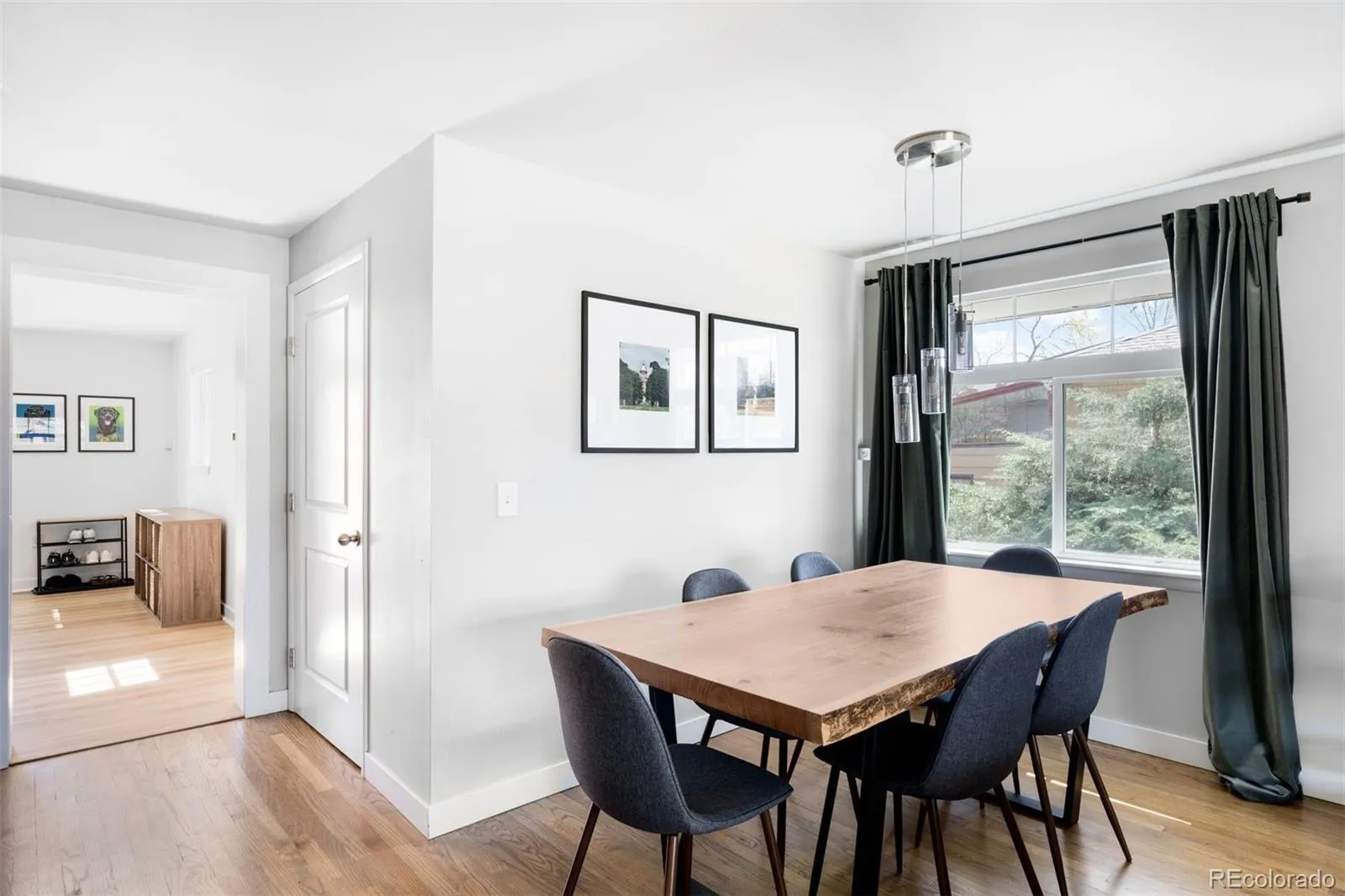 Welcome to 6164 Carr Street, a beautifully updated brick split-level in a convenient Arvada location just minutes from Olde Town. Thoughtfully remodeled and meticulously maintained, this 4-bedroom, 2-bath home blends classic mid-century charm with modern updates. The main level features a bright, open floor plan with hardwood floors, a wood-burning fireplace, and large west-facing windows that bring in abundant natural light. The updated kitchen connects seamlessly to the dining and living areas, creating an easy flow for both everyday living and entertaining. Just off the kitchen is a spacious flex room that functions well as a secondary living room, home gym, or workspace, with direct access to the backyard and patio. Hardwood floors continue upstairs, where you’ll find two generously sized bedrooms with custom closet systems and a full bathroom. The lower level expands your living space with two additional bedrooms and another full bath—ideal for guests or a home office. The functional floor plan and split-level design create separation between spaces while maintaining a cohesive feel throughout. Recent updates enhance both style and livability, making this home truly move-in ready. Outside, the pergola-covered patio extends the living space outdoors, while the large, fully fenced backyard offers ample room for recreation, gardening, or future possibilities. An oversized detached two-car garage, along with a separate storage shed, provides plenty of space for parking, tools, and gear. Located just minutes from Olde Town Arvada’s shops, restaurants, and light rail, with easy access to parks, trails, and major commuter routes, this home offers a seamless balance of space, functionality, and convenience.