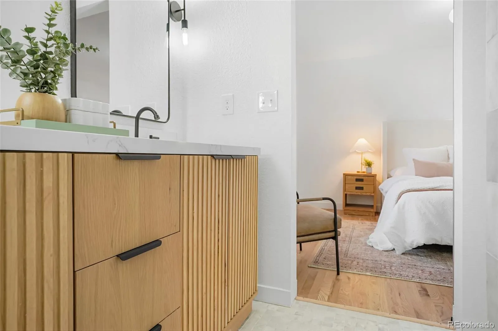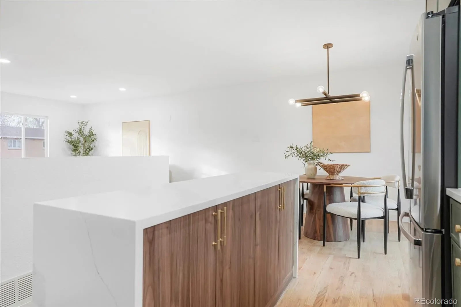 This classic Alta Vista brick rancher is the definition of ‘turn key,’ and will impress even the most discerning homebuyer. Tastefully updated and appointed with stylish finishes and a designer touch, you’ll be right at home the second you walk in the front door. The curb appeal is real with new exterior paint, a new eye catching front door, brand new roof and windows, as well as off street parking in addition to the attached one car garage, this home is the talk of the block. The main floor is bright and flows beautifully from living room, to dining to kitchen, and with new hardwood floors throughout. The large kitchen has a multitude of storage, quartz countertops, stylish backsplash, new stainless steel appliances and a useful island with seating. The rest of the main floor features 3 large bedrooms and a full bathroom with modern tile flooring and shower surround, as well as a new vanity. A primary retreat with ample closet space also boasts a 3/4 en suite with a double vanity, new fixtures and designer finishes. The basement contains an additional living room, two more bedroom (non conforming) spaces, the third bathroom, and a large utility/laundry room with plenty of square footage for customization; maybe additional storage shelving or a built out laundry station. All of this and more, including all new HVAC (water heater, furnace and central AC), situated near Olde Town Arvada and all it’s dining and shopping, bring your buyers to Alta Vista!
