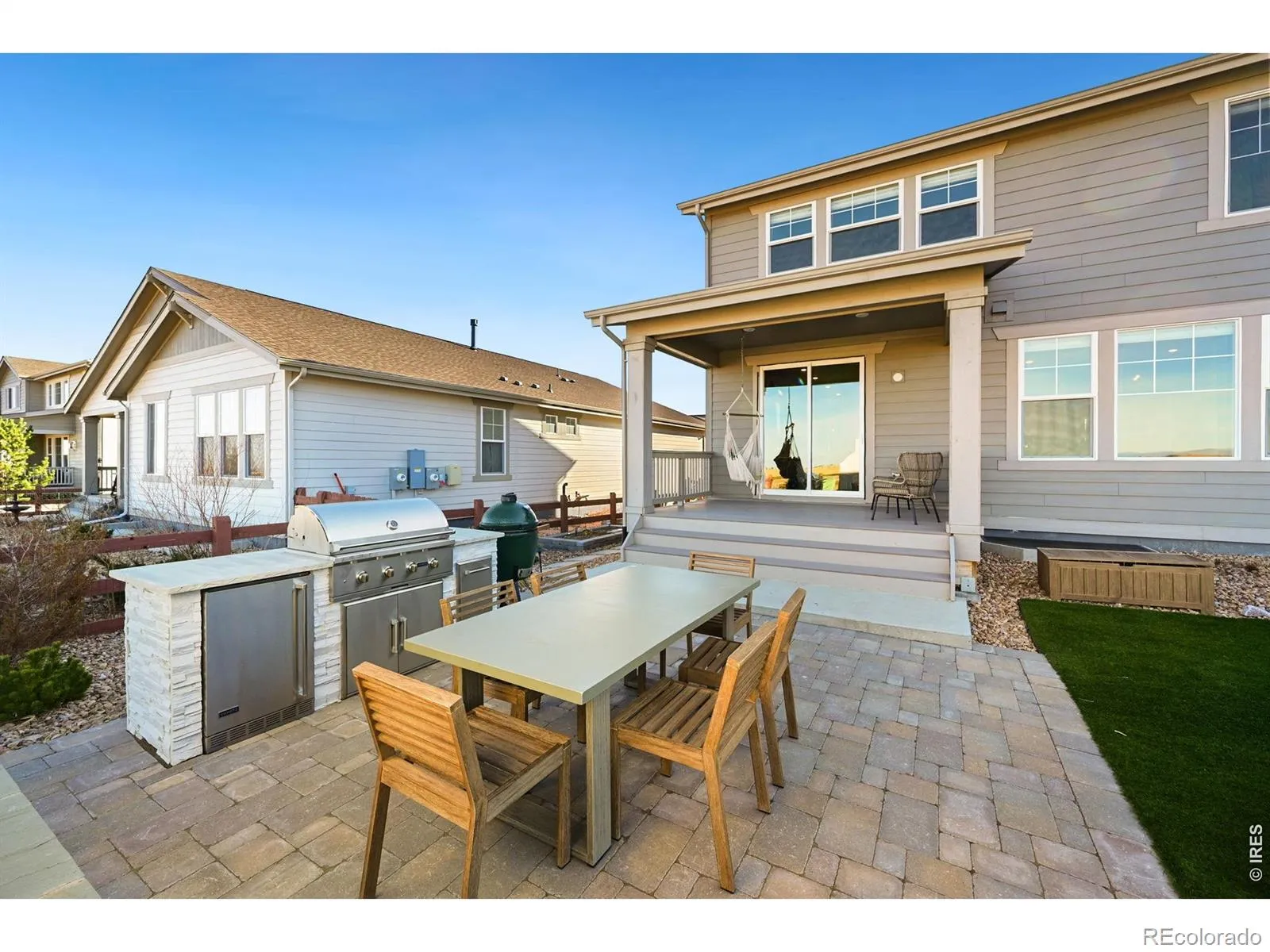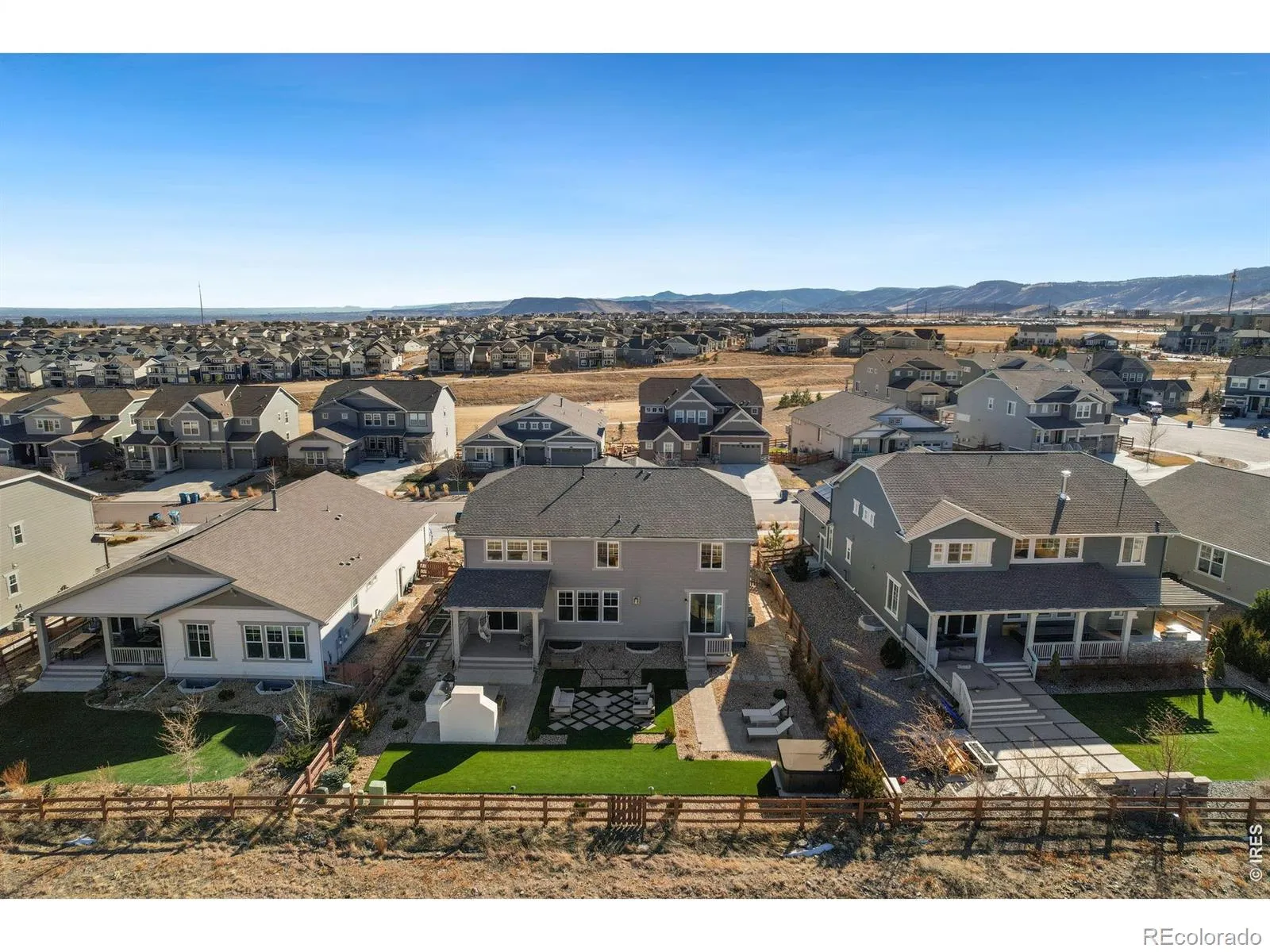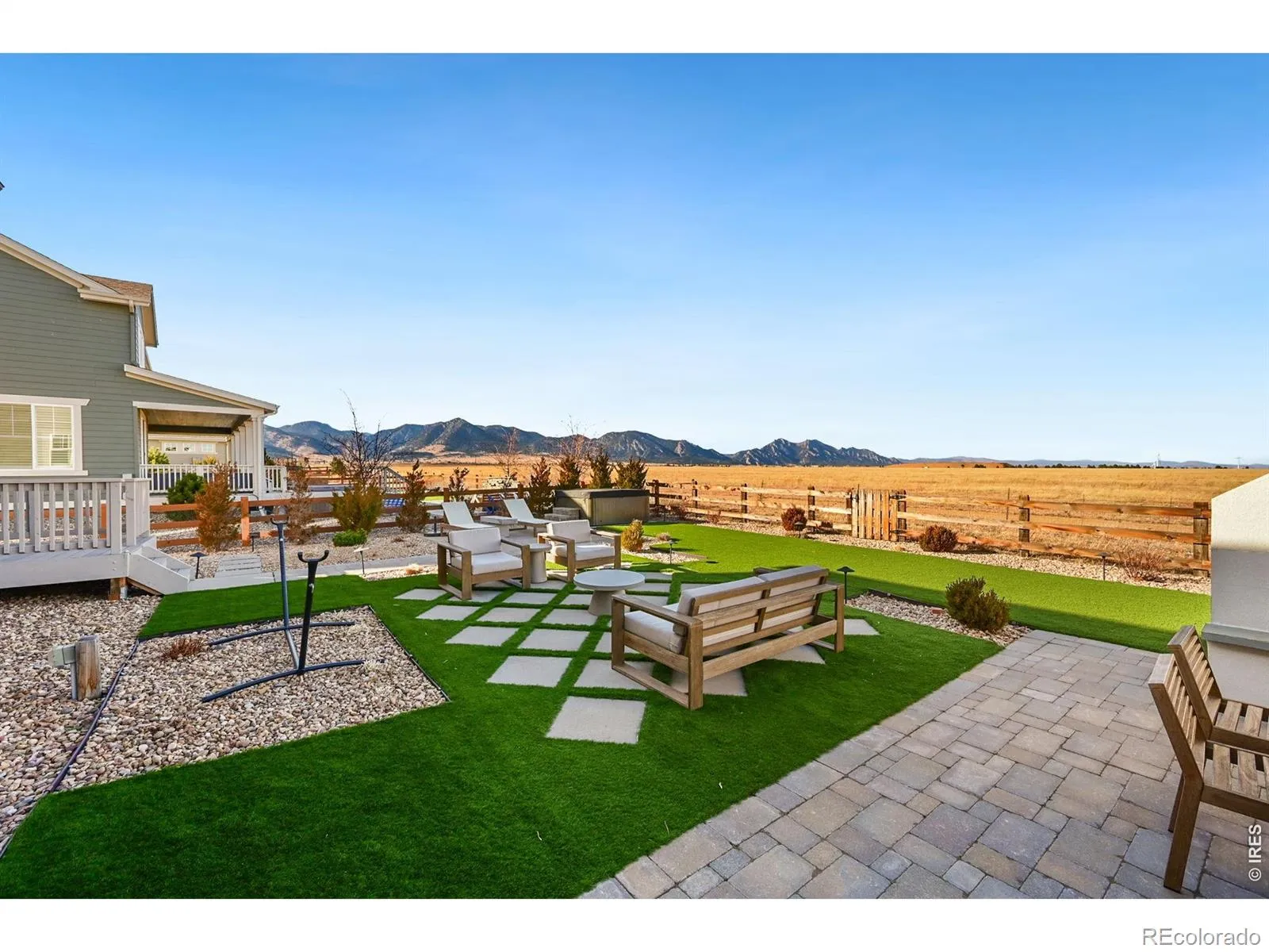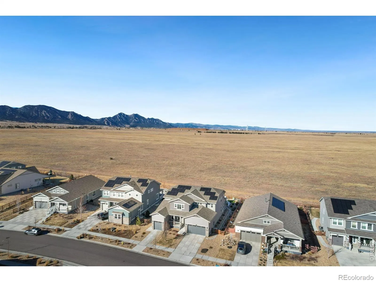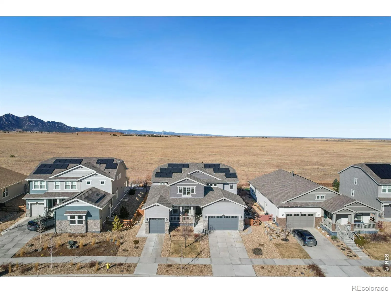 This Next Gen Superhome offers a rare two-home layout on a premium homesite backing to the wildlife refuge with mountain views including the Flatirons. With unmatched privacy, open space, and frequent wildlife sightings, this setting brings a sense of calm and connection to nature into everyday living. Step outside to a professionally designed backyard that perfectly balances relaxation and entertainment. Enjoy evenings by the custom outdoor fireplace, unwind in the hot tub, or host gatherings on the expansive paver patio with multiple seating and dining areas. Thoughtfully designed, low-maintenance landscaping enhances the space while maximizing the incredible views and privacy. The main level welcomes you with a bright, open-concept design that seamlessly blends the great room, dining area, and a thoughtfully designed kitchen. At the heart of the home, a spacious island provides abundant prep space and storage, with modern finishes and expansive windows. Upstairs, the main residence features five bedrooms along with a generous loft-perfect as a secondary living area, media room, or play space. The primary suite is a true retreat, offering a spa-inspired bath with a walk-in shower, dual vanities, and a large walk-in closet. A secondary bedroom enjoys its own private en suite, while the remaining bedrooms are comfortably sized and well positioned for both privacy and functionality. Adding to the home’s versatility is a private, attached apartment suite with its own entrance and one-car garage. This well-appointed space includes a cozy living area, kitchenette with refrigerator and microwave, a spacious primary bedroom with a three-quarter bath, and a secondary bedroom. A private deck completes the suite, making it ideal for guests, multigenerational living, or a dedicated work-from-home environment. Blending flexible living, refined finishes, and a one-of-a-kind natural setting, this home offers a rare opportunity in a highly sought-after location.
