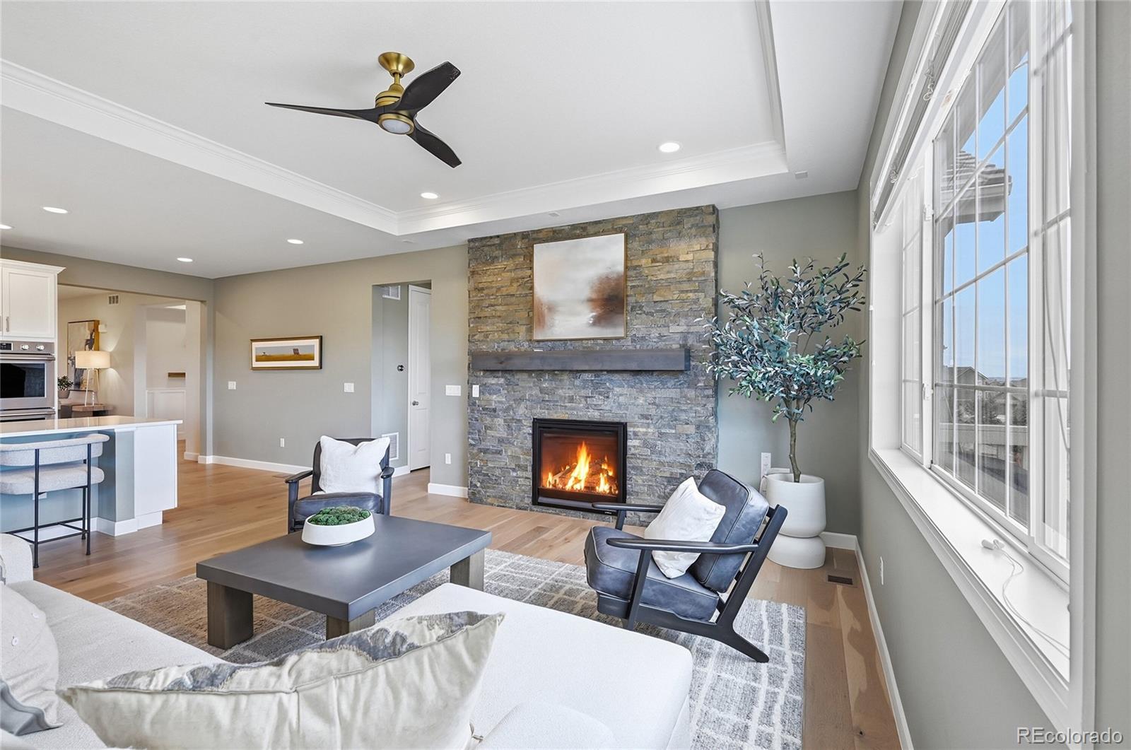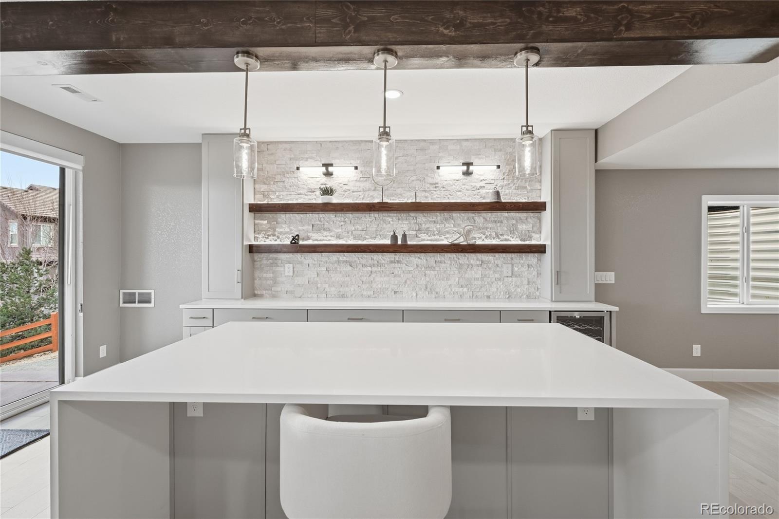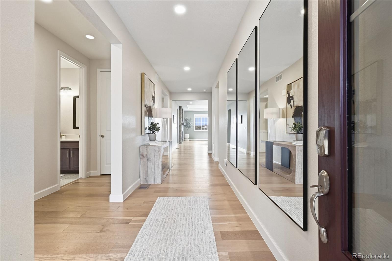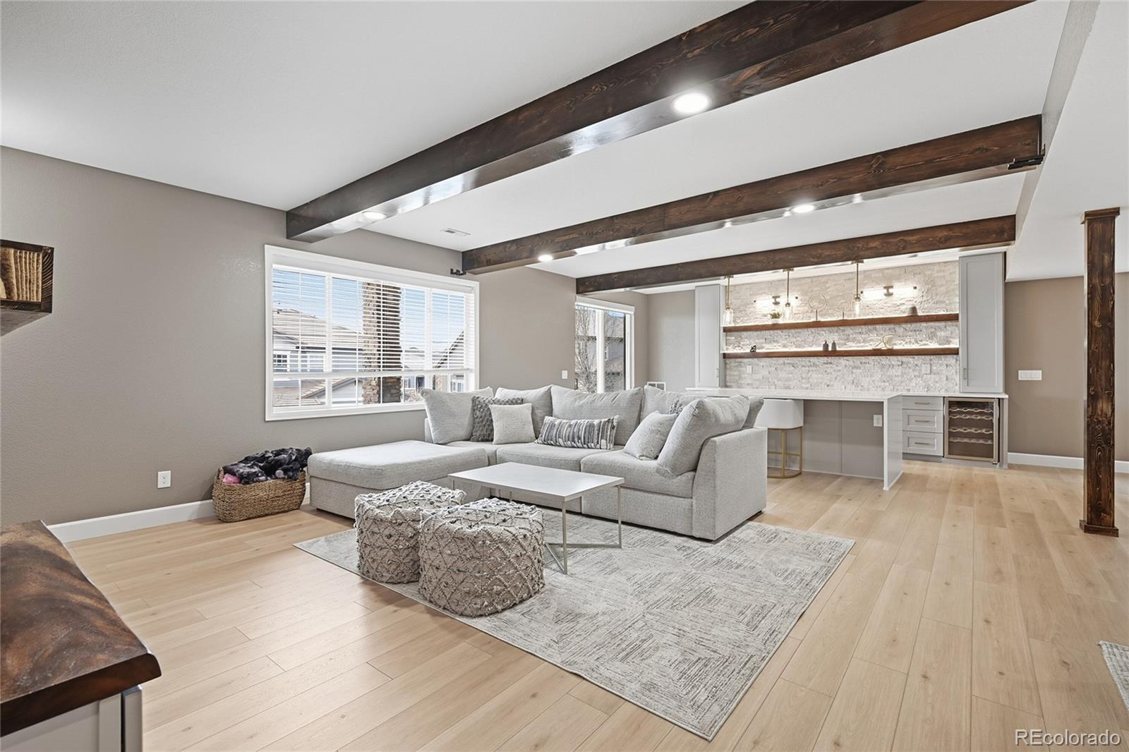 If you’ve been waiting for that rare home that offers both unmatched privacy and breathtaking views—this is it. Perfectly positioned on a quiet cul-de-sac and fronting directly to a National Wildlife Refuge, this exceptional ranch-style home offers a rare blend of natural beauty and elevated design. Enjoy peaceful open space and wildlife from the front, while the backyard showcases stunning city and mountain views along with unforgettable sunsets. Thoughtfully updated throughout, the home features 4 bedrooms, 3 bathrooms, and a spacious 3-car garage. The main level is highlighted by rich hardwood flooring, fresh designer paint throughout walls, doors, baseboards, and ceilings, new recessed lighting, and ceiling fans in every room. A striking custom fireplace wall creates a warm, sophisticated focal point, while the beautifully updated kitchen offers a new island, upgraded lighting, and newer appliances. Custom built-ins throughout closets, pantry, and storage areas maximize both function and style. The walk-out basement is designed for entertaining with luxury vinyl plank flooring, custom wood ceiling beams, and a dramatic media wall with fireplace. A spacious bar and entertainment area features an expansive island, custom cabinetry, shelving, and designer lighting—perfect for hosting or relaxing. Additional upgrades include new stair flooring and a custom iron handrail. Outdoor living is equally impressive with a redesigned landscape, new driveway, irrigation system, artificial turf, and a sealed walk-out patio positioned to capture the city and mountain views. The finished 3-car garage is a standout with epoxy flooring, built-in cabinetry, heating, new openers, and a mounted TV and sound system. Fully owned solar—no lease, just savings! A rare turnkey opportunity where luxury, comfort, and nature converge. Candelas offers trails, parks, pools, fitness centers, and top schools—all surrounded by open space with easy access to Boulder, Golden, and Denver.