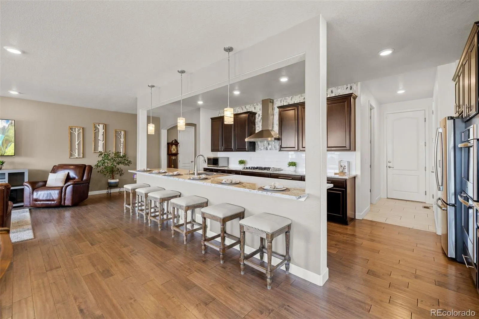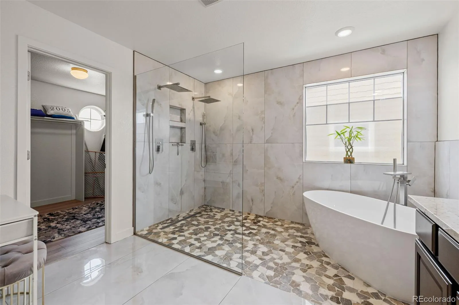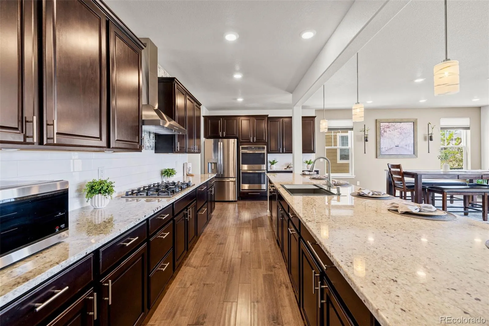 Discover a lifestyle of unparalleled flexibility & modern elegance in this 2019 Lennar Next Gen® Superhome, perfectly positioned in Arvada’s premier Candelas community. This 6 bedroom, 6 bath residence is designed to evolve with you, featuring a sophisticated “home within a home” on the main level. The private main-floor suite with its own entrance, living area, kitchenette, laundry, bedroom, beautifully remodeled bath, and dedicated garage offers unmatched flexibility—ideal for extended living, long-term guests, or potential rental income, giving you options that adapt to your lifestyle. At the heart of the home, the open-concept layout brings everyone together while maintaining a sense of space. The chef-inspired kitchen, complete with granite countertops, stainless steel appliances, abundant cabinetry, oversized island, and upgraded 6-burner gas cooktop with hood, makes everyday living and entertaining effortless & inviting. Upstairs, a spacious loft provides a versatile retreat for work or relaxation with upgraded luxury vinyl plank flooring, while five generously sized bedrooms ensure comfort for all. The primary suite serves as a true escape, featuring a tray ceiling and a newly renovated en-suite with a soaking tub and luxurious shower designed for unwinding at the end of the day.