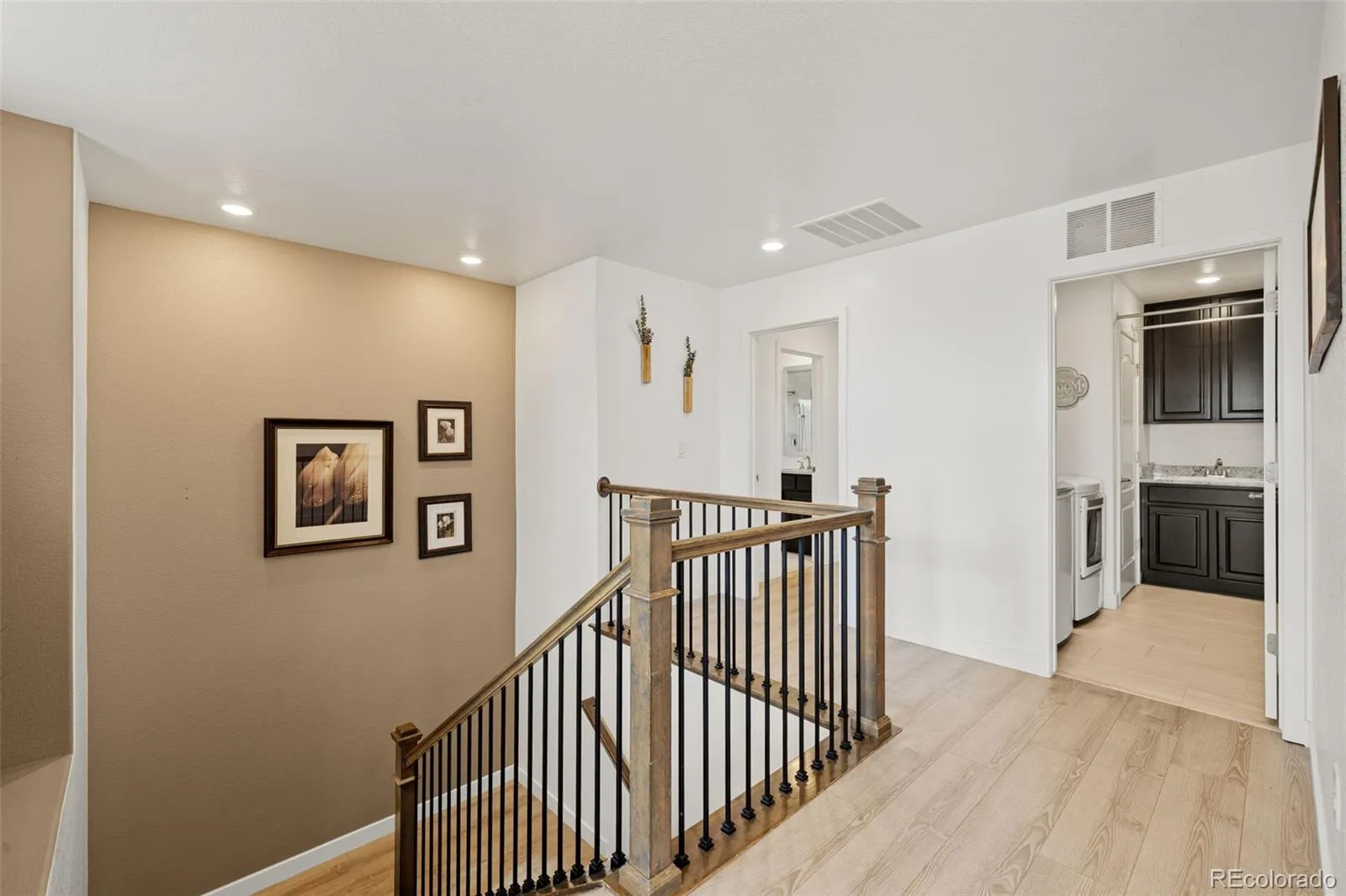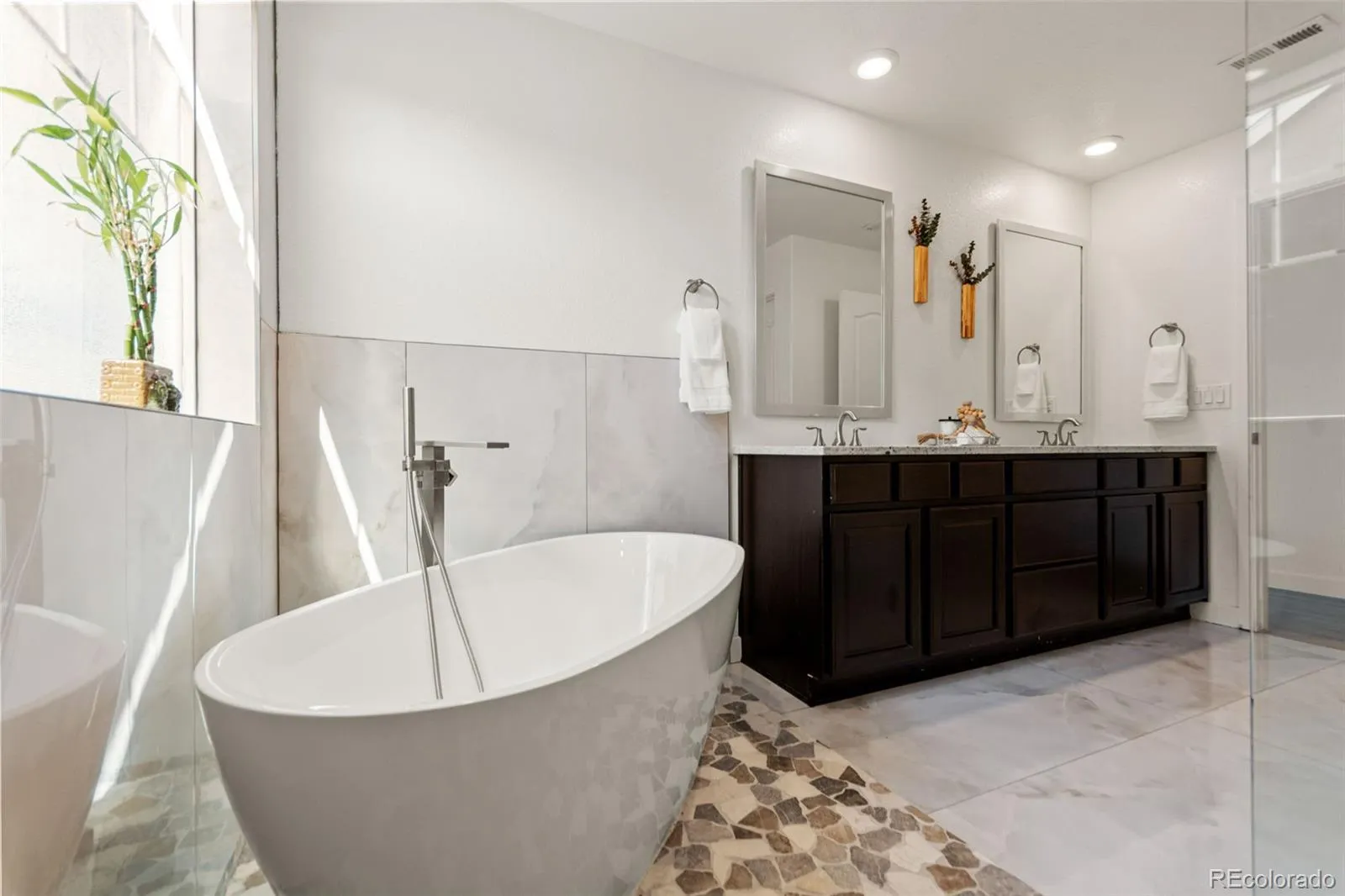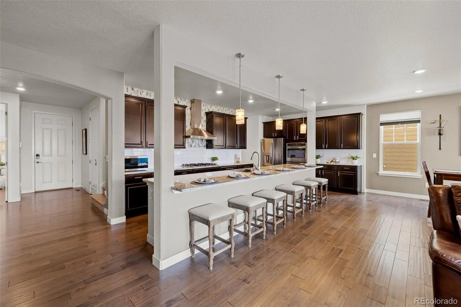 Discover a lifestyle of unparalleled flexibility & modern elegance in this 2019 Lennar Next Gen® Superhome, perfectly positioned in Arvada’s premier Candelas community. This 6 bedroom, 6 bath residence is designed to evolve with you, featuring a sophisticated “home within a home” on the main level. The private main-floor suite with its own entrance, living area, kitchenette, laundry, bedroom, beautifully remodeled bath, and dedicated garage offers unmatched flexibility—ideal for extended living, long-term guests, or potential rental income, giving you options that adapt to your lifestyle. At the heart of the home, the open-concept layout brings everyone together while maintaining a sense of space. The chef-inspired kitchen, complete with granite countertops, stainless steel appliances, abundant cabinetry, oversized island, and upgraded 6-burner gas cooktop with hood, makes everyday living and entertaining effortless & inviting. Upstairs, a spacious loft provides a versatile retreat for work or relaxation with upgraded luxury vinyl plank flooring, while five generously sized bedrooms ensure comfort for all. The primary suite serves as a true escape, featuring a tray ceiling and a newly renovated en-suite with a soaking tub and luxurious shower designed for unwinding at the end of the day.