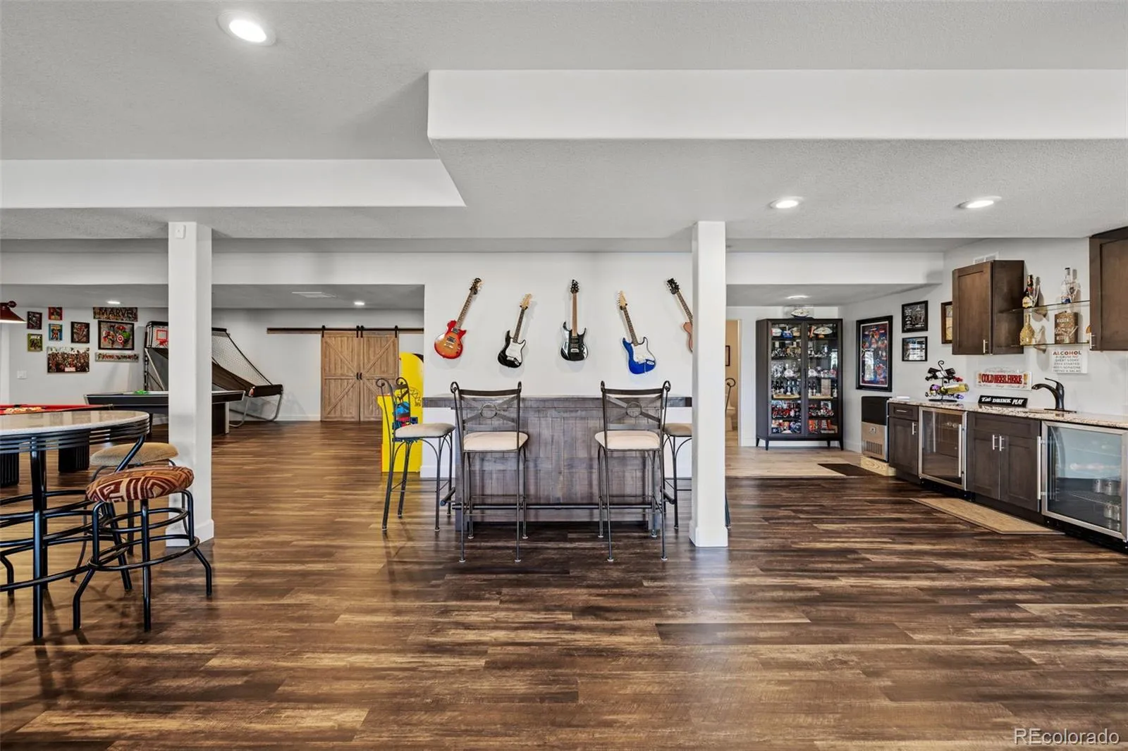 The finished walkout basement expands your living space, offering a large game room with LVP flooring, wet bar with dual beverage refrigerators, and a stylish half bath—perfect for hosting gatherings, movie nights, or creating your ideal recreation space.