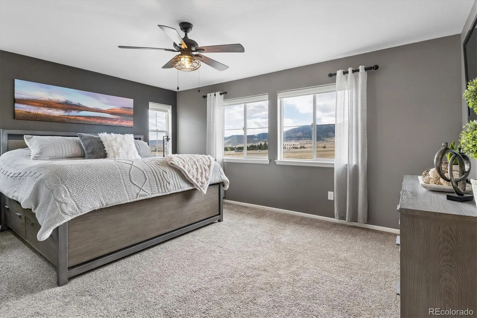 The main level also offers a private office, guest bedroom, and 3/4 bath—ideal for multigenerational living or work-from-home flexibility. Upstairs, the spacious primary suite captures breathtaking mountain views and includes a spa-inspired bath with dual vanities, walk-in shower, and generous closet space. A versatile loft and additional bedrooms provide room for everyone.