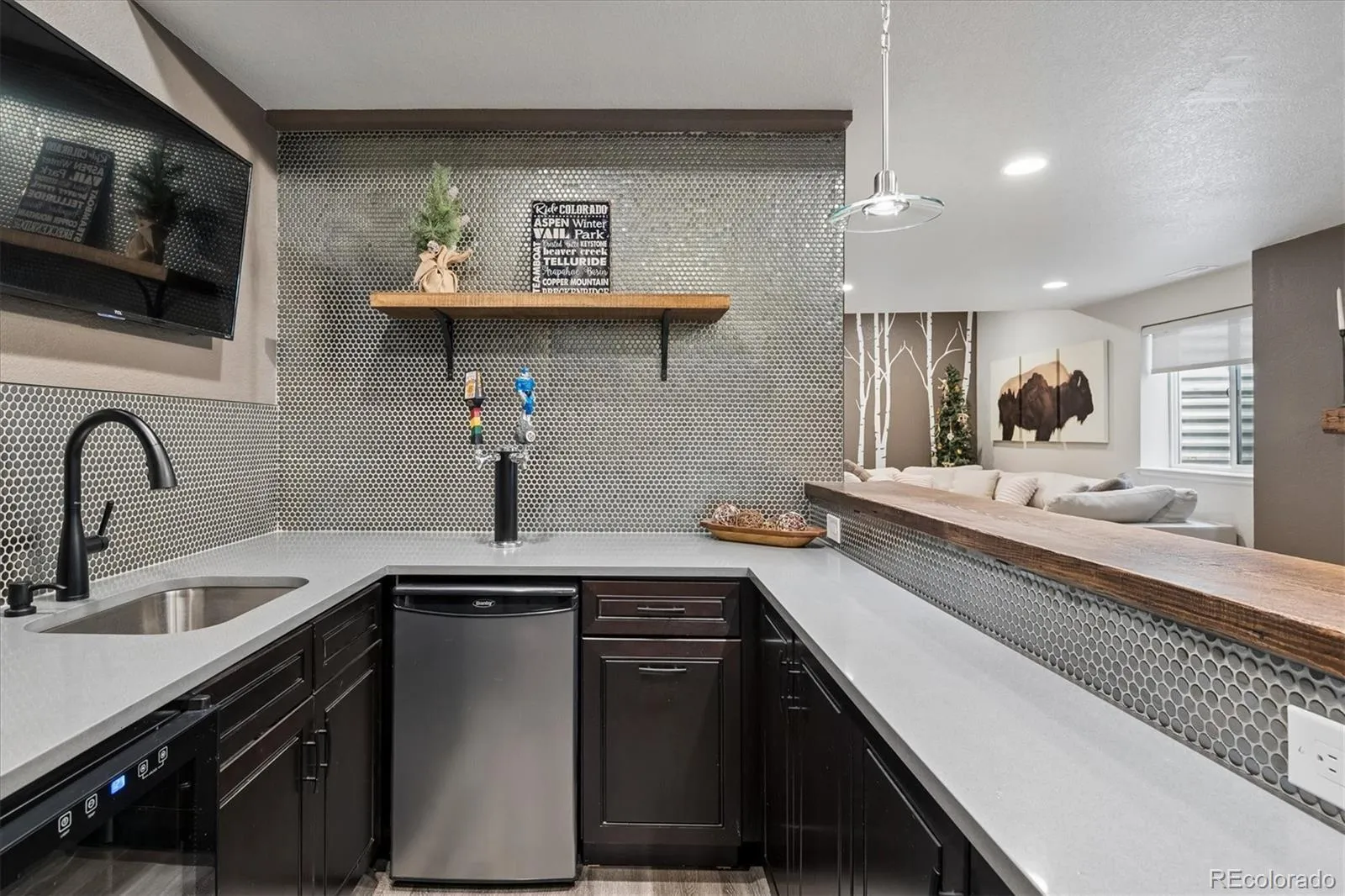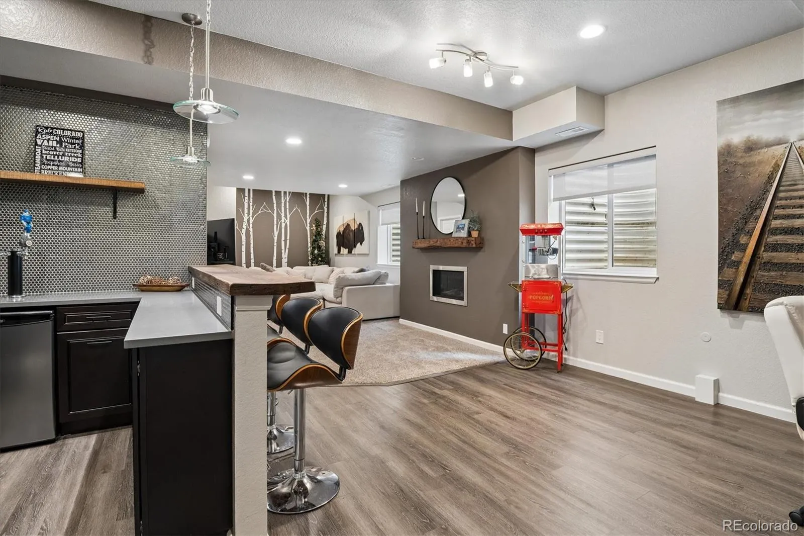 The finished basement is an entertainer’s dream, complete with a full wet bar/kitchenette, expansive recreation and game areas, additional bedroom, and bath—perfect for guests or extended stays.