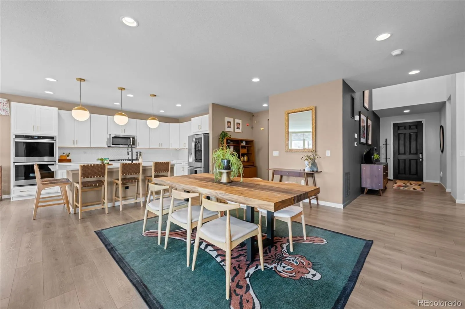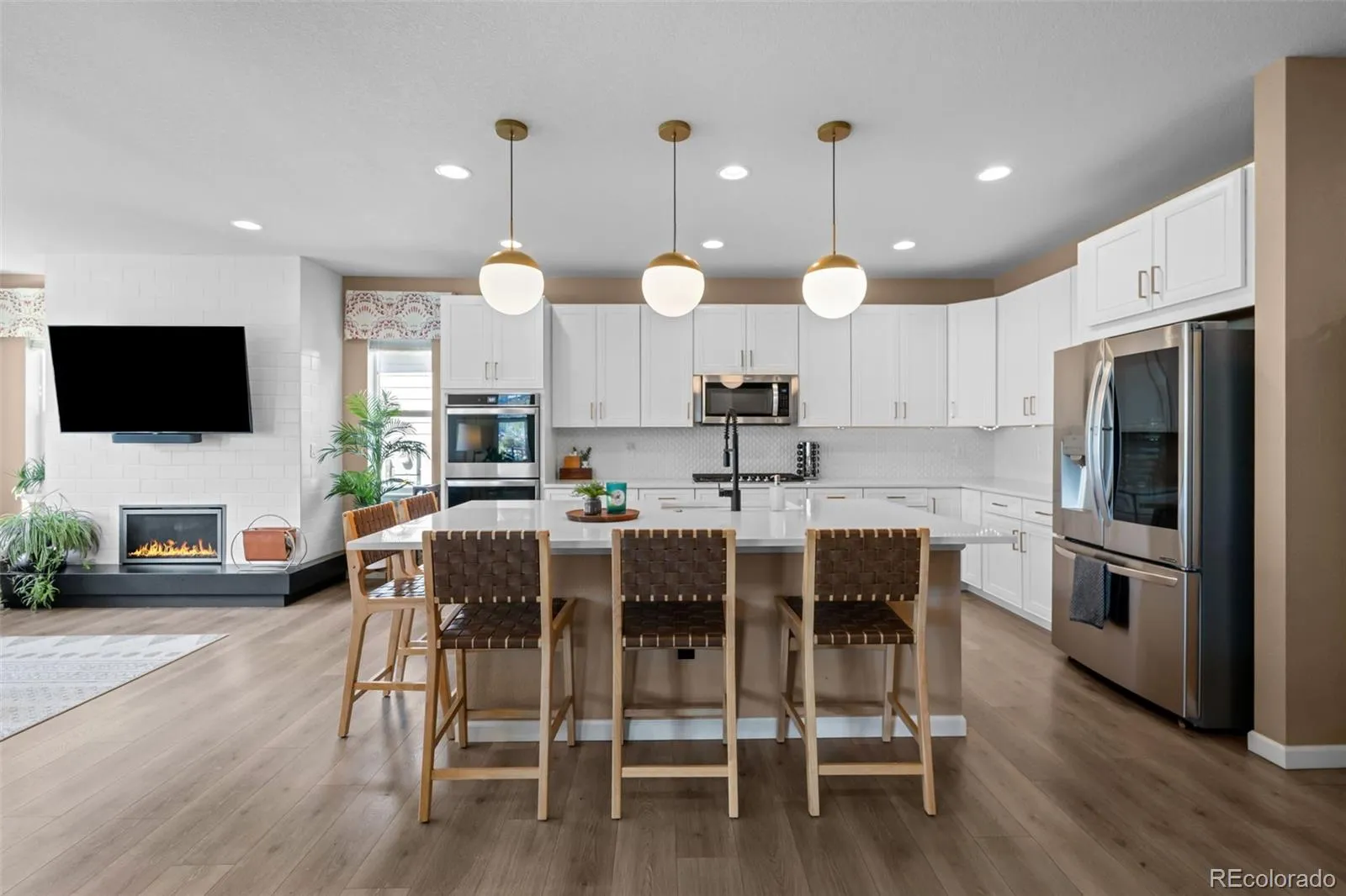 Welcome to 9395 Antero Street! Enjoy a multitude of upgrades inside and outside the home. A new front porch with Trex decking and tiered landscaping greets you and your guests. Inside, the home features an inviting open concept living space with luxury vinyl plank floors throughout the main living space. The kitchen is a chef’s dream with quartz countertops, a walk-in pantry, island, upgraded pendant lighting, stainless steel appliances, including double ovens and a gas cooktop. The dining room opens to the kitchen and living room for seamless entertaining, plus there are sliding doors off of this area to the large covered patio that can be enjoyed year round. The living room is anchored by a gas fireplace, perfect for cozying up during winter nights. The expansive primary suite offers a sanctuary after a long day with a luxurious spa-like bathroom, a large walk-in closet, and abundant natural light. Two additional bedrooms each have their own upgraded en suite bathroom. There is also a loft of the upper level, the perfect hang out space, and the laundry room. The full basement is a standout feature, featuring a large family room-ideal for hosting friends and family. An additional bedroom that is currently being used as a gym, a newer bathroom, and ample storage complete the basement. Located in the coveted Candelas neighborhood, this home offers the ultimate in community living with amenities such as a fitness center, clubhouse, pool, tennis courts, basketball courts, parks, trails, vibrant community events, and top rated schools. Easy access to Denver, Boulder, and the mountains makes this the perfect blend of comfort and convenience.
