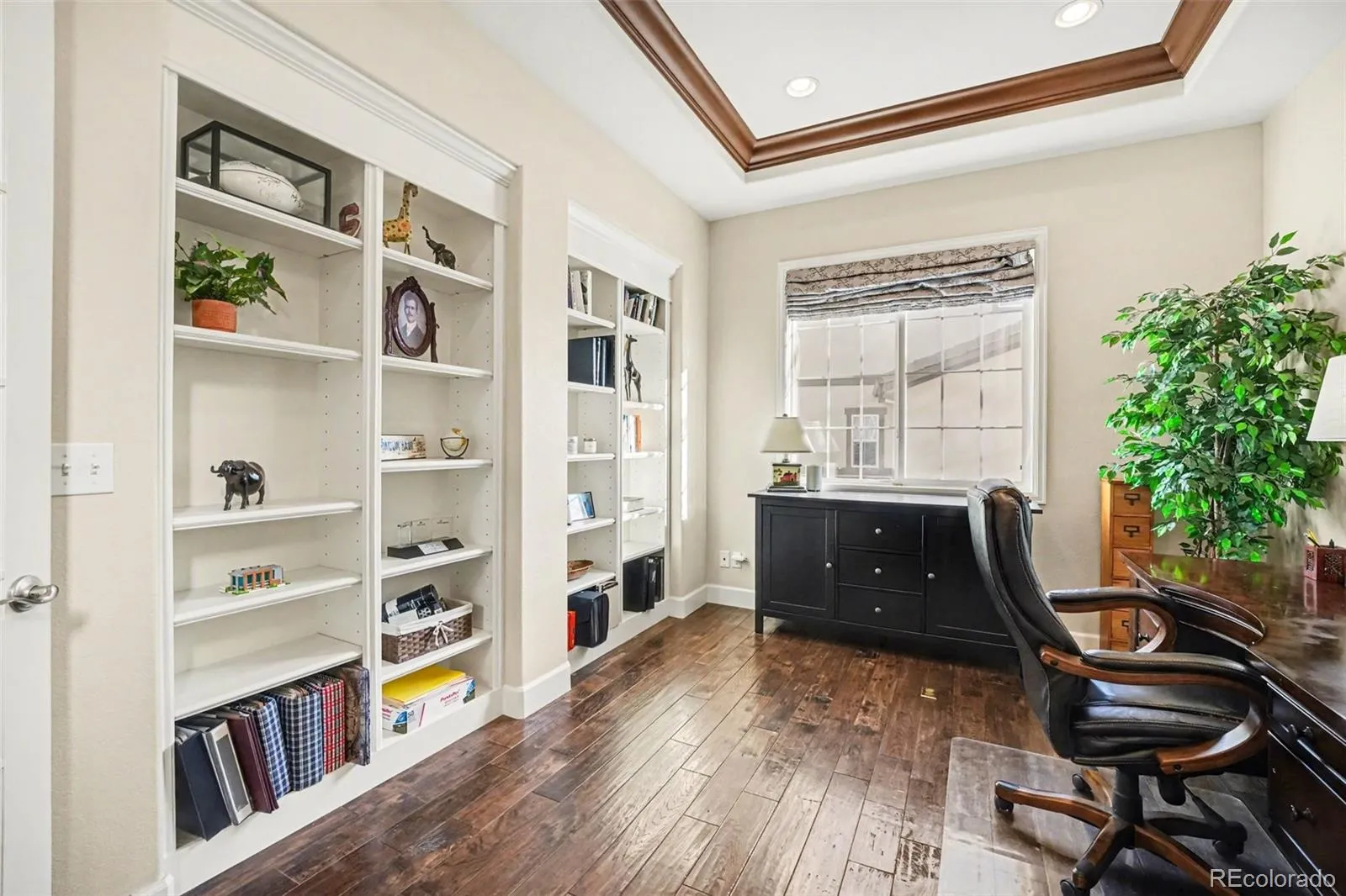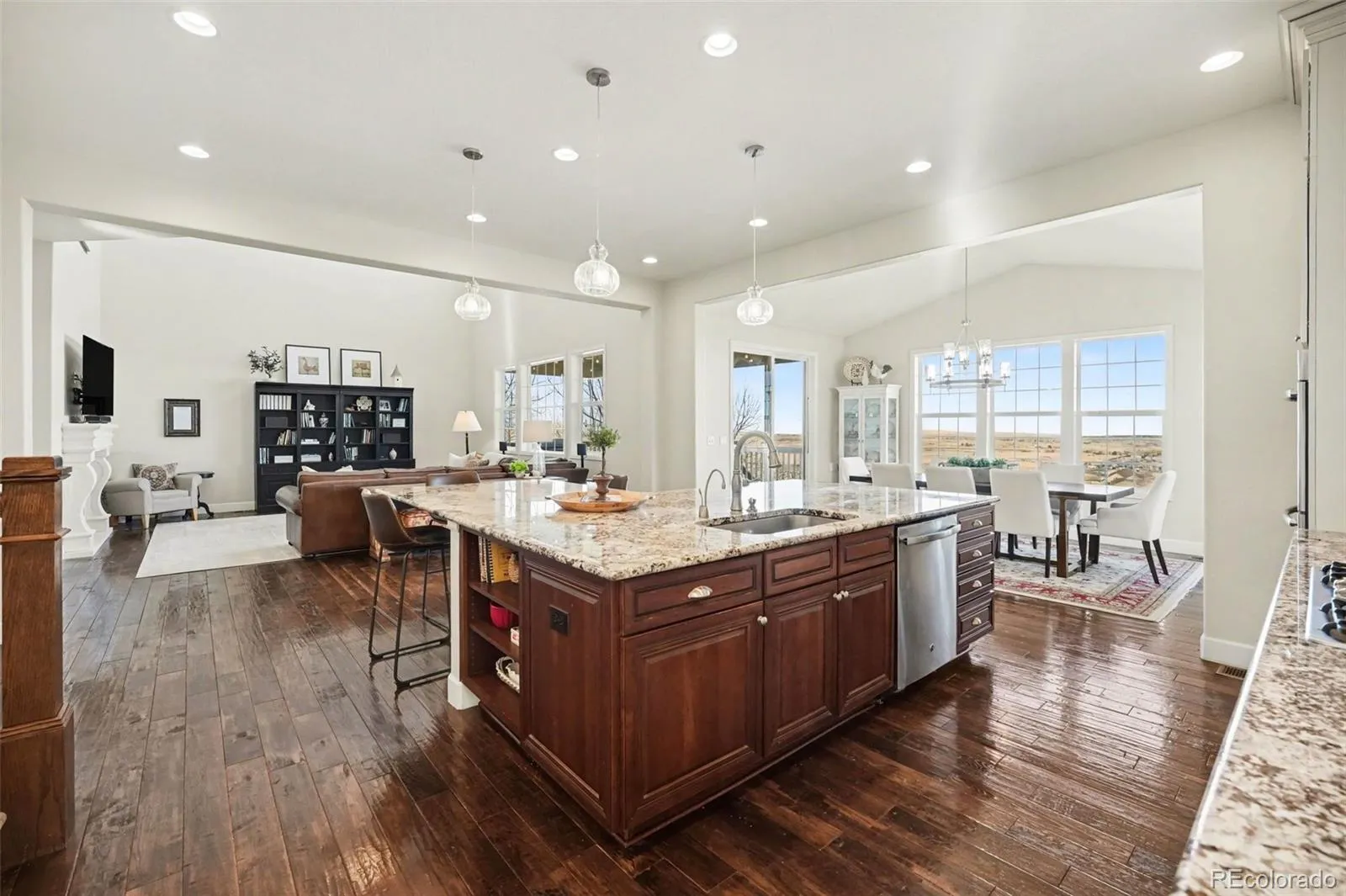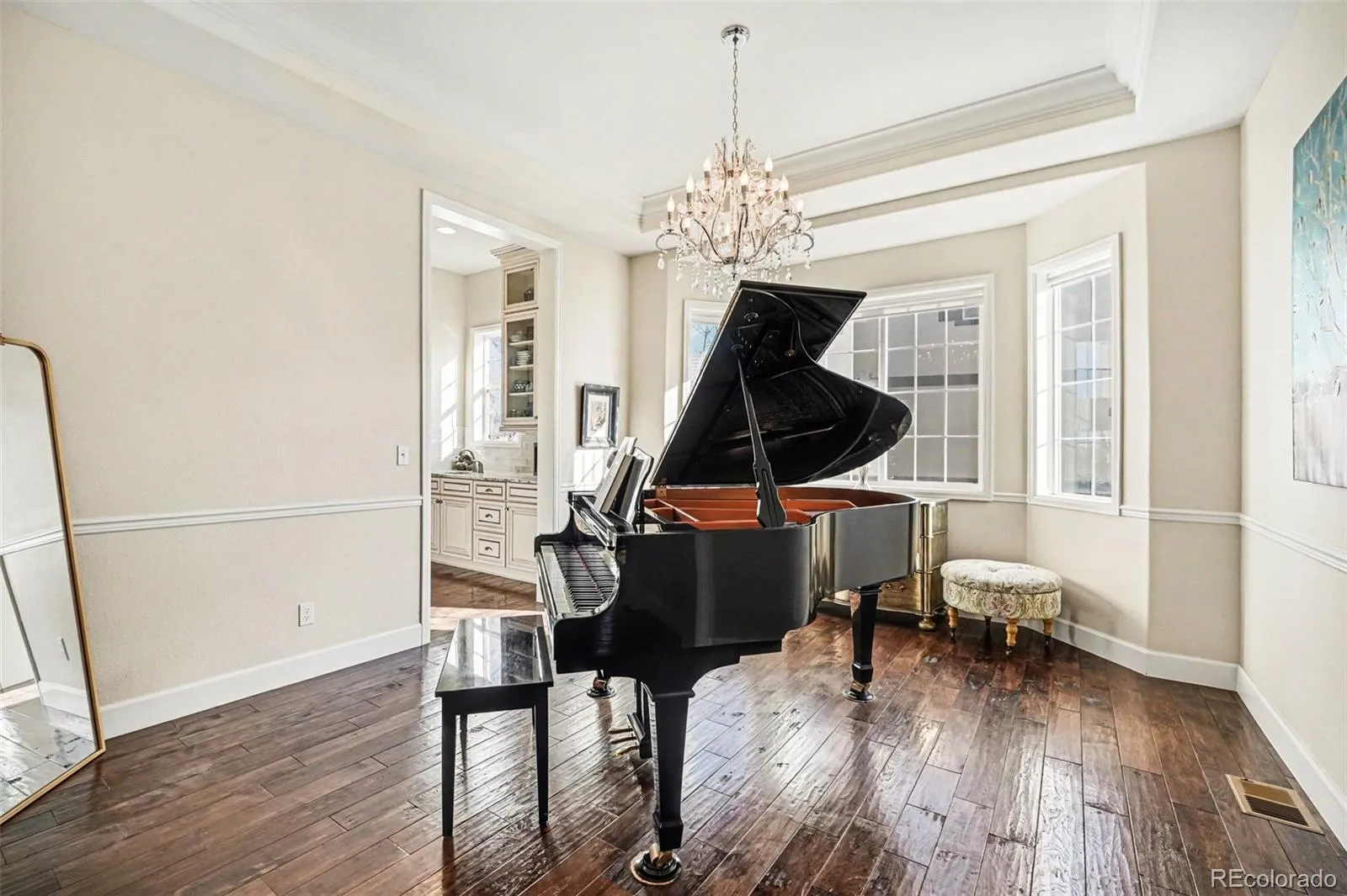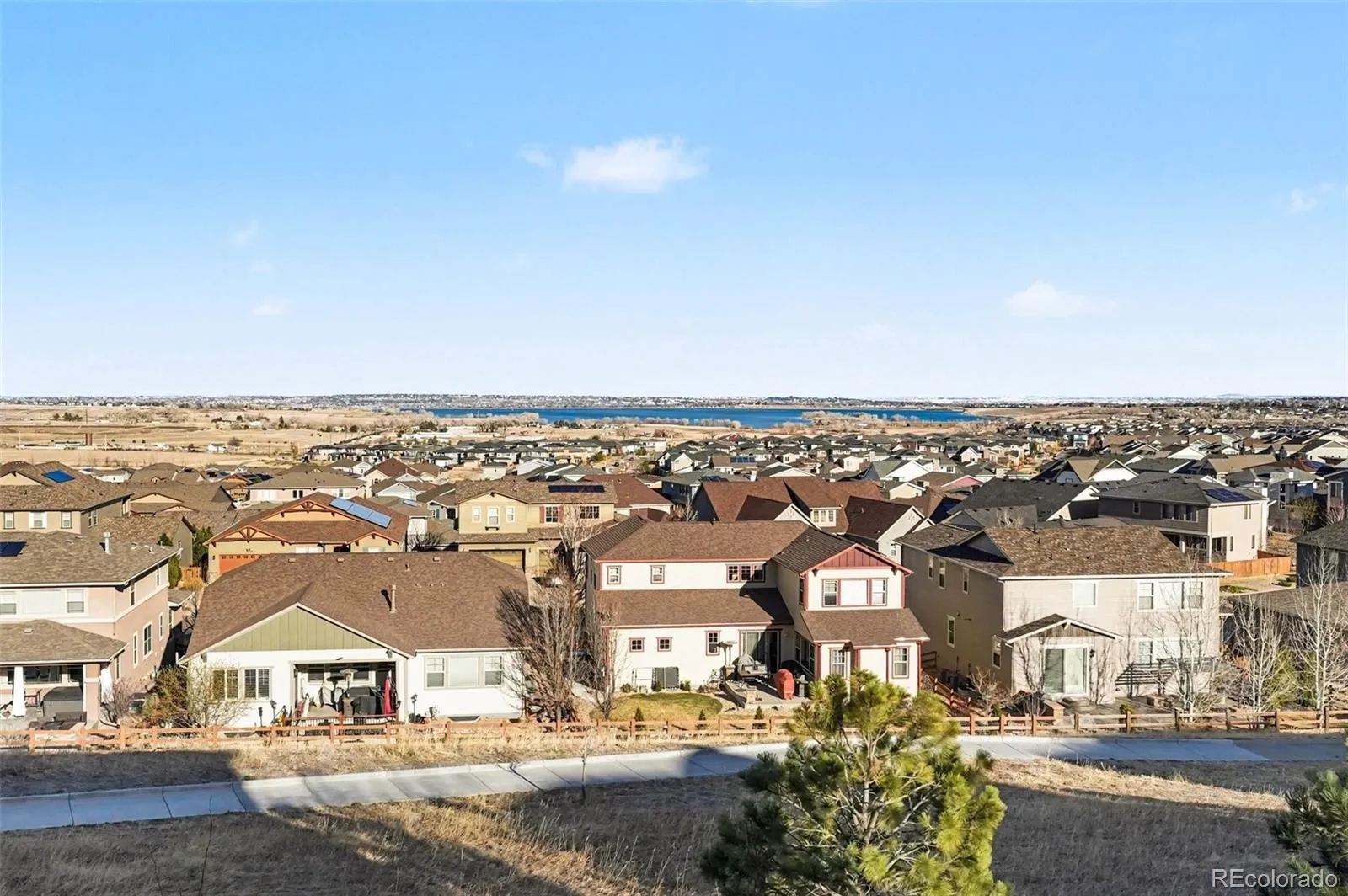 This exceptional 6 bedroom, 6 bathroom residence is ideally positioned in a serene setting with sweeping 180 degree views of Standley Lake & the Downtown Denver skyline. Backing to open green space with direct access to scenic biking & hiking trails, the home offers a rare blend of privacy, natural beauty & outdoor access. A grand entrance welcomes you with a mahogany front door, soaring ceilings, chandelier & dramatic double sided staircase. Hardwood floors flow throughout the main level & the entry showcases a handcrafted inlaid tile mosaic. The formal living room is filled with natural light, creating a warm space to relax beside one of the home’s three fireplaces. The main level also features a private office, along with a main floor bedroom & 3/4 bath ideal for multigenerational living or guests. The beautifully updated kitchen features a remodeled Butler’s pantry & opens to expansive gathering spaces designed for entertaining & everyday living. Gather around the marble L shaped island with ceiling height cabinetry, tile backsplash, gas stove & pendant lighting. The formal dining room sits just off the kitchen with incredible views. Upstairs, retreat to the expansive primary suite with a private reading den, fireplace, five piece bath & impressive walk in closet. The upper level also includes a 2nd guest suite & two additional generously sized bedrooms connected by a shared full bath. The finished basement expands the home’s versatility with an additional bedroom, full bath & flexible living space ideal for a home theater, game room or recreation lounge, plus ample unfinished storage. Enjoy the private backyard hot tub or breathtaking sunrises from the covered east facing deck with sweeping views. Residents also enjoy two pool & fitness centers, six parks, tennis courts, scenic trails & an on site K-8 school. This stunning property is sure not to last long!