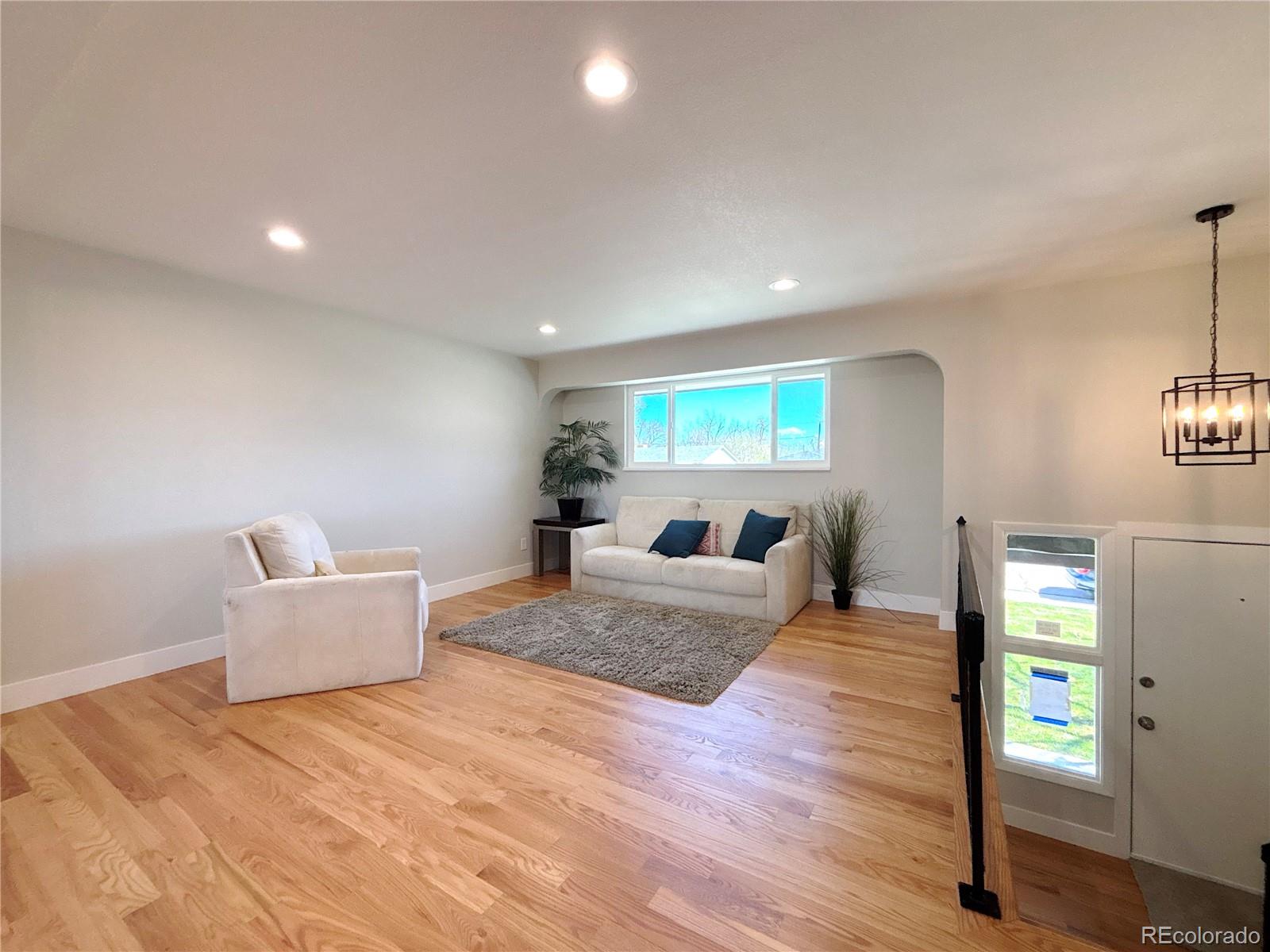Welcome to this charming single-family home in Arvada. This updated 4-bedroom, 2-bathroom home offers the perfect blend of modern elegance and comfort. Featuring fresh, vibrant paint and upgraded lighting throughout, this home creates a welcoming atmosphere from the moment you step inside. The gorgeous hardwood flooring flows seamlessly through the main level, while brand-new carpet adds a cozy touch to the lower level. The open concept kitchen is a true highlight with beautiful wood cabinetry, luxurious quartz countertops, perfect for cooking and entertaining. The bathroom has been meticulously updated with stylish designer tile. Located in a fantastic neighborhood. Features new electrical panel, new roof and gutters, new landscaping, new restored deck, new furnace and AC! Too much to list! This home is ready for you to move in and start making memories. Don’t miss your chance to see this amazing home – it’s waiting for you!