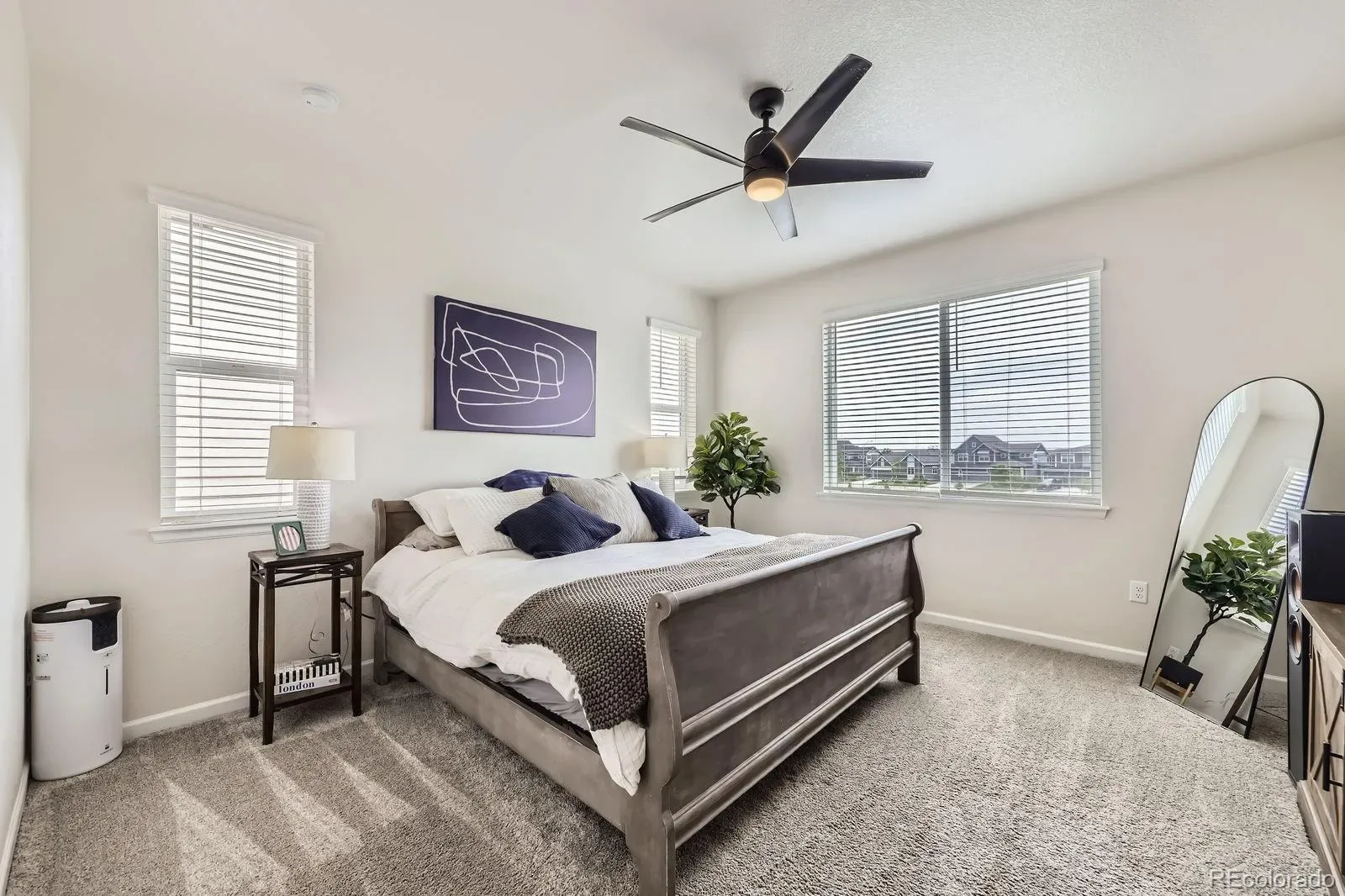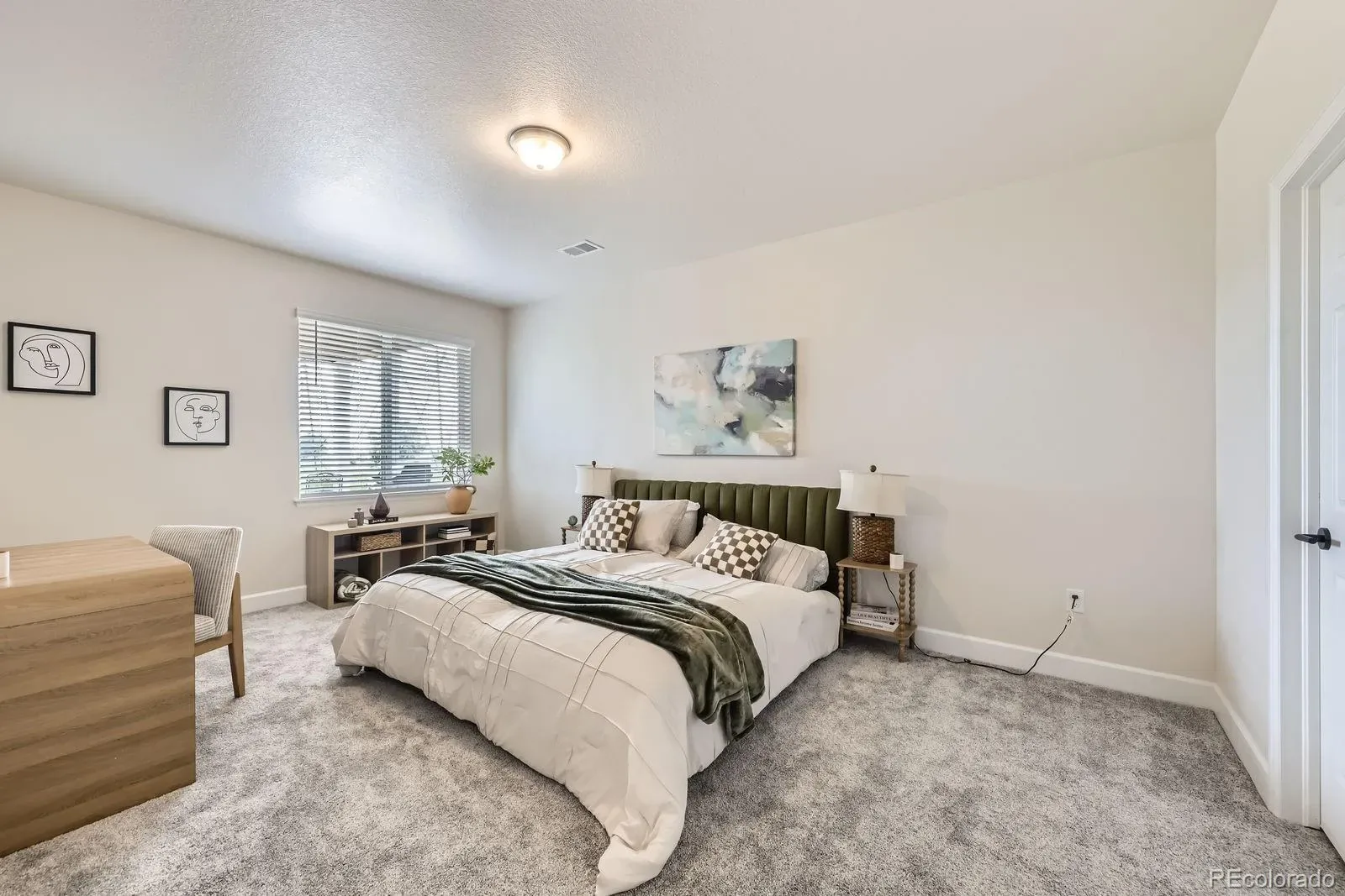 The main floor includes two spacious bedrooms, including a beautiful primary suite with a walk-in closet and a luxurious en-suite bathroom, plus a dedicated home office ideal for remote work or creative projects.