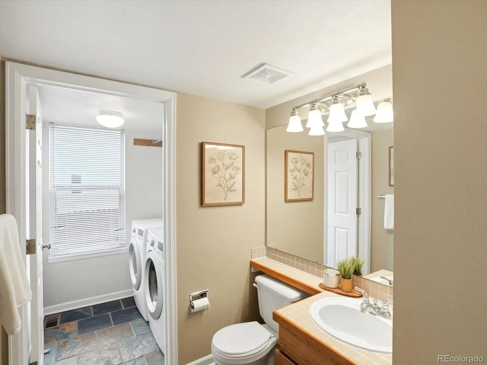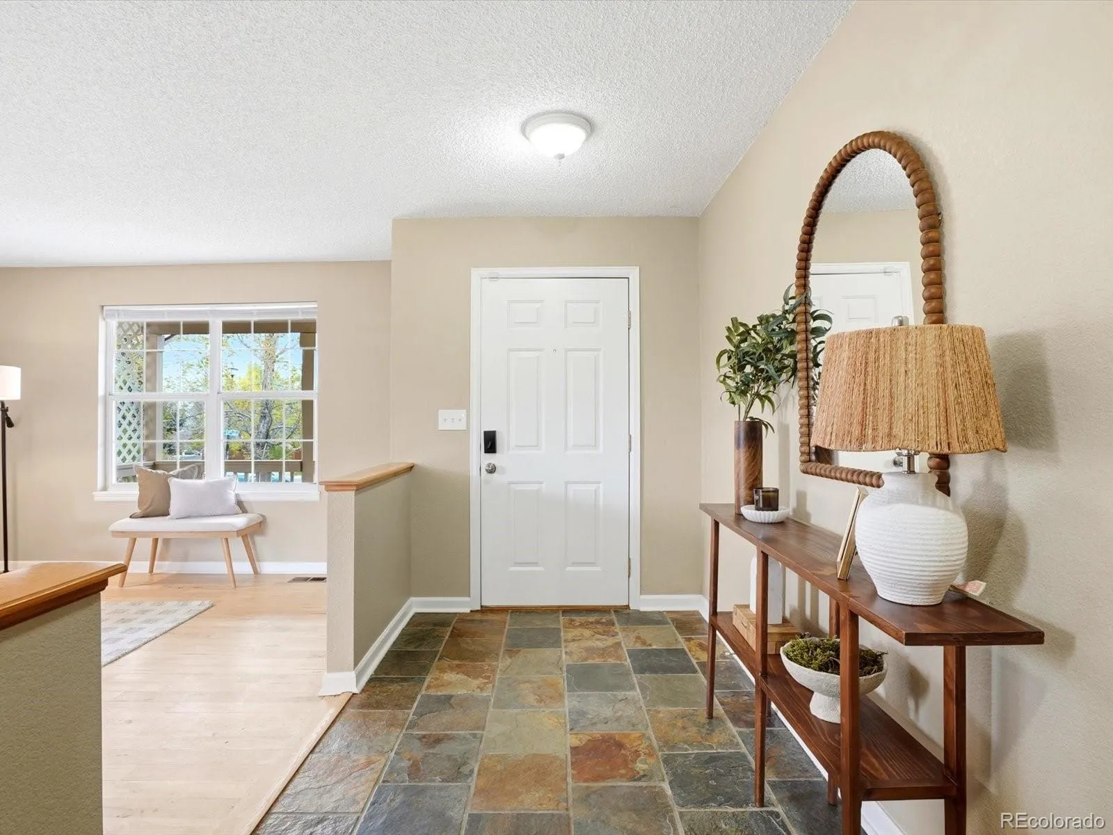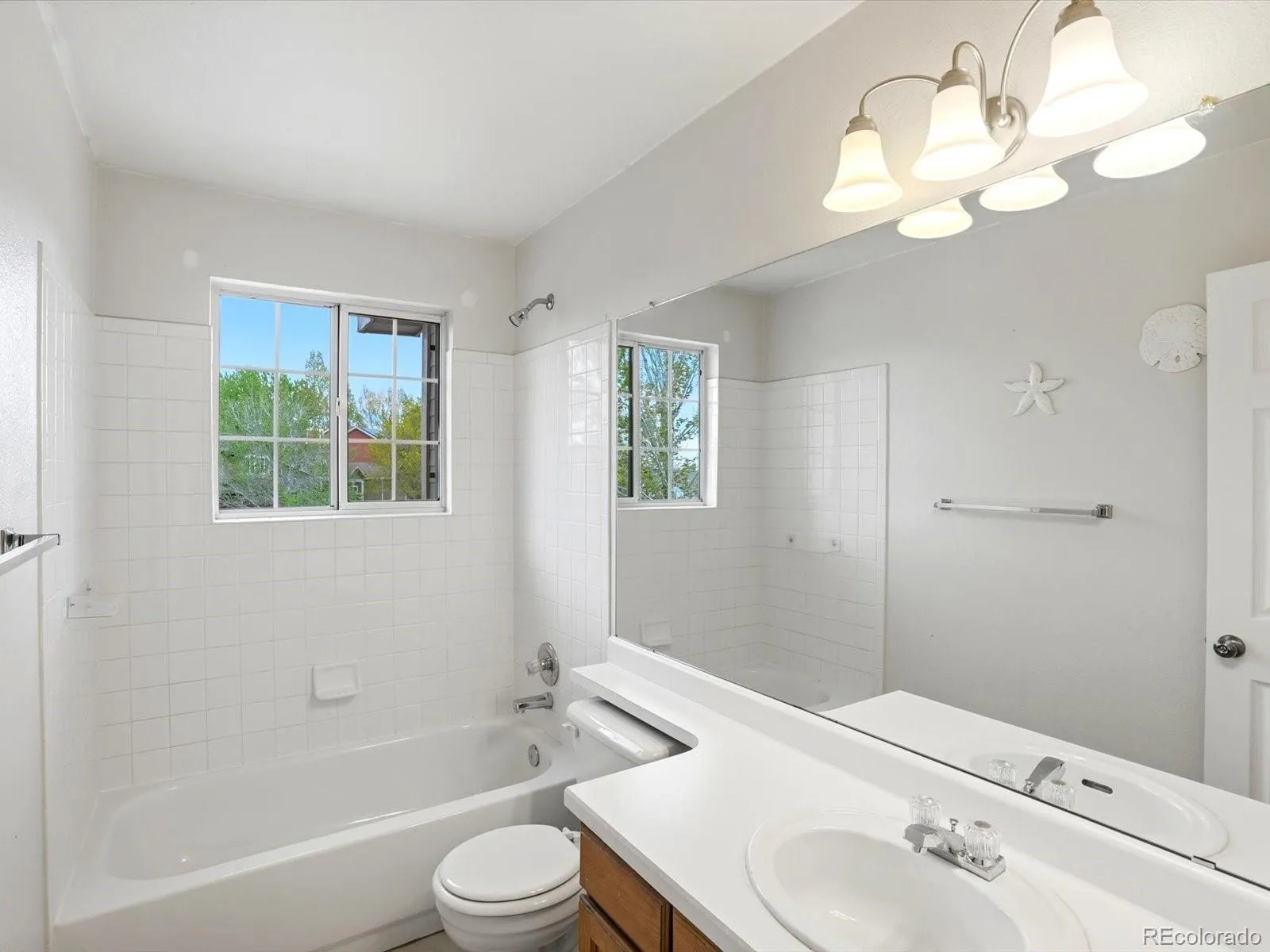 Inside, the main level offers an open layout with vaulted ceilings and consistent natural light from the southwest exposure. The eat-in kitchen is equipped with stainless steel appliances and flows comfortably into the living area, where a fireplace creates a natural gathering point. Upstairs, three bedrooms provide a practical layout, including a primary suite with two closets. The finished basement expands the living space with a full guest suite and a flexible bonus room, along with additional unfinished storage. Updates throughout the home include newer wood flooring, carpet, and a tastefully renovated primary suite. The backyard is fully fenced and designed for both everyday use and entertaining, featuring a large patio and a storage shed. A two-car attached garage adds to the home’s overall functionality. Set in a quiet neighborhood, this home offers convenient access to restaurants, retail, parks, C-470, the mountains, downtown Denver, —making it easy to get where you need to go while still enjoying a more peaceful setting. A well-located home that offers space, flexibility, and everyday convenience in an established neighborhood!