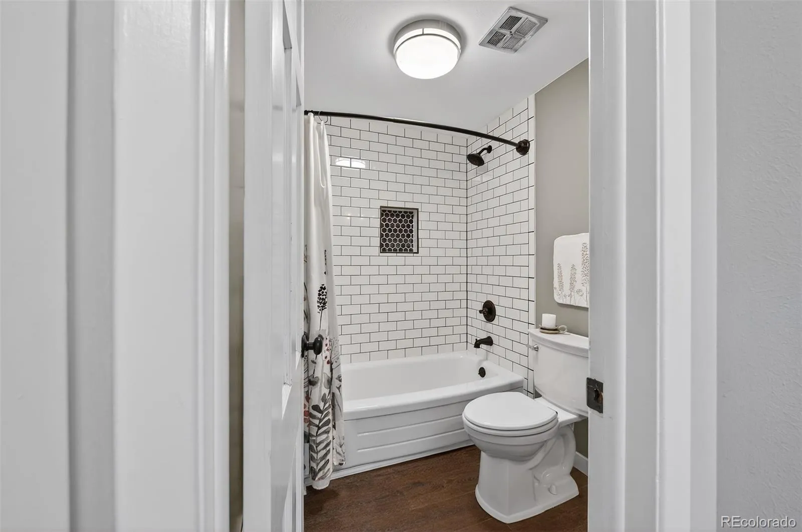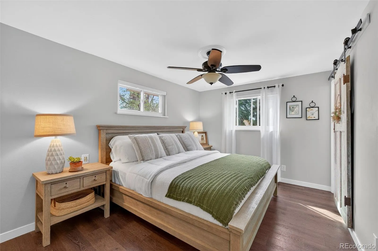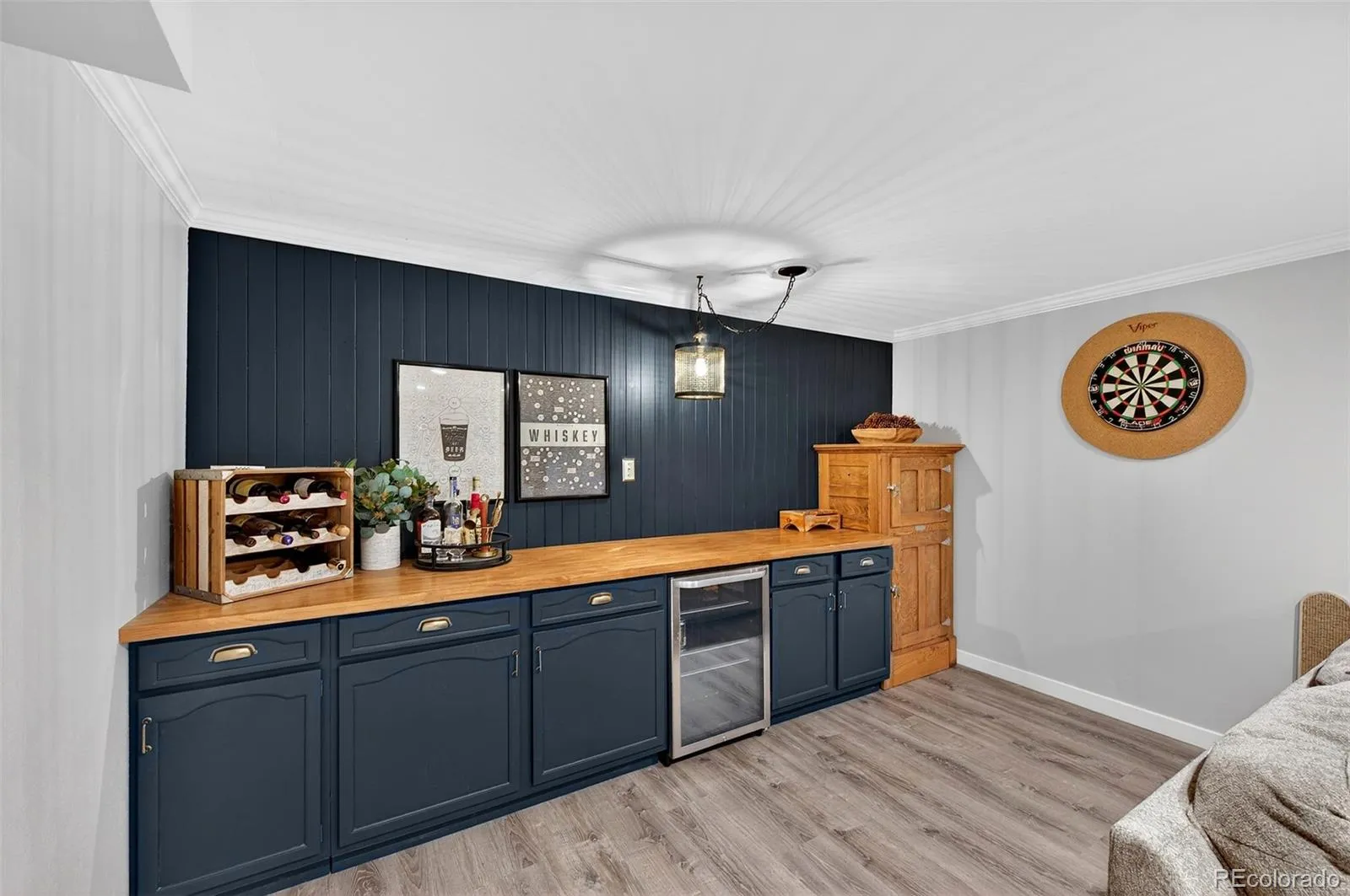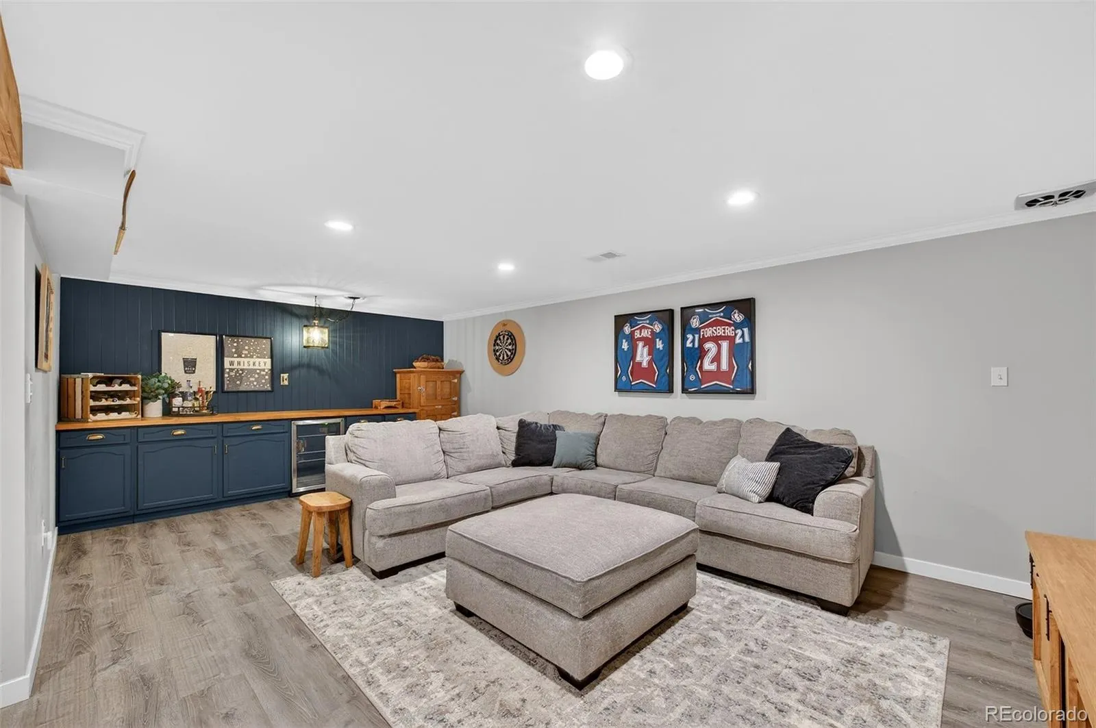 Welcome to your new home! This beautifully updated brick ranch in Huntington Heights is full of character and charm. Step into the inviting living room, where large windows flood the space with natural light. The kitchen features butcher block countertops, stainless steel appliances, additional cabinetry installed for extra storage, and a pantry with convenient pull-out shelves. The adjoining eating area overlooks the spacious, private backyard—perfect for everyday living and hosting guests. Just off the kitchen, enjoy a cozy family room featuring a wood-burning fireplace and timeless shiplap accents. The primary bedroom offers LVP flooring, sun-filled space, and views of the backyard, along with a walk-in closet and a private en-suite bathroom accessed through a stylish barn door. Two additional bedrooms provide flexible space for family, guests, or a home office. The main floor is completed by a beautifully updated full bathroom. Downstairs, the finished basement with all new windows is designed for entertaining, with wood beam details, crown molding, and a dry bar. The basement also includes two non-conforming bedrooms, a laundry room with storage area, along with newer LVP flooring throughout. A fully remodeled ¾ bathroom completes the lower level. The private backyard features a covered patio, creating the perfect setting to relax. Additional highlights include a heated two-car garage—perfect for a workshop, updated hardware, hinges, and doorknobs on both levels, a new storm door, a new nest thermostat, updated landscaping and a newly painted exterior. This location is ideal for shopping and dining, conveniently located near Olde Town Arvada and within walking distance to Majestic View Park and golf course. Schedule your showing today and come see all this home has to offer!