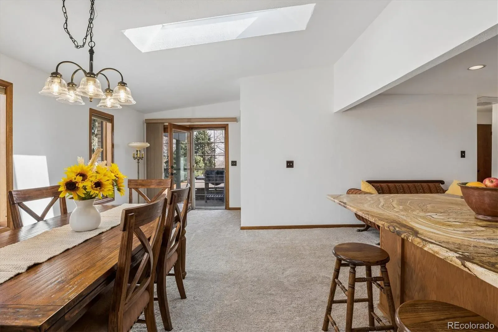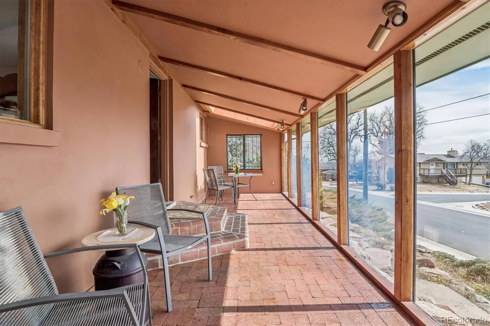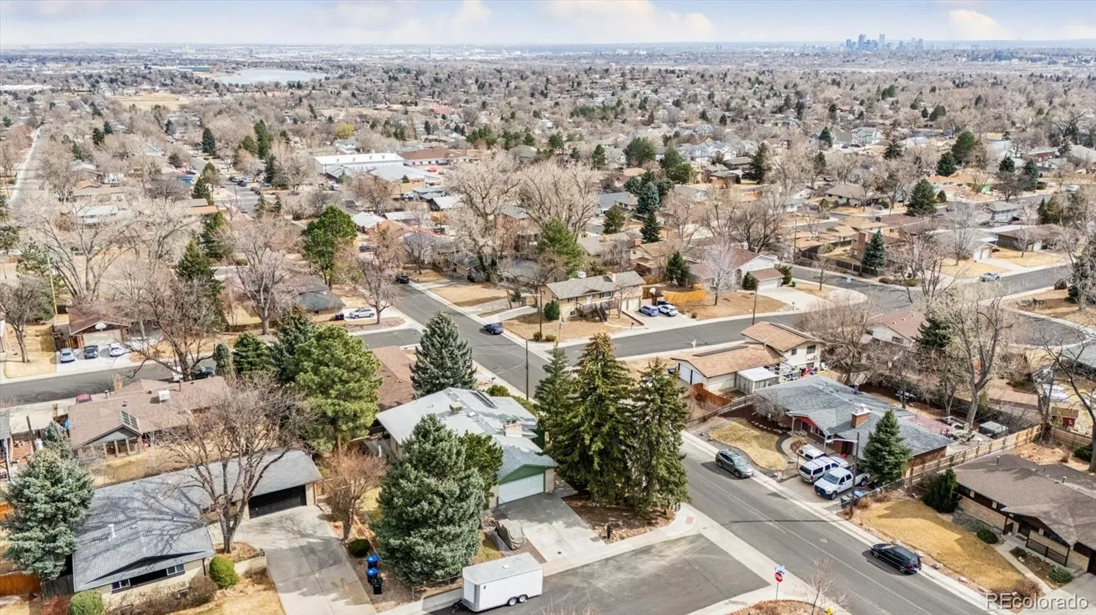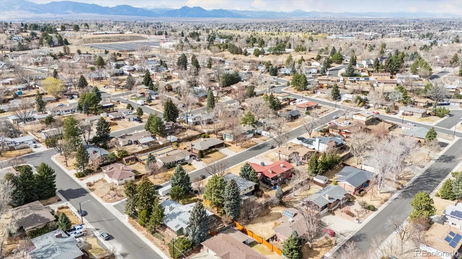 Set on a hilltop corner lot in Lamar Heights, this bright and beautifully updated ranch home offers sweeping city views and glowing sunrises from the enclosed front porch filled with natural light. With 4 bedrooms, 2 baths, and over 2,200 square feet, this home gives you space to live, relax, and gather. The open main level features a welcoming family room with a fireplace, dining area, breakfast nook, and a kitchen with granite counters, a center island, pantry, and brand-new stainless steel appliances installed in 2024 and a main floor primary bedroom. Fresh interior paint in 2024 and new carpet in 2026 create a clean and modern feel, while the updated 3/4 bath shines. The finished basement adds even more room with a large great room warmed by a wood-burning stove, two additional bedrooms or use as home office or craft room, a full bath, and large storage and laundry area with washer and dryer included. Big-ticket updates have already been completed, including a new roof in 2017, new exterior paint in 2024, new furnace and hot water heater in 2025, plus seller-owned solar panels with a new solar hot water heater in 2024 to help lower utility costs. Evaporative cooling keeps the home comfortable in the warmer months. Step outside to enjoy the covered patio, deck, and private fenced backyard with mature trees, perfect for play, pets, or quiet evenings. The oversized attached two-car garage with off street RV parking and new concrete flatwork add convenience and function. Located near Ralston Central Park, Olde Town Arvada, and popular restaurants and shops along Wadsworth, with easy access to I-70 for a quick commute to Denver or the mountains, this move-in ready home offers comfort, views, and value all in one!