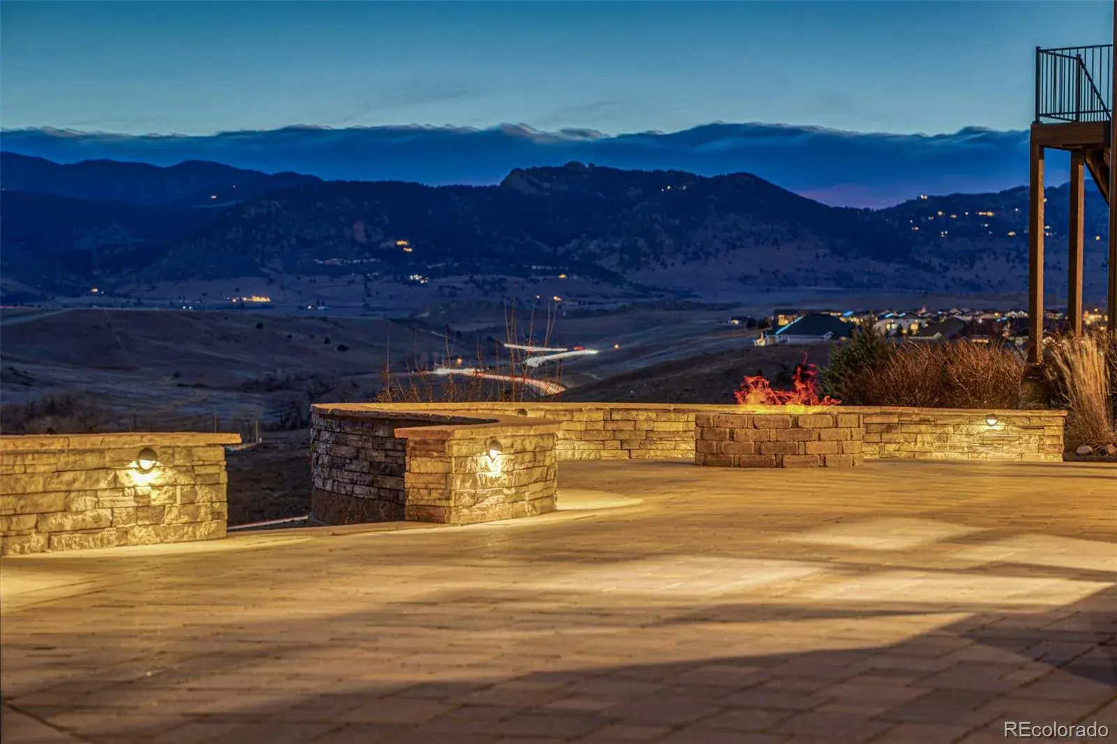 BACK ON MARKET!! Framed by a breathtaking western horizon, this stunning ranch rests on over a quarter acre, capturing unobstructed views of the Rocky Mountain foothills and the Denver skyline in a sweeping panorama. Sunsets settle across the peaks as city lights shimmer below, creating a stunning setting year-round. A fully owned solar system conveys significant long-term efficiency + enduring value. Wide plank hardwood floors introduce warmth + quiet sophistication throughout the main living spaces. The great room features picture windows that transform mountain views into living art. An open, thoughtfully defined layout allows each space to feel connected while maintaining purpose. The dining area enjoys views on 3 sides, with scenic windows + glass door balcony access creating a striking backdrop. The kitchen reflects modern elegance with espresso cabinets, granite counters, stainless appliances, a tailored backsplash, and pendant lighting over the island. Form and function align seamlessly. A practical mudroom area off the attached 3-car garage offers organized storage. The main level primary suite opens to the balcony and carries forward the remarkable views. A 5-piece bath and walk in closet with built-in organization complete the primary retreat. The secondary and tertiary bedrooms on the main level connect to a shared bath, while a convenient half bath and main floor laundry add ease. The partially finished walkout basement presents a second primary suite filled with natural light, an elegant private bath, and a spacious walk-in closet. The recreation area is partially finished and offers walkout access to the patio, ready for customization. Outdoor living unfolds across an expansive balcony and a beautifully designed 1,700+ sq ft paver patio with built in fire pit, connected by a curved wrought iron staircase. A manicured lawn and fenced yard overlook open green space, creating an entertainer’s setting defined by privacy, scale, and iconic Colorado views.