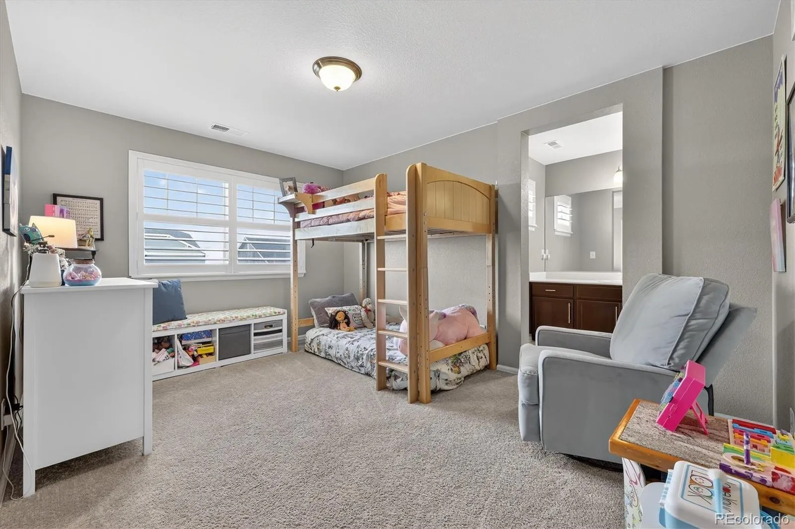 Upstairs offers a thoughtfully designed layout with a large loft, spacious secondary bedrooms, and a Jack-and-Jill bathroom with dual vanities, perfect for busy mornings.