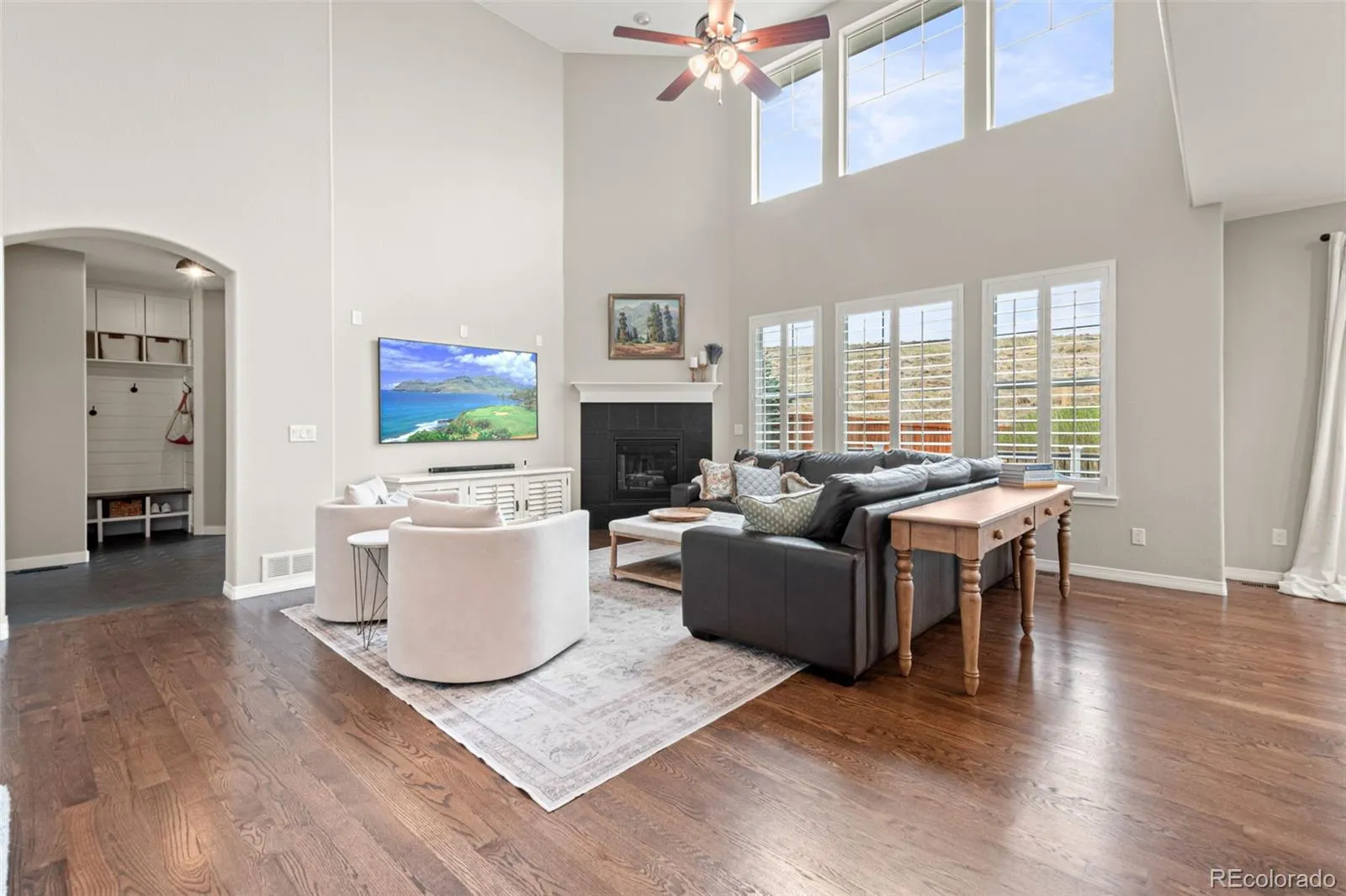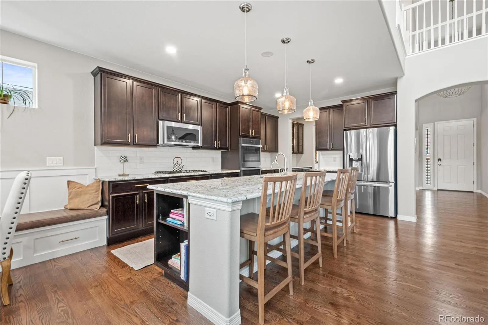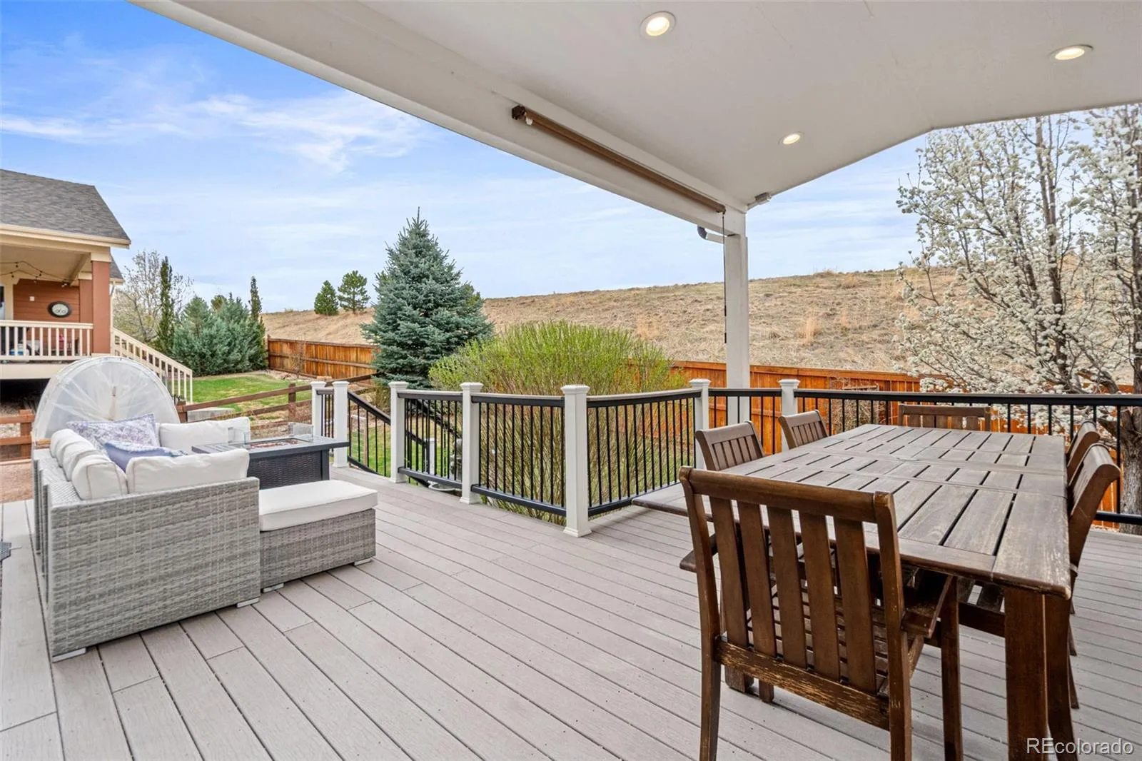 Impeccably maintained 2 story w/ finished basement in Leyden Rock offering over 4,300 finished square feet, 6 bedrooms, and 5 bathrooms, w/ a layout designed for both everyday living & effortless entertaining. Main level showcases recently refinished hardwood flooring, a formal dining room and a dramatic great room w/ vaulted ceilings, gas fireplace, & expansive windows that fill the space w/ natural light. From the front of the home, enjoy views of the Downtown Denver skyline. The gourmet kitchen is the true centerpiece, featuring granite countertops, GE Profile stainless steel appliances, double ovens, a large center island, butler’s pantry, & an eat-in dining area w/ built-in seating ideal for gathering & hosting. Main floor bedroom w/ adjacent full bath provides flexibility for guests, multi-generational living, or a private home office. Mudroom offers built-in storage & connects to a well-appointed 3-car garage complete with EV readiness, floor coating, exterior access, & additional storage. Upstairs, the spacious primary suite serves as a private retreat w/ a 5-piece bath & oversized walk-in closet. Additional bedrooms are thoughtfully positioned w/ Jack-and-Jill & ensuite bath configurations, along w/ convenient upper level laundry. The finished basement features a large rec space, wet bar, additional bedroom & bathroom, & flexible areas for media, fitness, or work-from home needs. Large gas-heated covered deck overlooks a private backyard that backs to open space. Yard features raised garden beds w/ irrigation perfect for functional & usable outdoor space. Located in the highly sought-after Leyden Rock community, known for its well-managed metro district & exceptional amenities including a pool, clubhouse, parks, trails, & year-round community events. Convenient access to Golden, Boulder, & the mountains. Recent updates include newer interior paint, upgraded LED lighting throughout, a newer hot water heater, & whole-home humidifier.