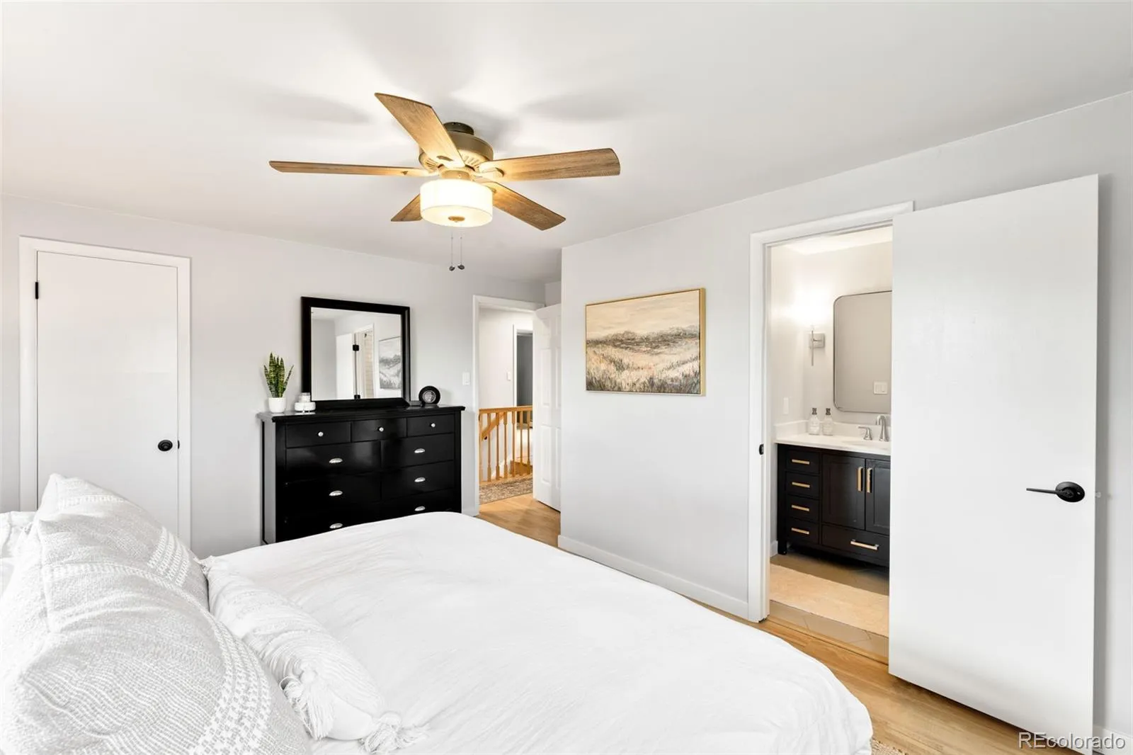 Welcome to this exceptional Arvada home, where thoughtful design meets modern updates on an expansive .40-acre lot. With a custom kitchen, main floor guest suite, and an unbeatable location, this home truly has it all. The main level is designed for both everyday living and effortless entertaining, featuring a formal living room, formal dining room, spacious family room, updated powder bathroom, and a light-filled breakfast nook. At the heart of the home, the fully reimagined kitchen showcases custom white oak cabinetry, quartz countertops, newer stainless appliances, and a stylish, functional coffee bar. Just off the kitchen, the oversized mudroom offers incredible flexibility, perfect for laundry space, pet station, hobby area, or simply a drop zone for daily life. Tucked privately off the mudroom, the main floor guest suite is a rare and valuable feature, complete with a walk-in closet and its own ensuite bathroom. An incredible feature for guests, multi-generational living, income producing rental, or a private home office. Upstairs, the primary suite provides a peaceful retreat with a walk-in closet and a beautifully remodeled ensuite bath. Three additional bedrooms and an updated hall bathroom complete the upper level. The finished basement adds even more versatility, offering additional living space plus a flex area currently used as a gym, with the option to convert into an additional bedroom. Plumbing rough-ins are already in place for a future bathroom, and the storage shelving is included. Step outside and enjoy the expansive backyard – an outdoor enthusiast’s dream with endless potential for entertaining, gardening, or simply relaxing. All of this in a prime Arvada location, feeding into highly sought-after schools, including Ralston Valley High School. You will love this home!