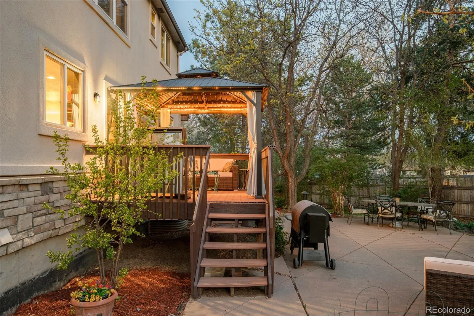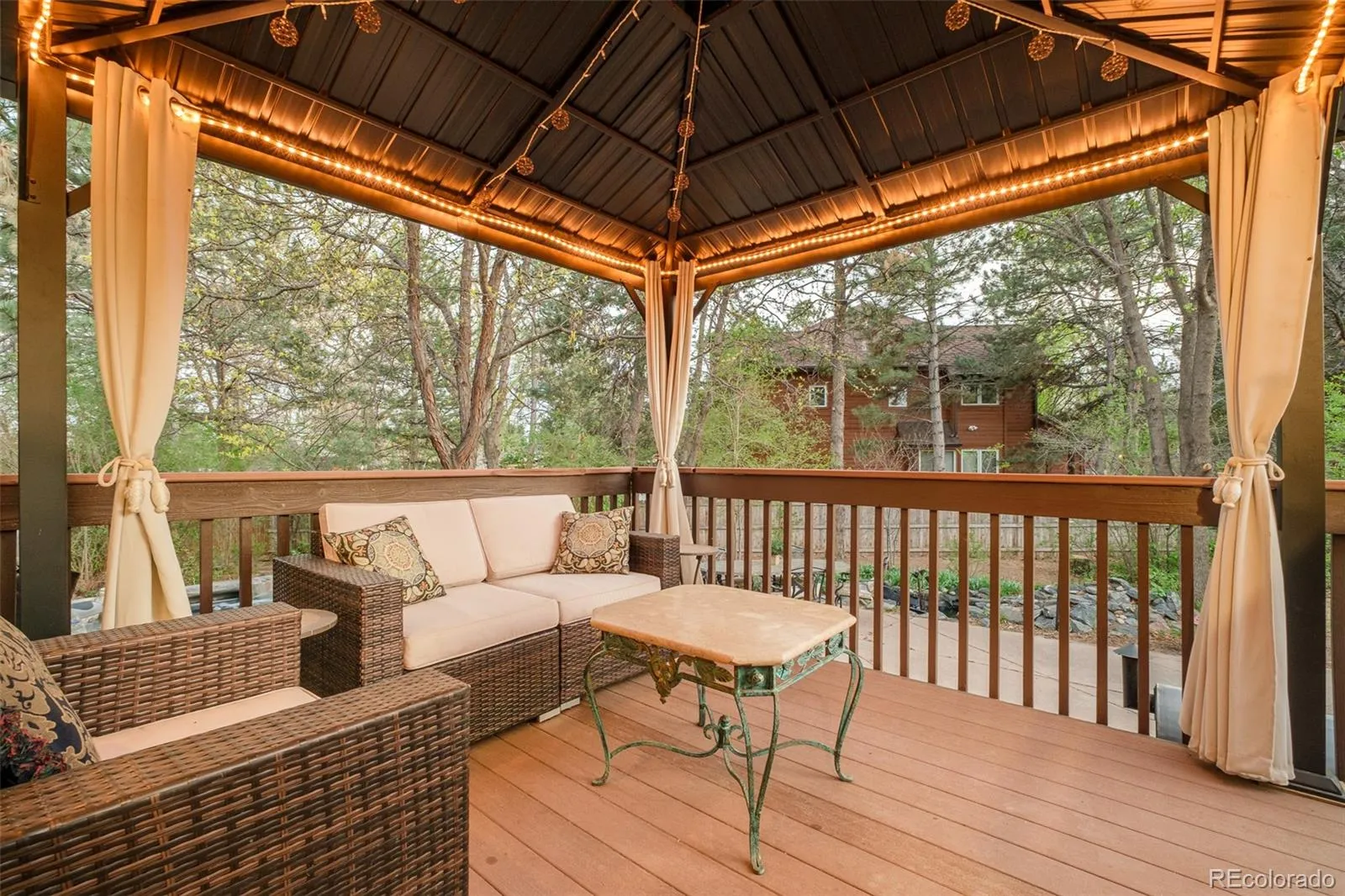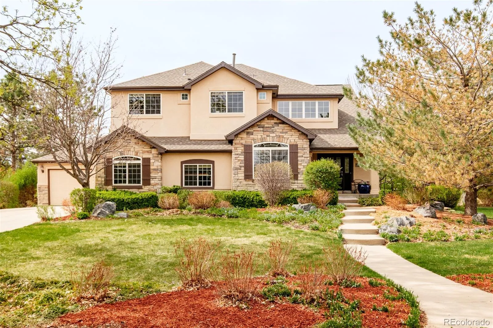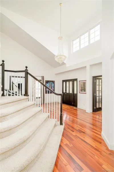 An expansive 0.78-acre lot sets the stage for this elegant Northwest Arvada residence nestled along a quiet and coveted cul-de-sac. Inside, a dramatic two-story entry with statement staircase introduces a light-filled interior, designed for both grand entertaining and peaceful everyday living. The main level features a private home office with built-ins, a formal dining room that overlooks the forest-like backyard, and a welcoming living area grounded by a cozy tiled fireplace. A spacious kitchen boasts a center island, double ovens, Bosch dishwasher, stainless steel appliances and generous cabinetry with pantry. The primary suite impresses with vaulted ceilings, a five-piece bath and a walk-in closet. Downstairs, a fully finished basement with a separate theatre, guest suite, and large rec room adds versatility and livability. Mature trees, vibrant vegetable and flower gardens and curated outdoor spaces create a secluded retreat, complete with a pergola-covered deck, hot tub, serene water feature and separate dining space. Solar panels, newer flooring, a new roof (2025) and a four-car garage with a dedicated/temperature controlled workshop, enhance functionality in this sought-after setting. Easy walk to grocery, restaurants, bakery, and Ralston valley trail and with just a short drive to Downtown Denver, this location offers proximity to necessity, as well as an escape from it all. Additional inclusions: Hot tub, outdoor covered cabana, outdoor sheds, raised garden beds, outdoor water feature/pond, window coverings/curtains as currently in place, chandeliers/light fixtures, kitchen appliances, washer/dryer, pool table & attached gray cabinets in garage. Additional furnishing is negotiable.