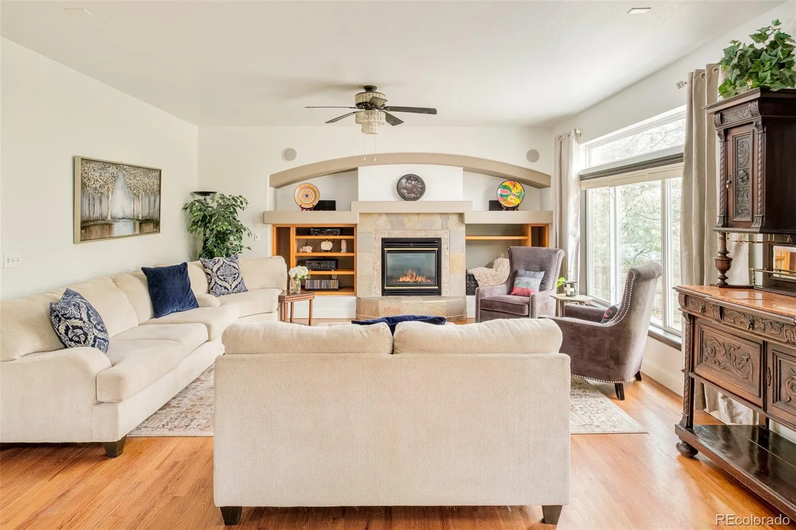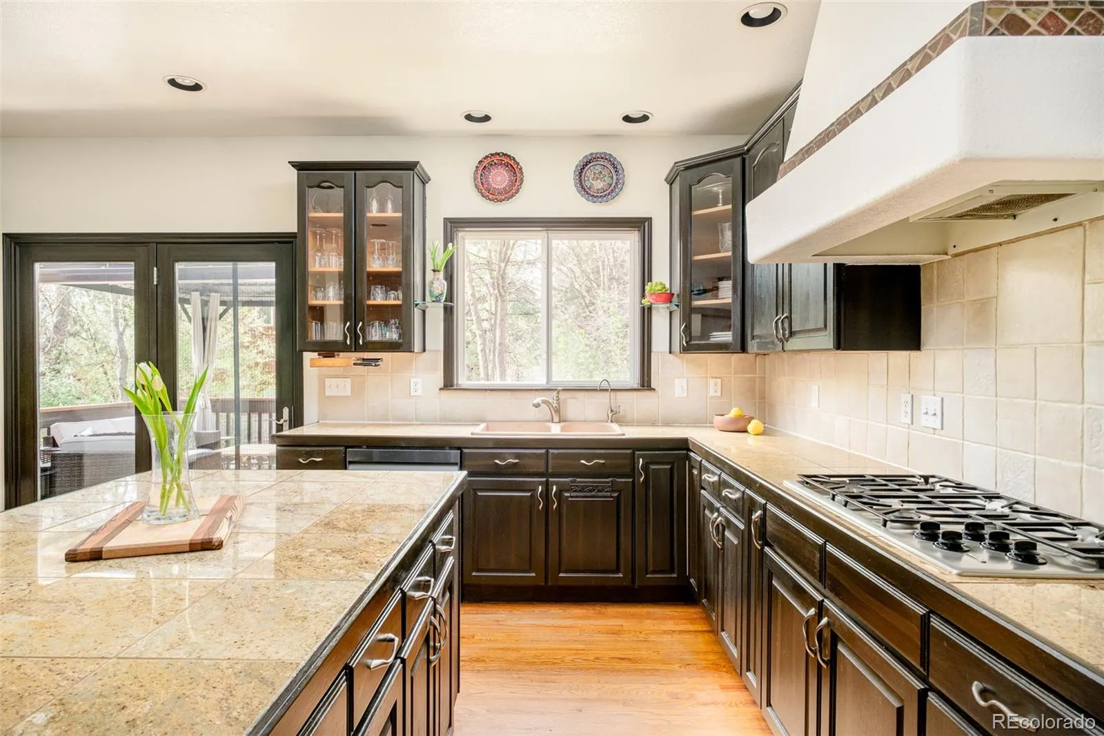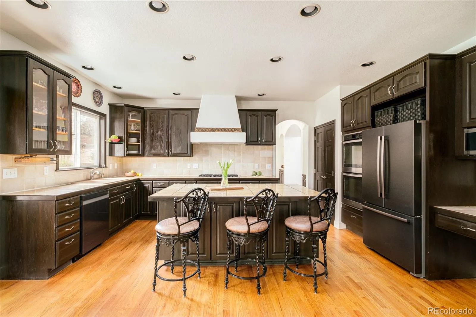 An expansive 0.78-acre lot sets the stage for this elegant Northwest Arvada residence nestled along a quiet and coveted cul-de-sac. Inside, a dramatic two-story entry with statement staircase introduces a light-filled interior, designed for both grand entertaining and peaceful everyday living. The main level features a private home office with built-ins, a formal dining room that overlooks the forest-like backyard, and a welcoming living area grounded by a cozy tiled fireplace. A spacious kitchen boasts a center island, double ovens, Bosch dishwasher, stainless steel appliances and generous cabinetry with pantry. The primary suite impresses with vaulted ceilings, a five-piece bath and a walk-in closet. Downstairs, a fully finished basement with a separate theatre, guest suite, and large rec room adds versatility and livability. Mature trees, vibrant vegetable and flower gardens and curated outdoor spaces create a secluded retreat, complete with a pergola-covered deck, hot tub, serene water feature and separate dining space. Solar panels, newer flooring, a new roof (2025) and a four-car garage with a dedicated/temperature controlled workshop, enhance functionality in this sought-after setting. Easy walk to grocery, restaurants, bakery, and Ralston valley trail and with just a short drive to Downtown Denver, this location offers proximity to necessity, as well as an escape from it all. Additional inclusions: Hot tub, outdoor covered cabana, outdoor sheds, raised garden beds, outdoor water feature/pond, window coverings/curtains as currently in place, chandeliers/light fixtures, kitchen appliances, washer/dryer, pool table & attached gray cabinets in garage. Additional furnishing is negotiable.