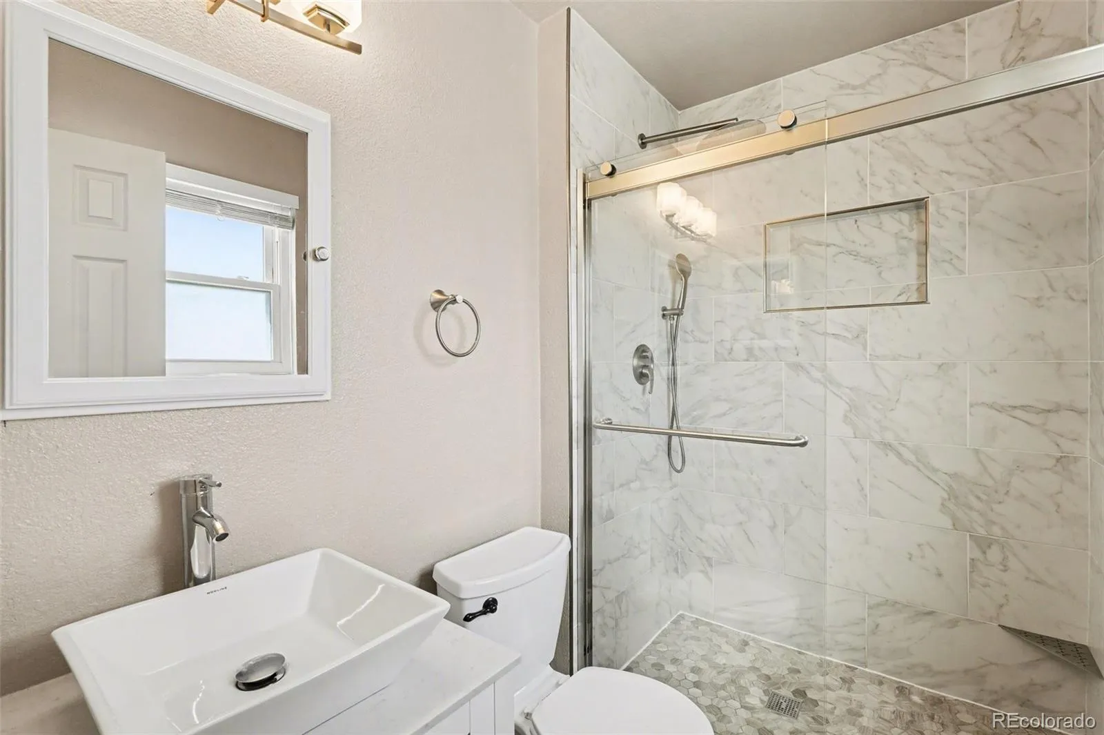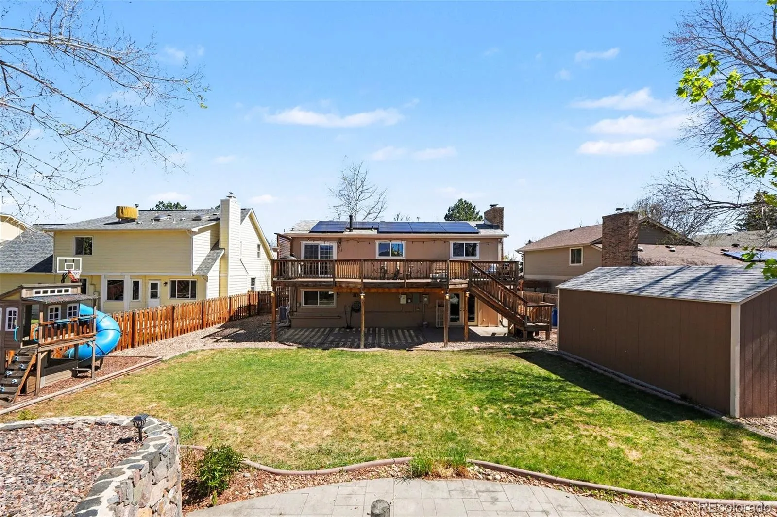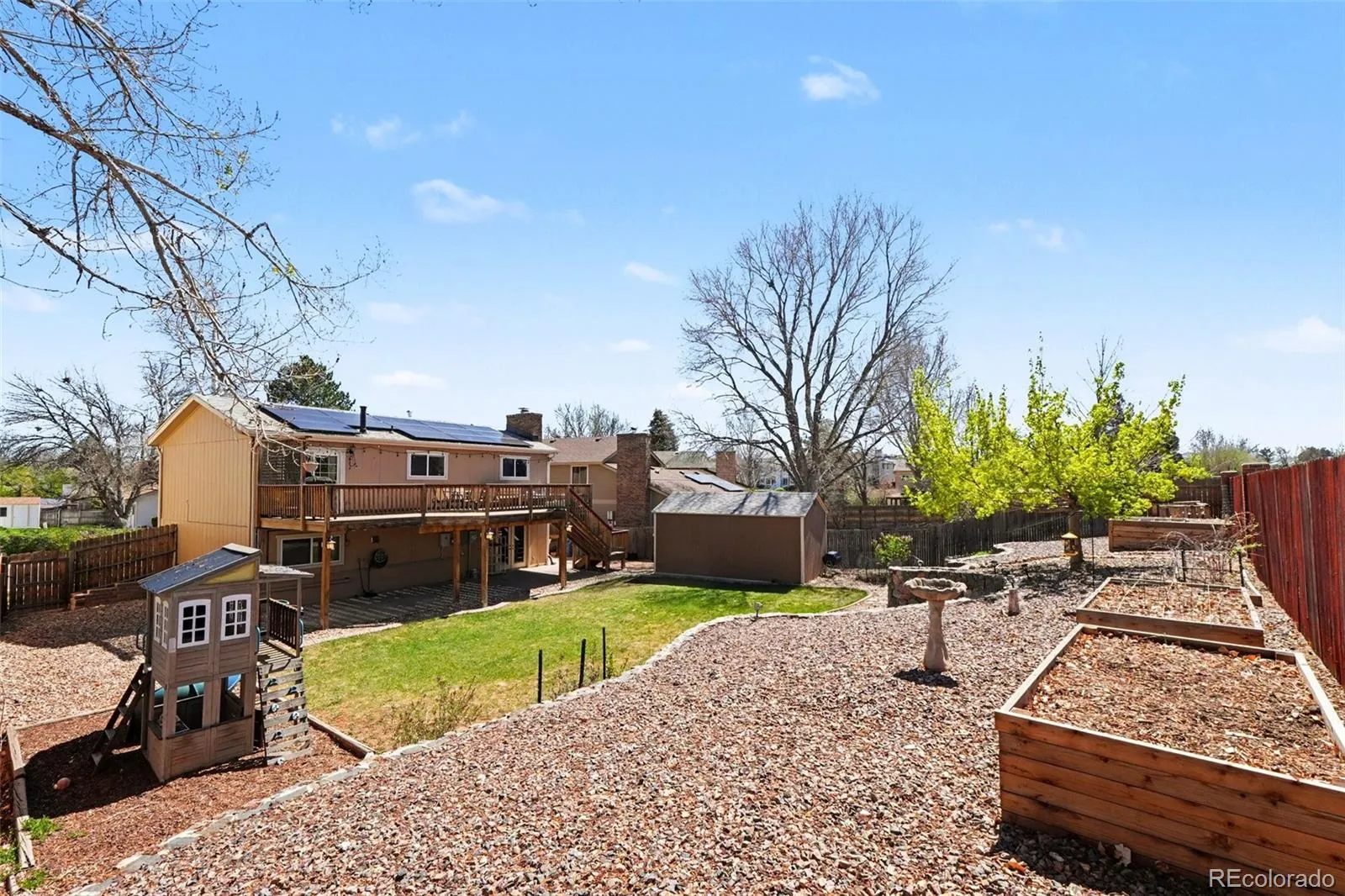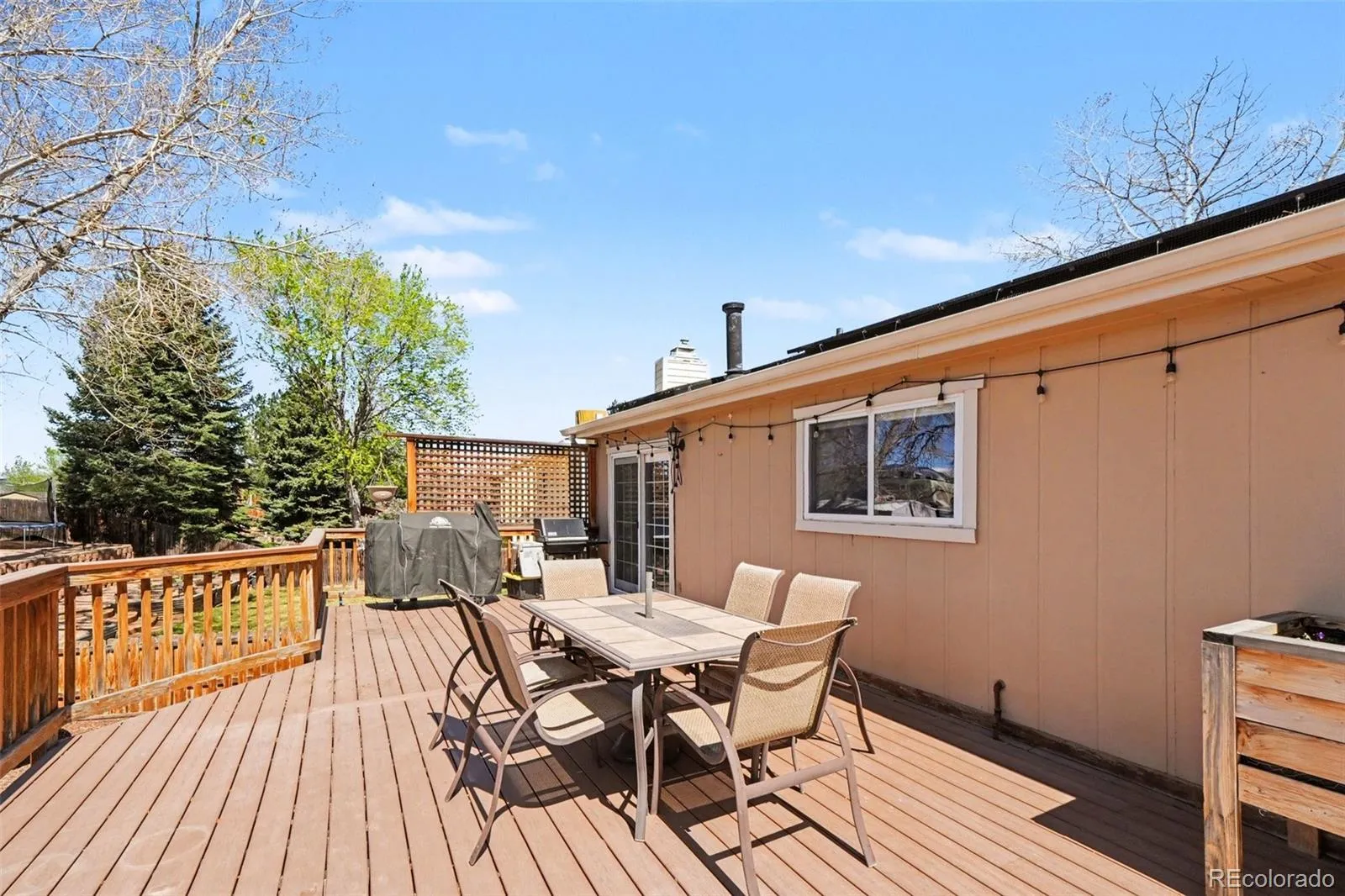 This beautifully updated 3-bedroom, 3-bath home offers exceptional indoor and outdoor living spaces designed for both comfort and entertaining. The upper level welcomes you with a bright, open-concept layout featuring a living room, dining area with ceiling fan, and kitchen equipped with newer stainless steel appliances and a range hood. A versatile hall closet currently functions as a pantry with removable shelving for optional coat storage. The dining area opens double doors to an expansive elevated deck—perfect for entertaining and enjoying stunning mountain views. The primary suite is conveniently located on the upper level & features a custom closet and a fully remodeled en-suite ¾ bath. A second bedroom and an upgraded full hall bathroom complete the upper level, with both bedrooms offering ceiling fans for added comfort. The lower level provides functional and flexible living space, including direct access to the garage & a laundry closet with new doors. A hallway leads to a dedicated office/flex space with a full-size window, as well as a guest bedroom with its own window and closet. On the opposite side, the inviting family room features a cozy fireplace and ample seating space, along with an updated half bath. New French doors open to a large covered patio and a spacious, landscaped backyard. Outdoor features continue to impress with an oversized 20x12x11 shed, a custom rock wall, & a built-in fire pit. The upper yard offers additional space for gardening. Beyond the back fence, enjoy direct access to the scenic Ralston Creek Trail, providing connectivity to Golden and east Arvada. Additional highlights include: High-efficiency HVAC system, electric panel, tankless water heater, and thermostat (2022), Solar panels (2022)average energy bill approx. $35/month, New Roof (2023), New attic/roof insulation (2021), Radon Mitigation, Gated RV parking next to garage. This home combines thoughtful upgrades, versatile living spaces, and an unbeatable outdoor setting!