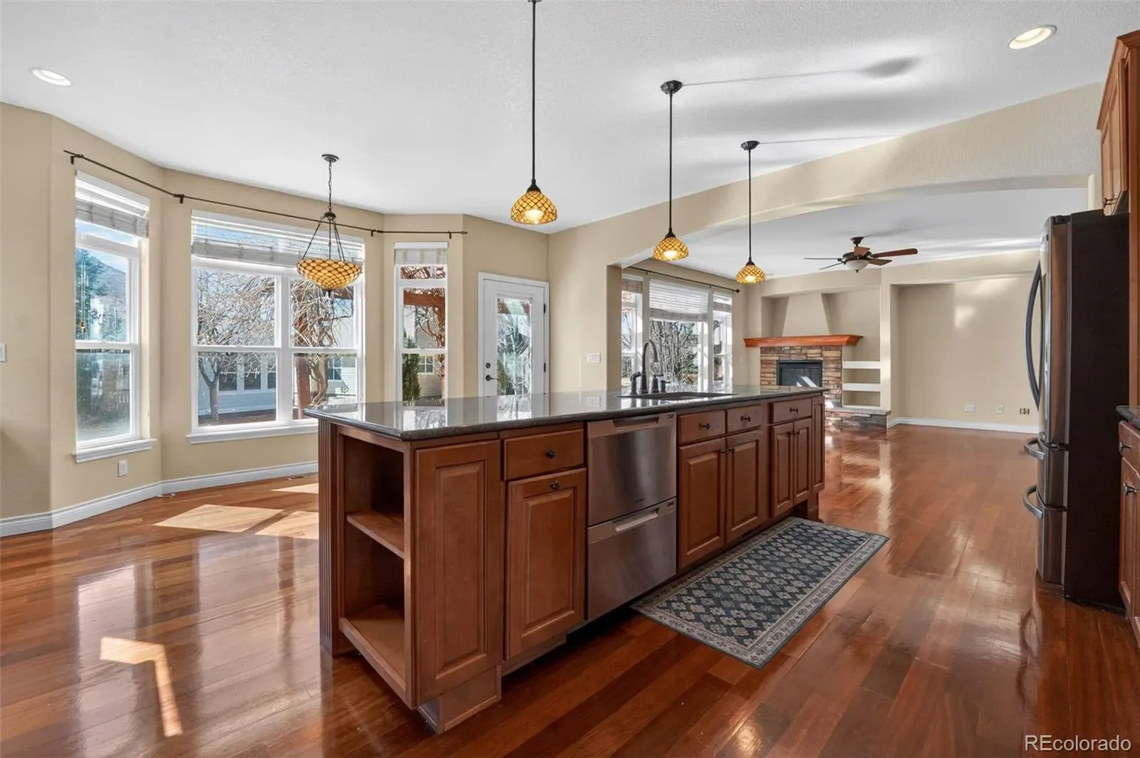 Welcome to this stunning, sun-drenched residence nestled in the highly coveted West Arvada corridor. Perfectly positioned near the foothills, this home offers a sophisticated blend of modern comfort and Colorado charm. The open-concept main level invites you in with soaring ceilings and gleaming floors, flowing seamlessly into a gourmet kitchen featuring granite countertops, stainless steel appliances, and a spacious island perfect for morning coffee or evening entertaining.