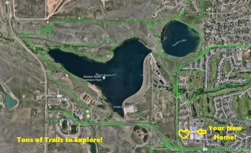 Start packing-this is THE ONE YOU’VE BEEN WAITING FOR and it won’t last!! INSTANT EQUITY OPPORTUNITY–PRICED TO SELL FAST! Rare semi-custom, maintenance-free home in highly sought-after Trail Village! This stunning 2-story delivers the perfect blend of luxury, comfort, and convenience, all framed by breathtaking views of Sleeping Indian and North Table Mountain. Step inside to soaring vaulted ceilings, arched architectural details, and abundant natural light flooding the open-concept great room. Rich hardwood floors anchor the main level, complemented by a cozy gas fireplace, built-in surround sound, and seamless access to a private patio—ideal for relaxing or entertaining while enjoying serene privacy without the maintenance. BIG-TICKET UPGRADES DONE FOR YOU FOR YOUR PEACE OF MIND~ Newer A/C, furnace, carpet, interior paint, refrigerator, downdraft cooktop, dishwasher(All 2023) & microwave/oven combo (2021). The main-floor primary suite offers a true retreat with vaulted ceilings, custom window coverings, and a spa-inspired ensuite featuring a soaking tub, oversized shower with new glass enclosure, dual vanities, and a spacious walk-in closet. The chef’s kitchen shines with slab granite countertops, rich maple cabinetry with updated hardware, gas cooktop, island seating, and premium stainless appliances—flowing effortlessly into the vaulted great room and perfect for everyday living. Upstairs features two generously sized bedrooms with walk-in closets, a dual-sink full bath, and a versatile loft. The fully finished basement with 12’ ceilings expands your living space with a large 4th bedroom, full bath, family room, and a fully wired media/theater room ready for movie nights. A deep tandem garage provides ample space for vehicles, storage, and all your Colorado gear. Enjoy a low-maintenance lifestyle just steps from trails, lakes, disc golf course, dog park, and tons of open space—perfect for active Colorado living. RARE FIND! UPDATED~MAINTENANCE-FREE~BELOW MARKET