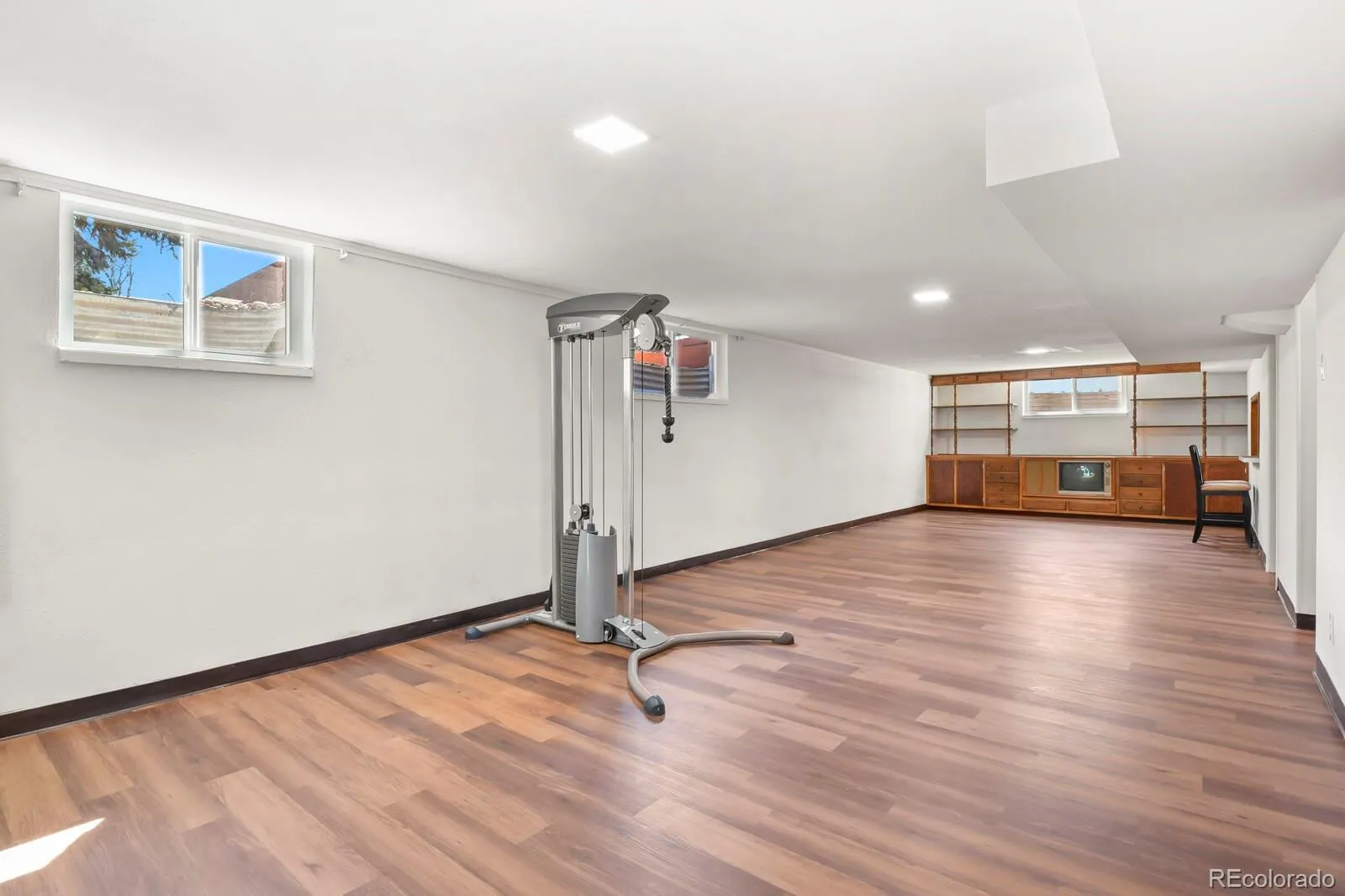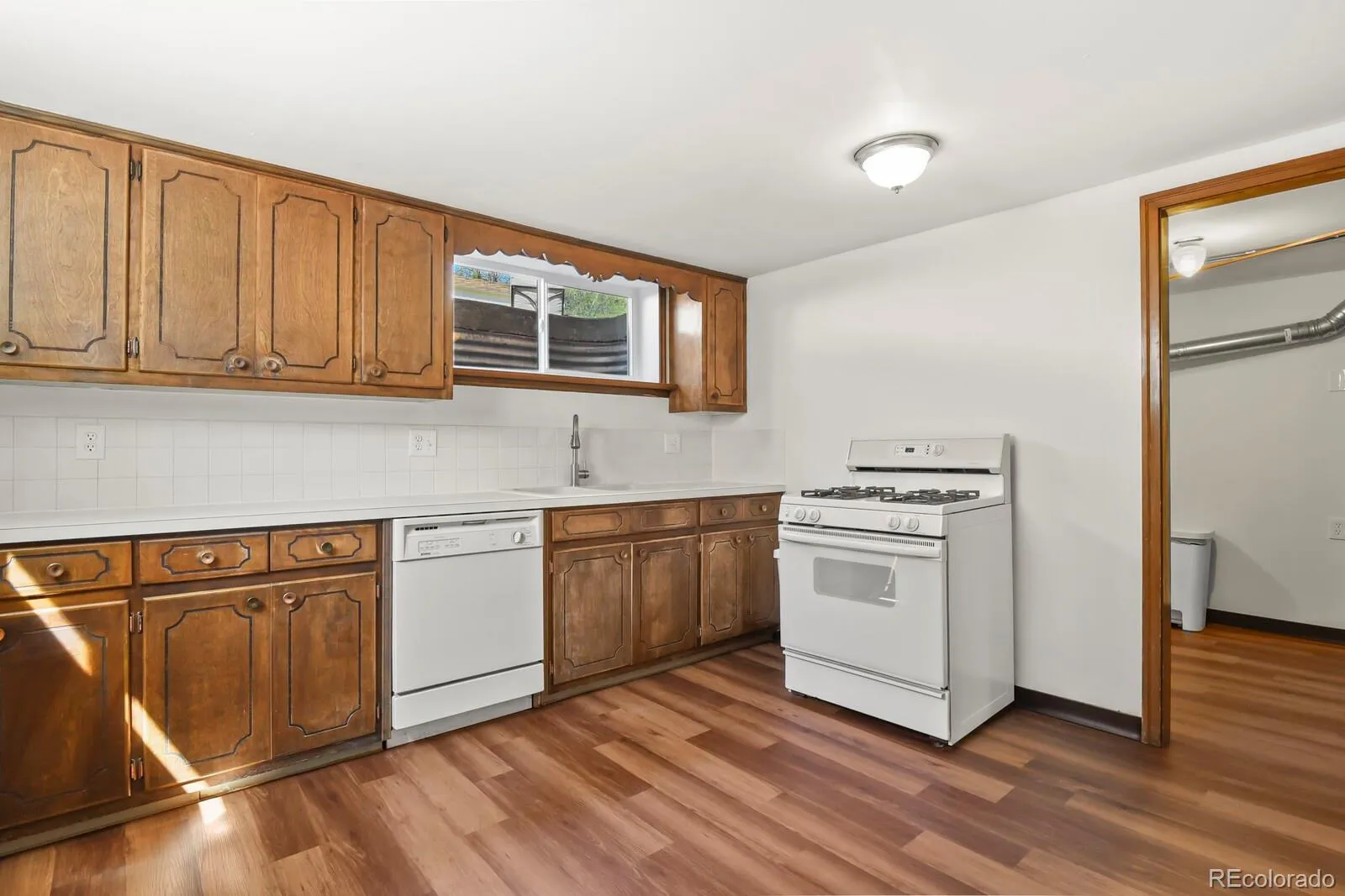 This unique home on the lower level has a full kitchen with gas stove, dishwasher, and refrigerator. The spacious rec-room has a retro entertainment center: TV, stereo, turntable console built-in. New floors have been installed on the lower level. The water heater was replaced in 2023. The 2 stage furnace and AC was installed in 2024. The front and backyard are xeriscaped with 1 garden bed in each yard. The front yard has a beautiful four season crab apple tree “royal raindrop“ 2 developed strawberry patches and 2 matured peony plants. The backyard is with stamped colored concrete for entertaining guests. Quick access to the highway with convenient routes to the mountains, farmers markets parks downtown Denver with Union Station for adventures.