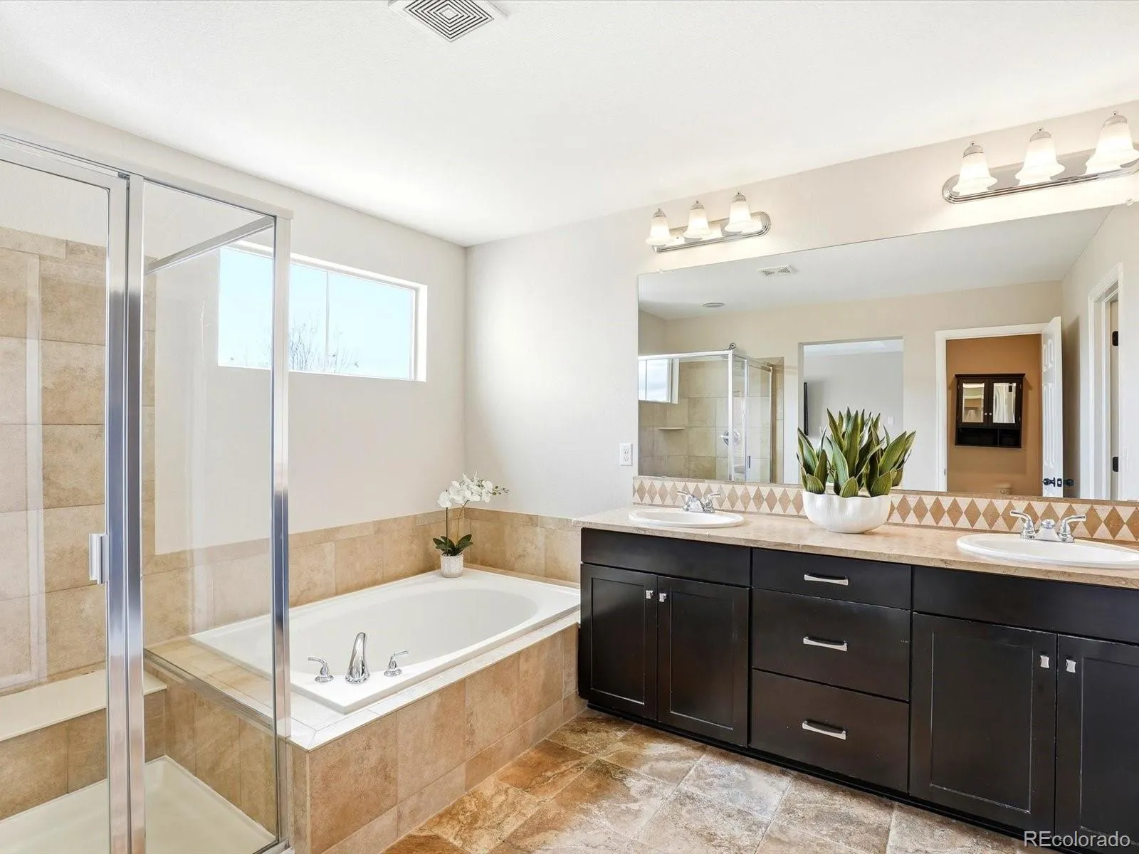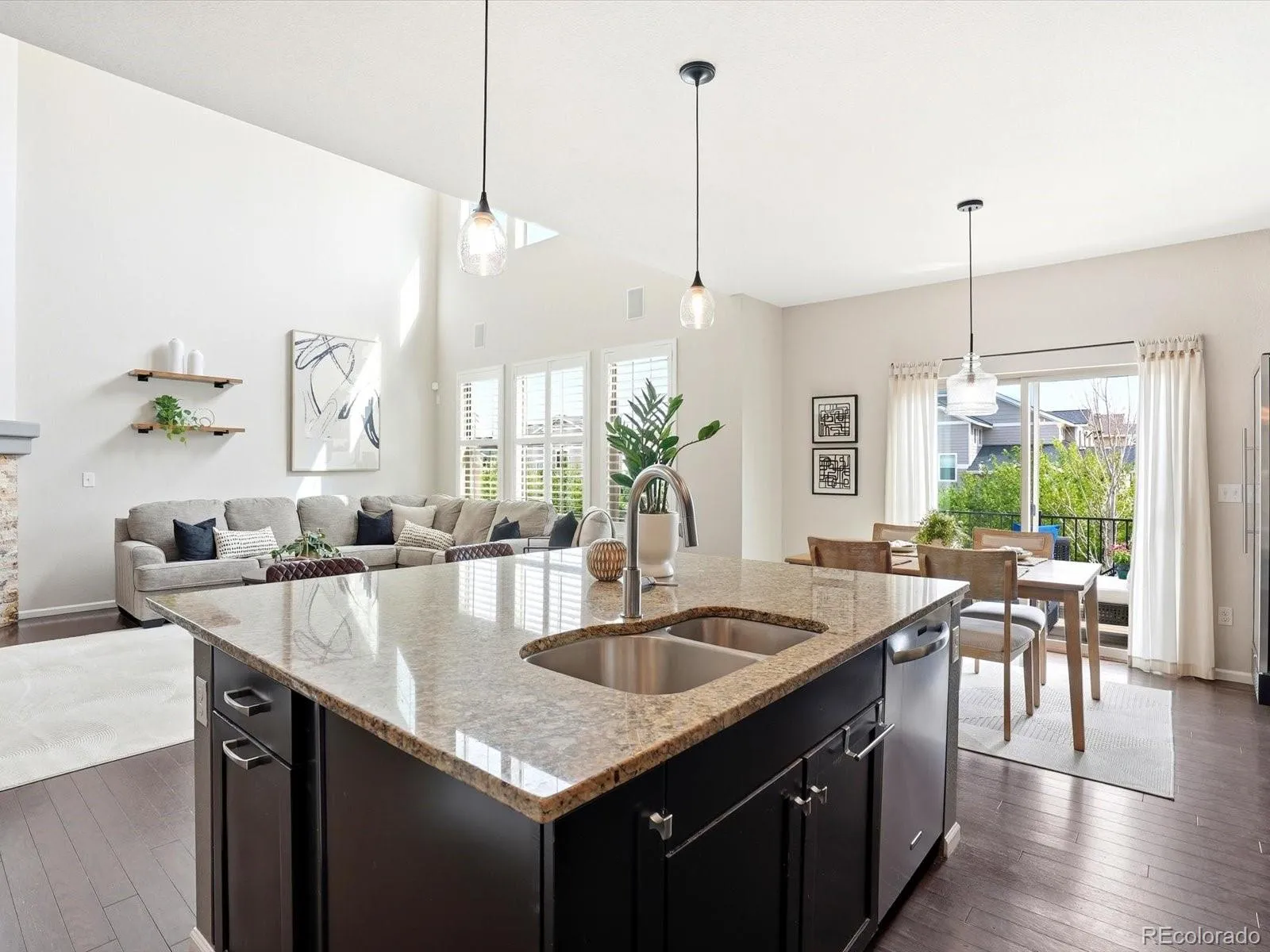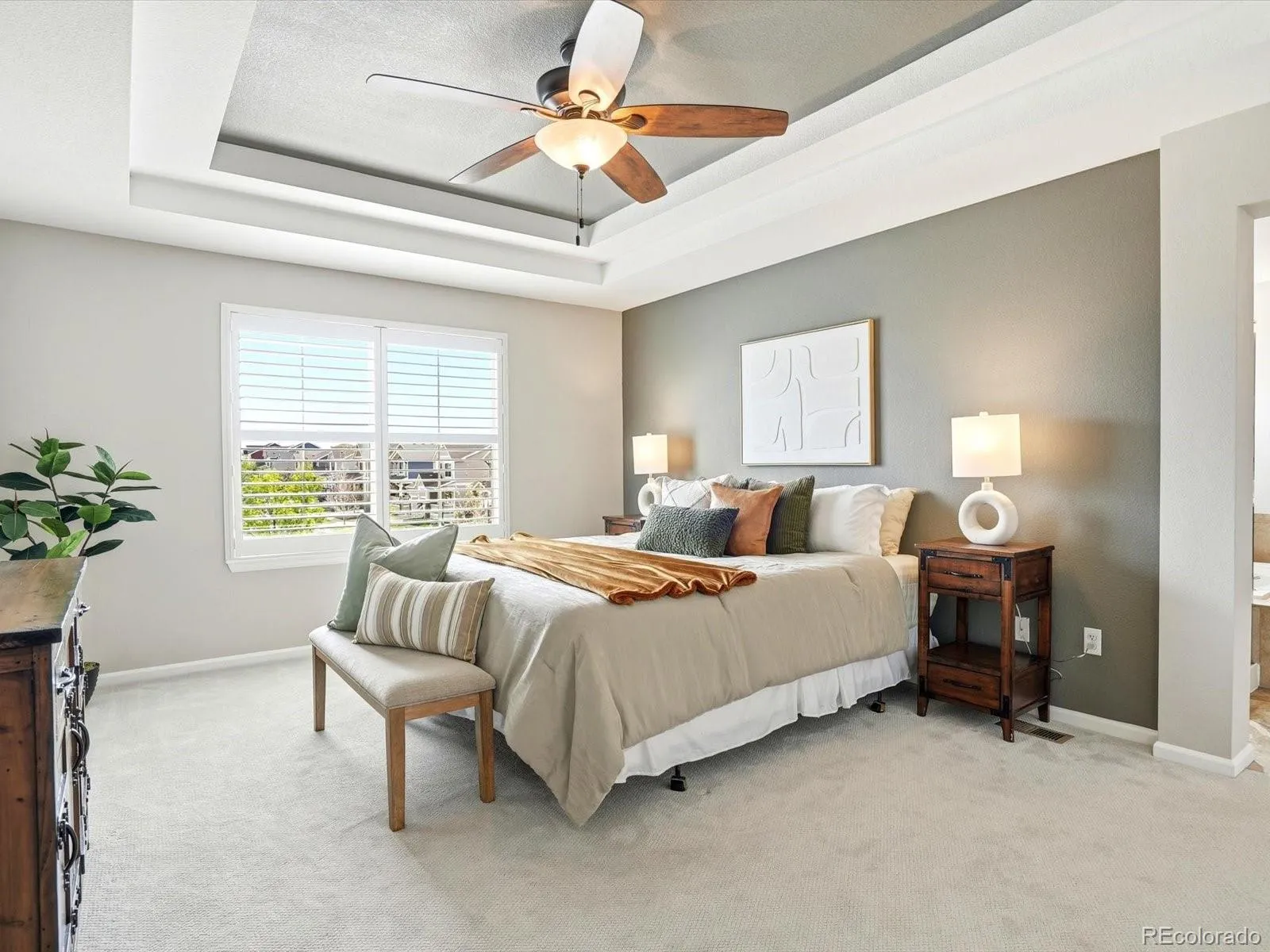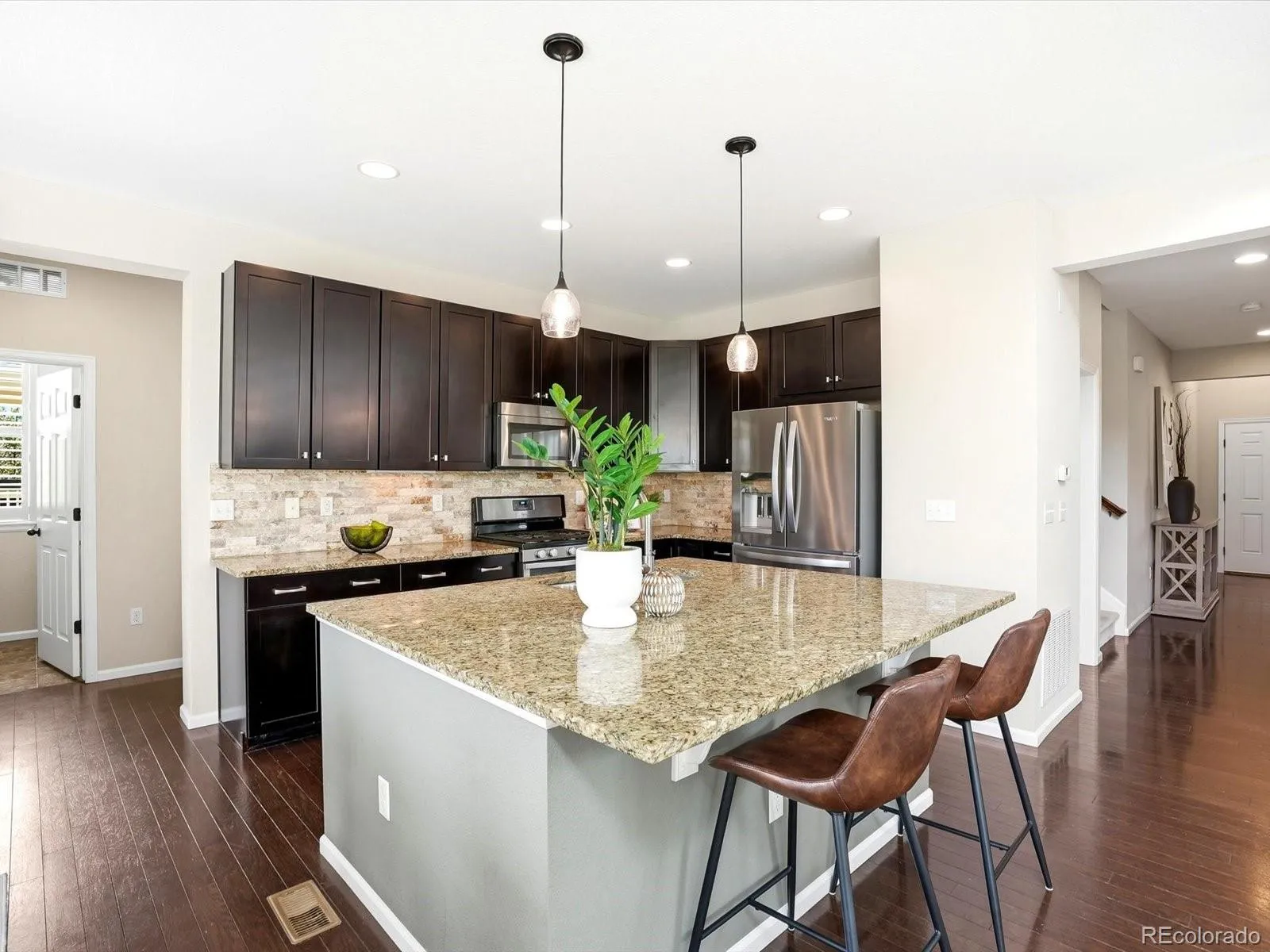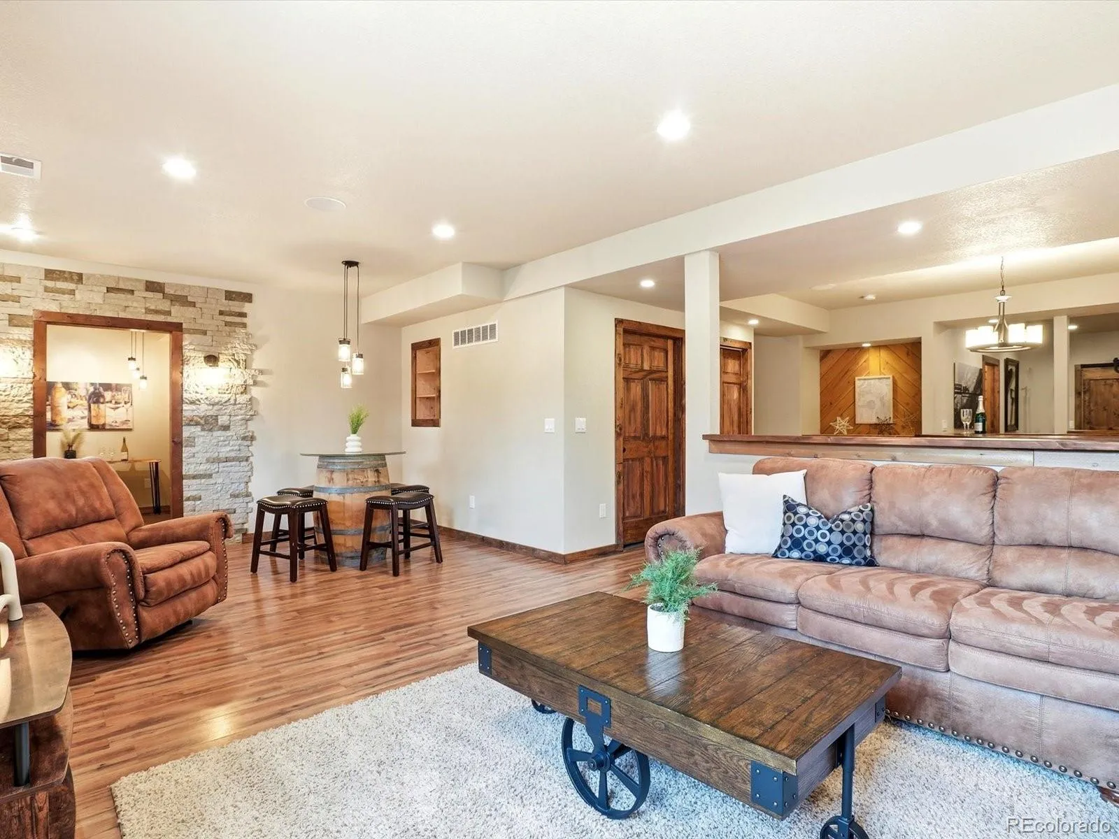 Welcome to a true showstopper in the highly sought-after Village of Five Parks—one of Arvada’s most beloved neighborhoods known for its park-like setting, walkability to local coffee shops and restaurants, and easy access to Denver, Boulder, and Standley Lake. This exceptional home has been meticulously updated with new interior and exterior paint, as well as brand new carpet, offering a fresh and move-in-ready feel throughout. The main floor showcases an open-concept design anchored by a stunning kitchen with a massive island, seamlessly flowing into a large living space with vaulted ceilings and abundant natural light. You’ll also love the formal dining area, a versatile main floor bedroom or office, and a 3/4 bathroom. Upstairs features a spacious loft, a luxurious primary suite, and two additional bedrooms—one with its own ensuite and another with a dedicated full bathroom just steps away. The fully finished basement is an entertainer’s dream, complete with a wet bar, wine cellar, full bathroom with a steam shower, exercise area, expansive living space, and ample storage. Step outside to your private backyard oasis featuring a beautiful deck, pergola, fire pit, hot tub, and tranquil water feature—perfect for relaxing or hosting unforgettable gatherings. Additional highlights include a three-car garage with epoxy flooring and thoughtful upgrades throughout. With unmatched style, space, and location, this one-of-a-kind home truly has it all.