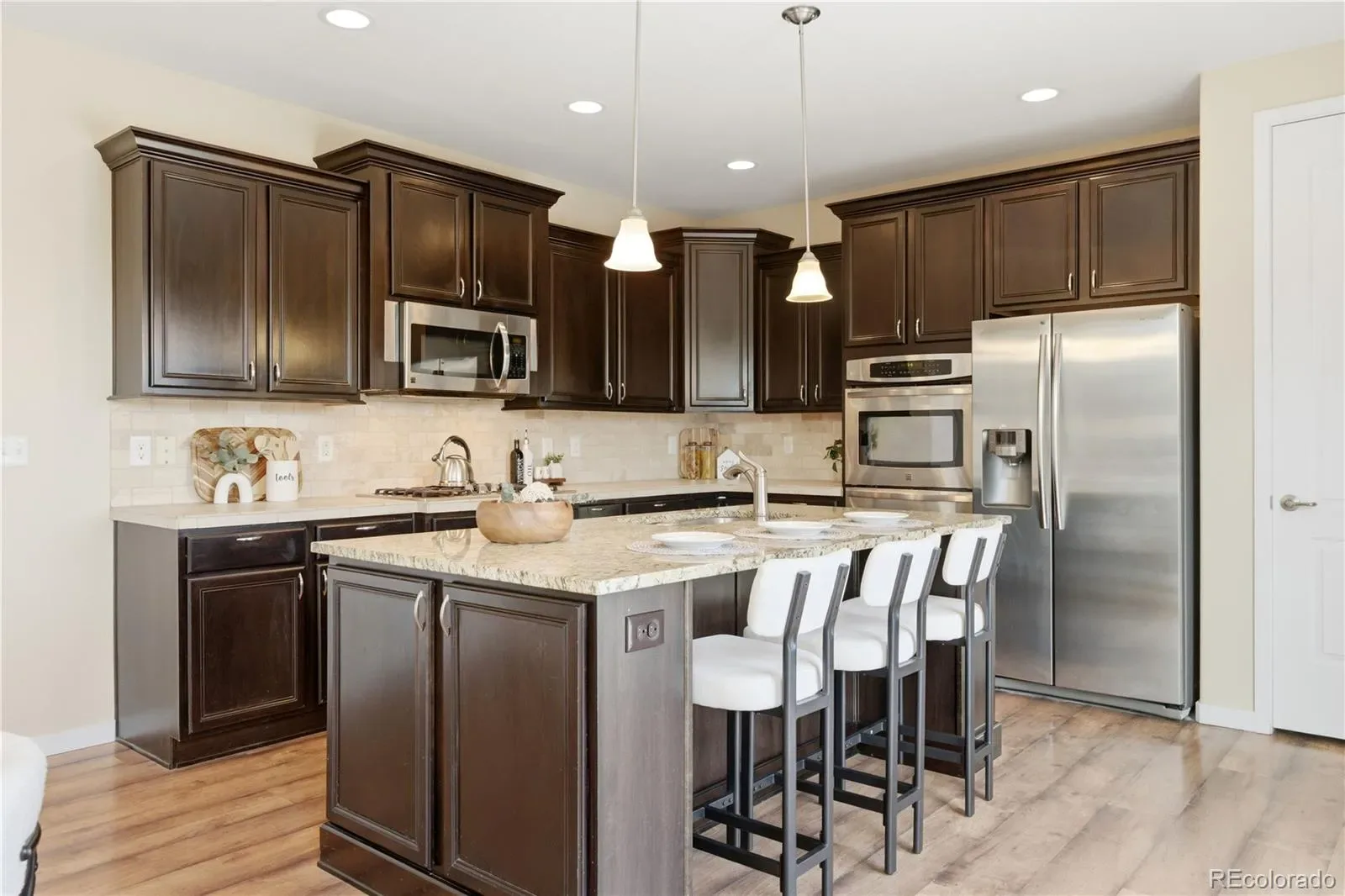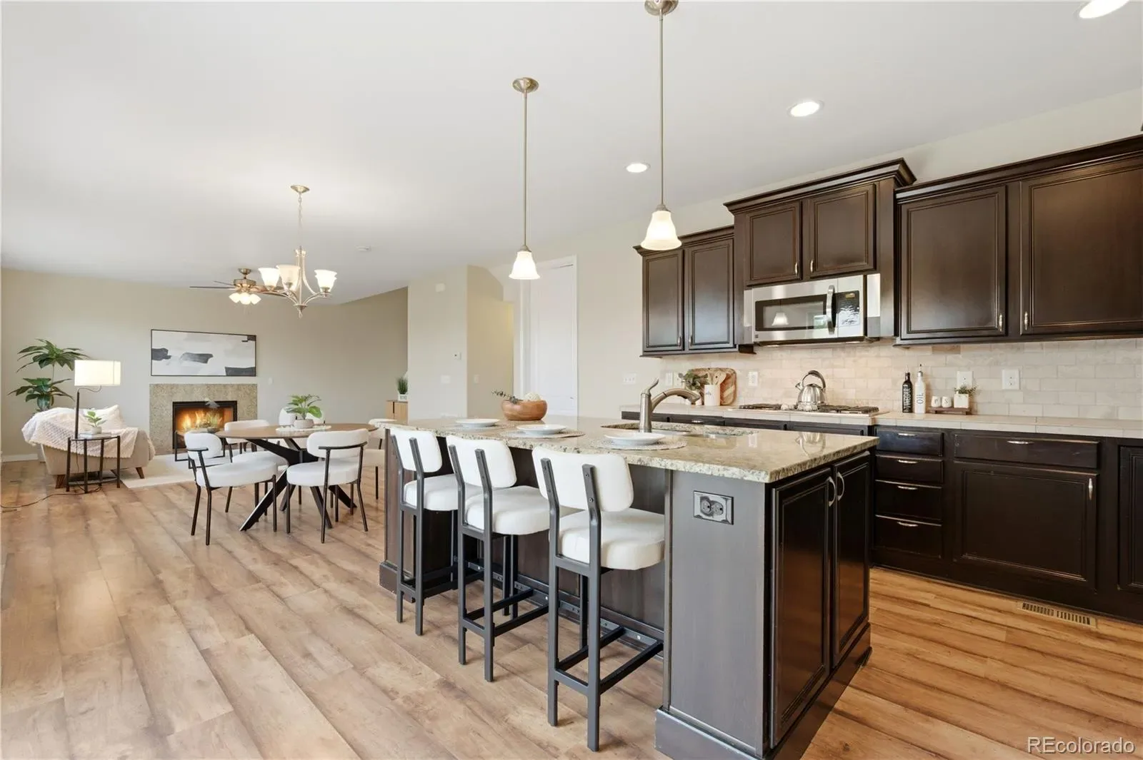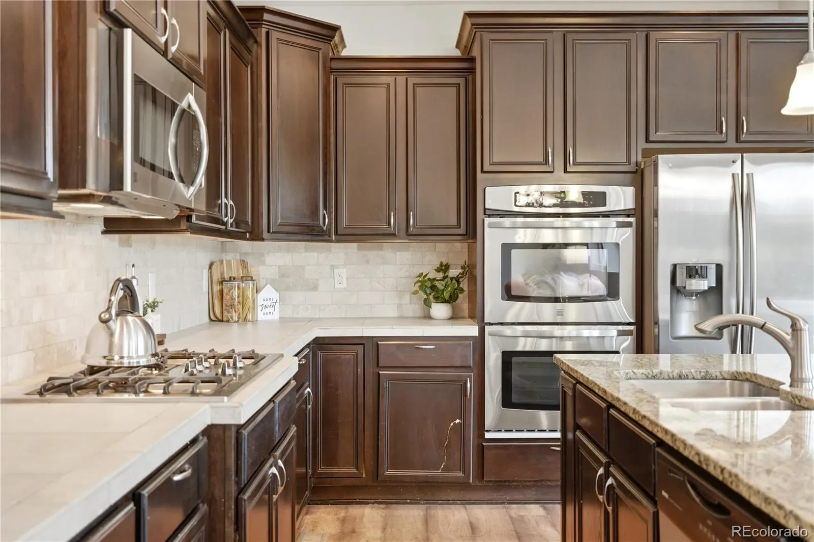 Great Price! Exceptional Location! Walk/Bike/Run to Olde Town Arvada from this amazing 2 story home in the desirable Woodfork/Lamar Heights neighborhood. Enter on the main level to a bright, open-concept layout where the living room, dining area, and spacious eat-in kitchen connect seamlessly, ideal for both everyday living and entertaining. The great room features vaulted ceilings and a cozy gas fireplace, while the kitchen offers granite and tile counters, gas cooktop, tile backsplash, huge center island with, and generous pantry storage. A dedicated main-level office/study provides the perfect work-from-home setup. Upstairs, the primary suite is a true retreat with a walk-in closet and private five-piece bath featuring dual sinks, an oversized shower, and a deep soaking tub. Two additional bedrooms with a Jack-and-Jill bath and a spacious loft complete the upper level, offering flexible space for guests, hobbies, or play. The finished walk-out basement adds exceptional flexibility as a studio ADU or multi-generational living space, featuring a separate exterior entrance, newer carpet, paint and tile flooring, ¾ bath, separate laundry hookups, kitchenette, and additional enhancements that support potential rental or guest use. New interior and exterior paint give this home move-in-ready appeal. Backing to the Ralston Creek Trail system, this home is a dream for runners, bikers, and outdoor enthusiasts. Enjoy direct trail access, an easy walk to the G Line station for quick commutes to downtown Denver and DIA, and convenient access to I-70 for mountain adventures. A rare opportunity to live in a small enclave of newer homes just minutes from Olde Town Arvada’s shops, dining, breweries, and community events—this is Colorado living at its best.