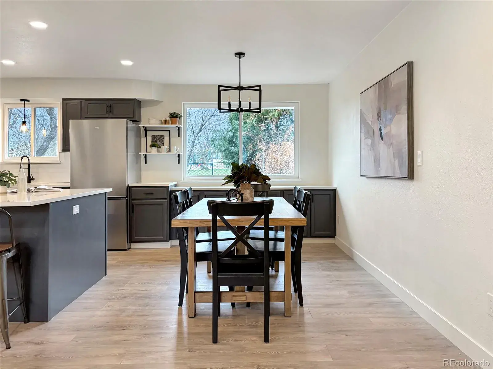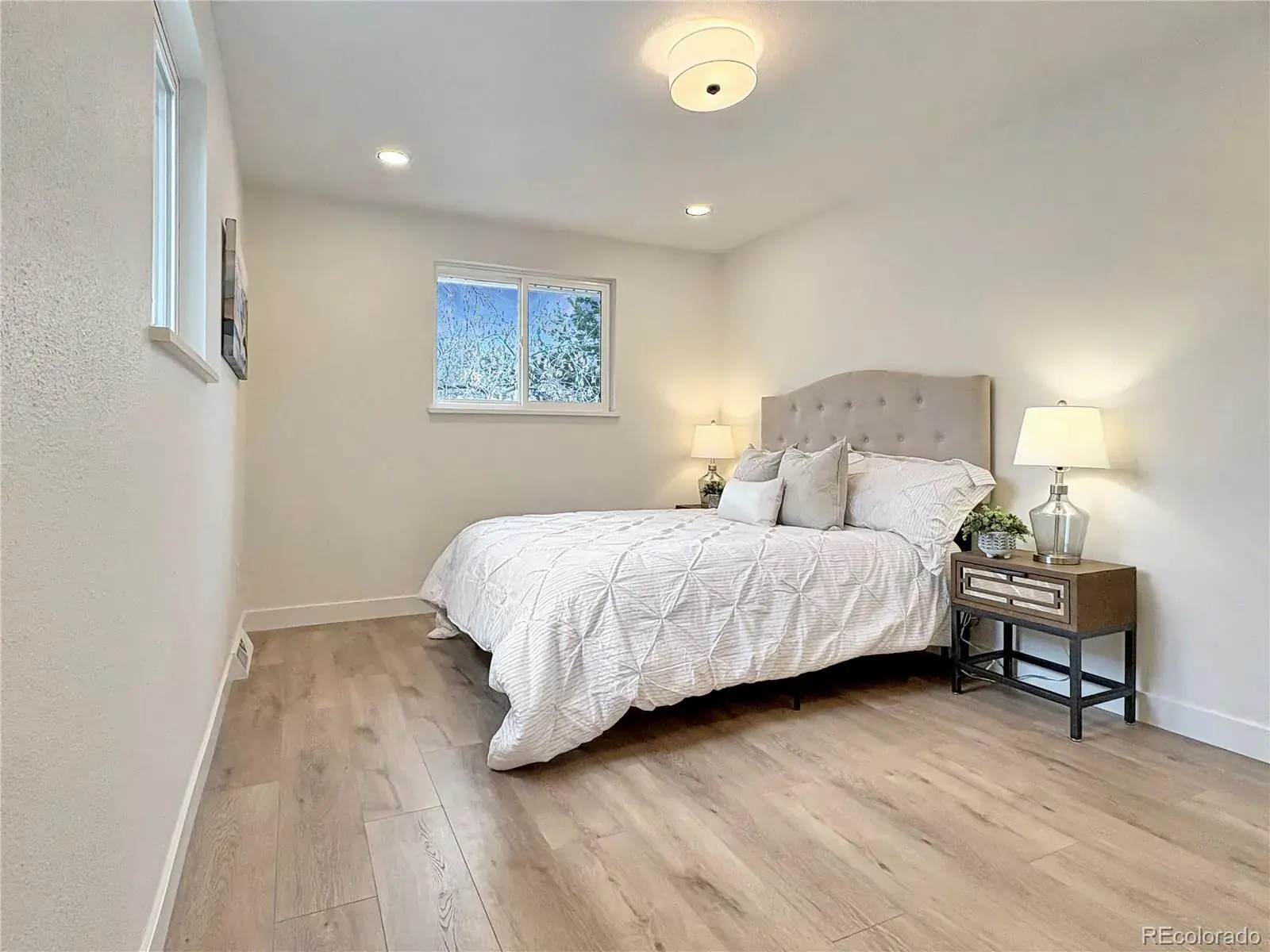 Welcome to this beautifully remodeled 5-bedroom, 4-bath home in Arvada’s Woodland Hills neighborhood! Light and airy throughout, this home features an open floor plan perfect for entertaining, with a cozy fireplace as the centerpiece of the main living area. The updated kitchen features quartz countertops, a large island, and an open layout that flows seamlessly into the dining and living spaces. Upstairs, the primary bedroom includes a private en suite bathroom and large walk in closet, while two additional bedrooms share a beautifully remodeled bathroom. The finished basement includes two bedrooms with egress windows and a stunning new bathroom- perfect for guests, a home office, or additional living space. Every corner of the home has been thoughtfully updated, offering modern comfort and style. Enjoy the spacious backyard with mature landscaping, perfect for gardening, play, or relaxing evenings on the patio. A two-car garage completes this move-in-ready home. With easy access to Olde Town Arvada, I-70, and local parks, this home offers the ideal mix of location and space.