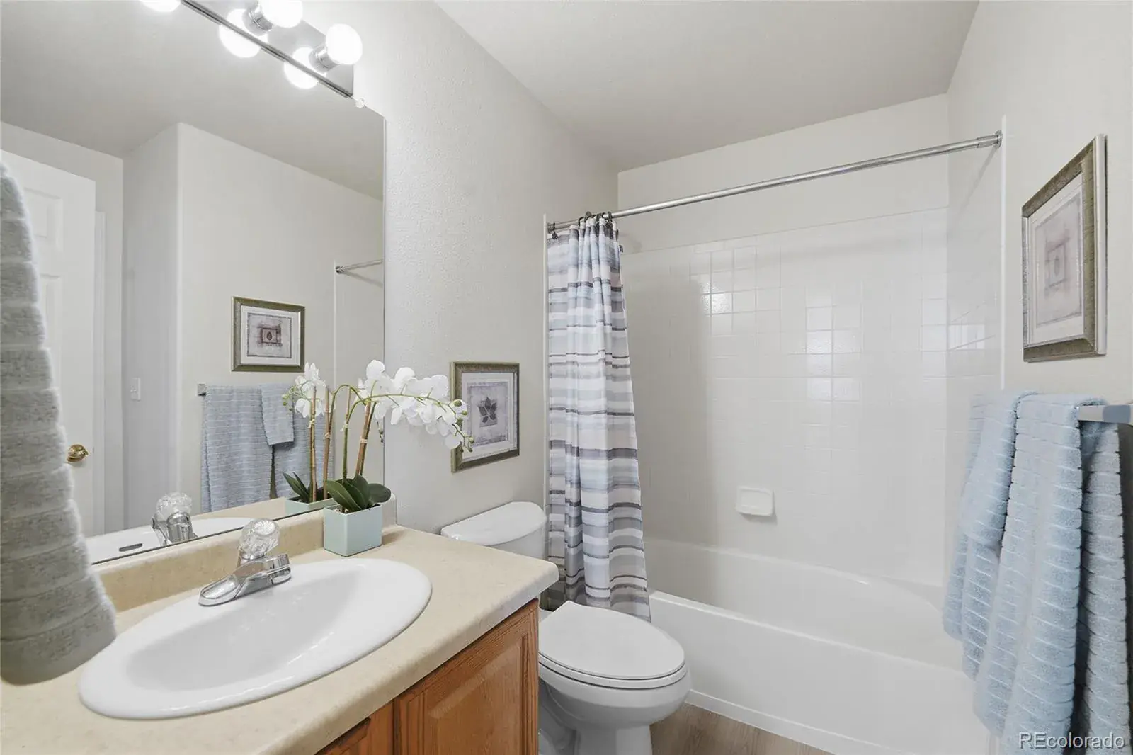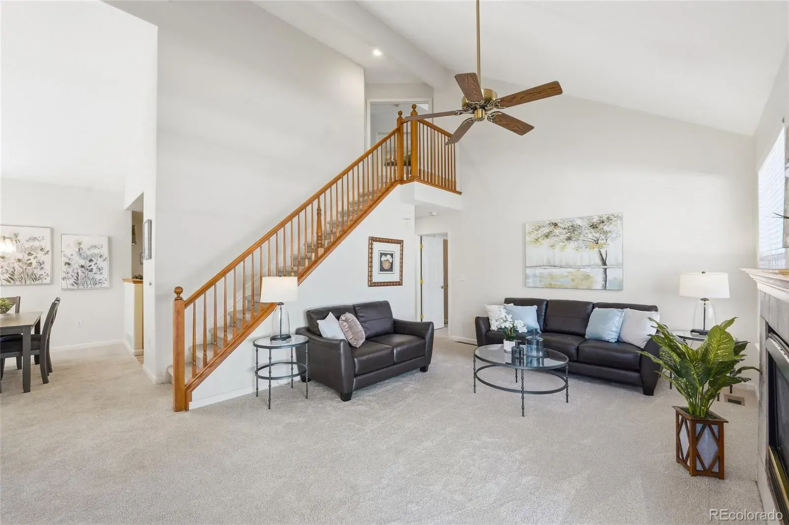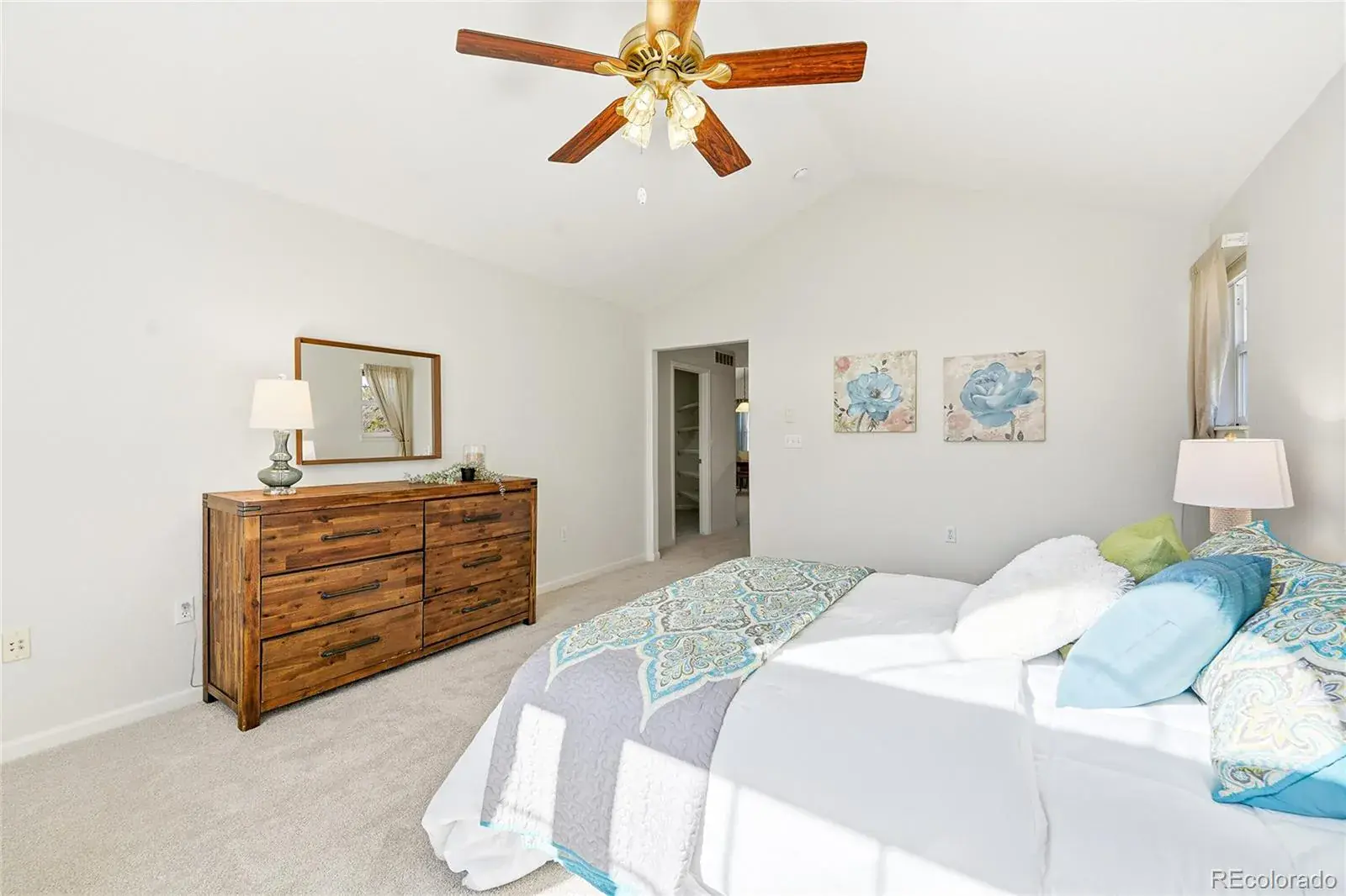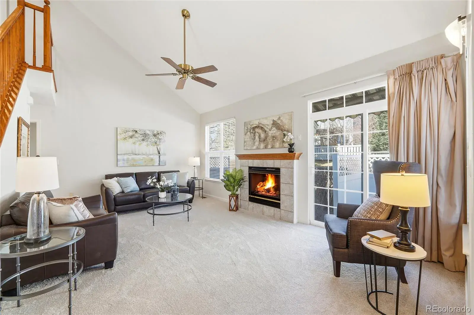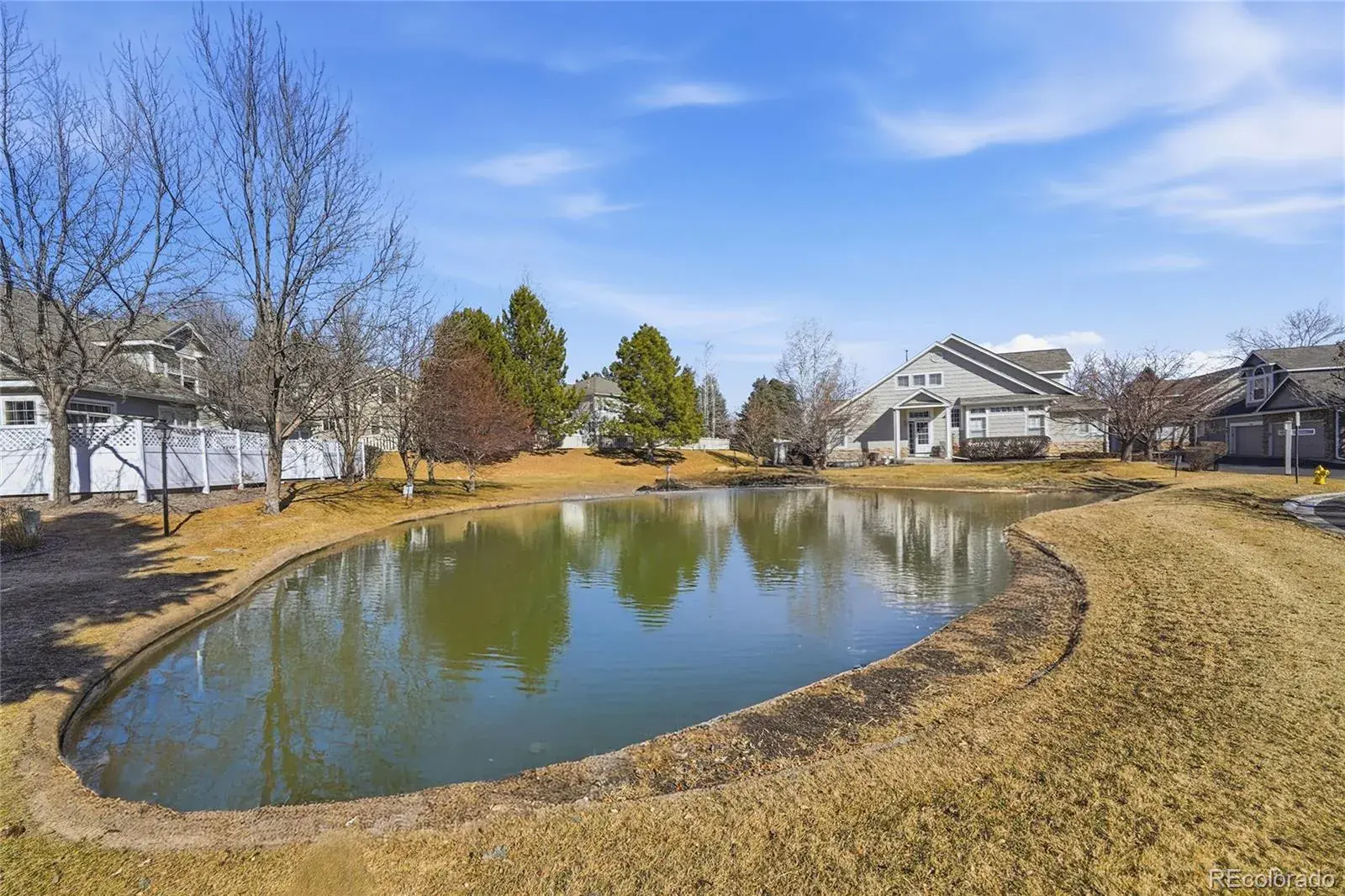 Tucked into a serene, private corner of Wyndham Park, this bright and airy paired home offers easy, low-maintenance living with a fresh, updated interior and a peaceful pond just beyond your front door! Soaring vaulted ceilings, new luxury vinyl plank flooring, and new carpet create a clean, updated feel throughout the home. The light-filled living room centers around a cozy gas fireplace and opens to the private patio through sliding doors, perfect for morning coffee, happy hour, or relaxed evenings under the trees. The vaulted dining area with updated lighting flows seamlessly into the kitchen, where stainless steel appliances, warm wood cabinetry, a central island, and a generous pantry make everyday cooking and casual entertaining feel fun and easy. A main-floor bedroom and nearby full bath offer a private space for loved ones or working from home, while the finished laundry room keeps daily routines simple. Upstairs, the sprawling primary suite offers oversized windows, an incredible walk-in closet, and a five-piece bath featuring a soaking tub and spacious walk-in shower. A private primary den offers space for an upstairs living area, sunny office, or creative studio! The unfinished basement is ready for your vision, whether you’re dreaming of a home gym, space to entertain, or future guest suite. Outside, mature trees, a retractable awning, green lawn space, and a canal leading to a small pond create a peaceful setting for dining al fresco or laid-back summer evenings. Walkable to Wyndham and Meadowlake Parks, Hyatt Park, and Das Meyer Fine Pastry Chalet, and under 20 minutes from Golden and Denver, this is the kind of home that makes everyday living feel connected, comfortable, and full of possibility.