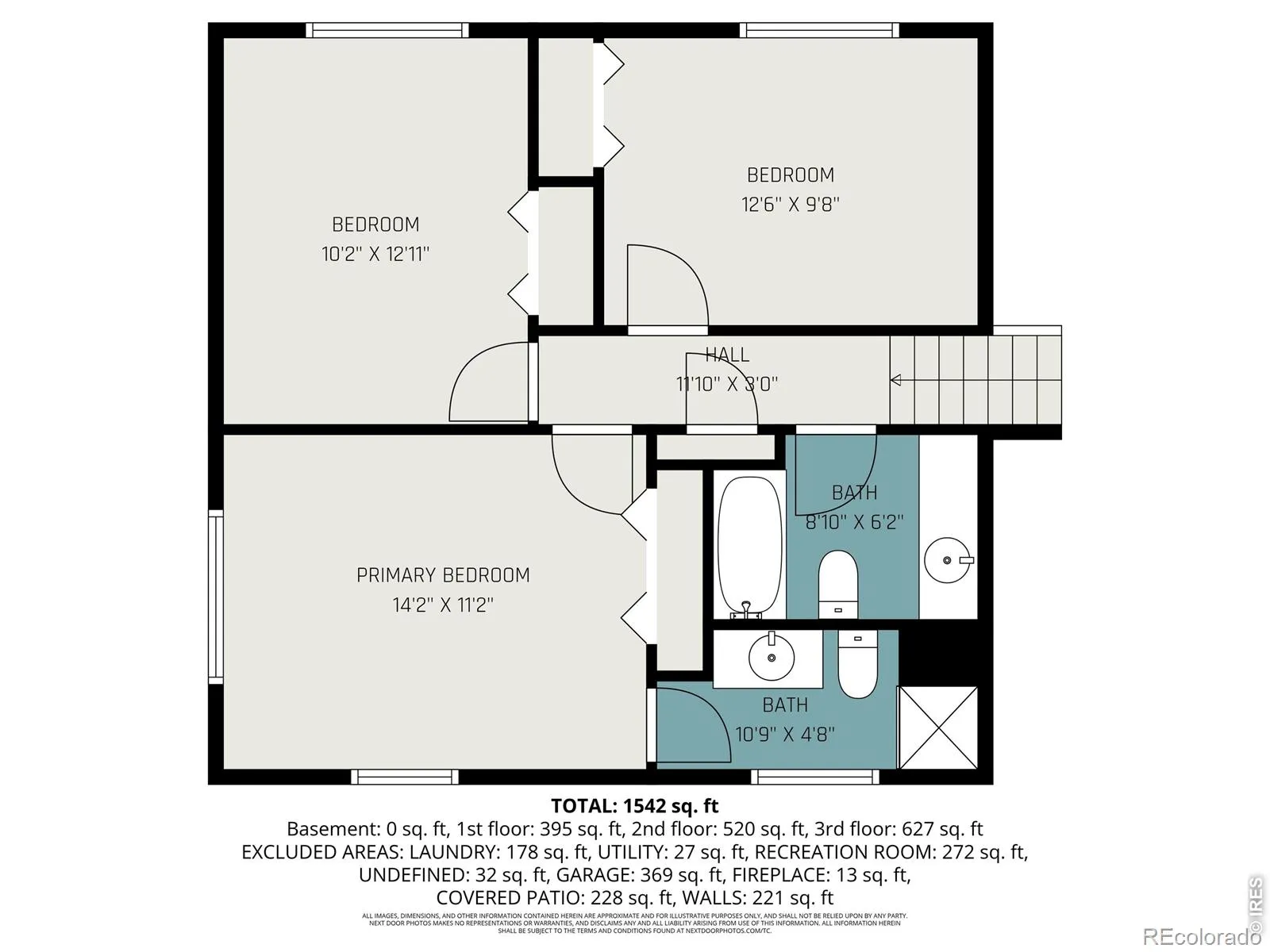 1 Full Bathroom, 1 Three Quarter Bathroom, 1 Half Bathroom