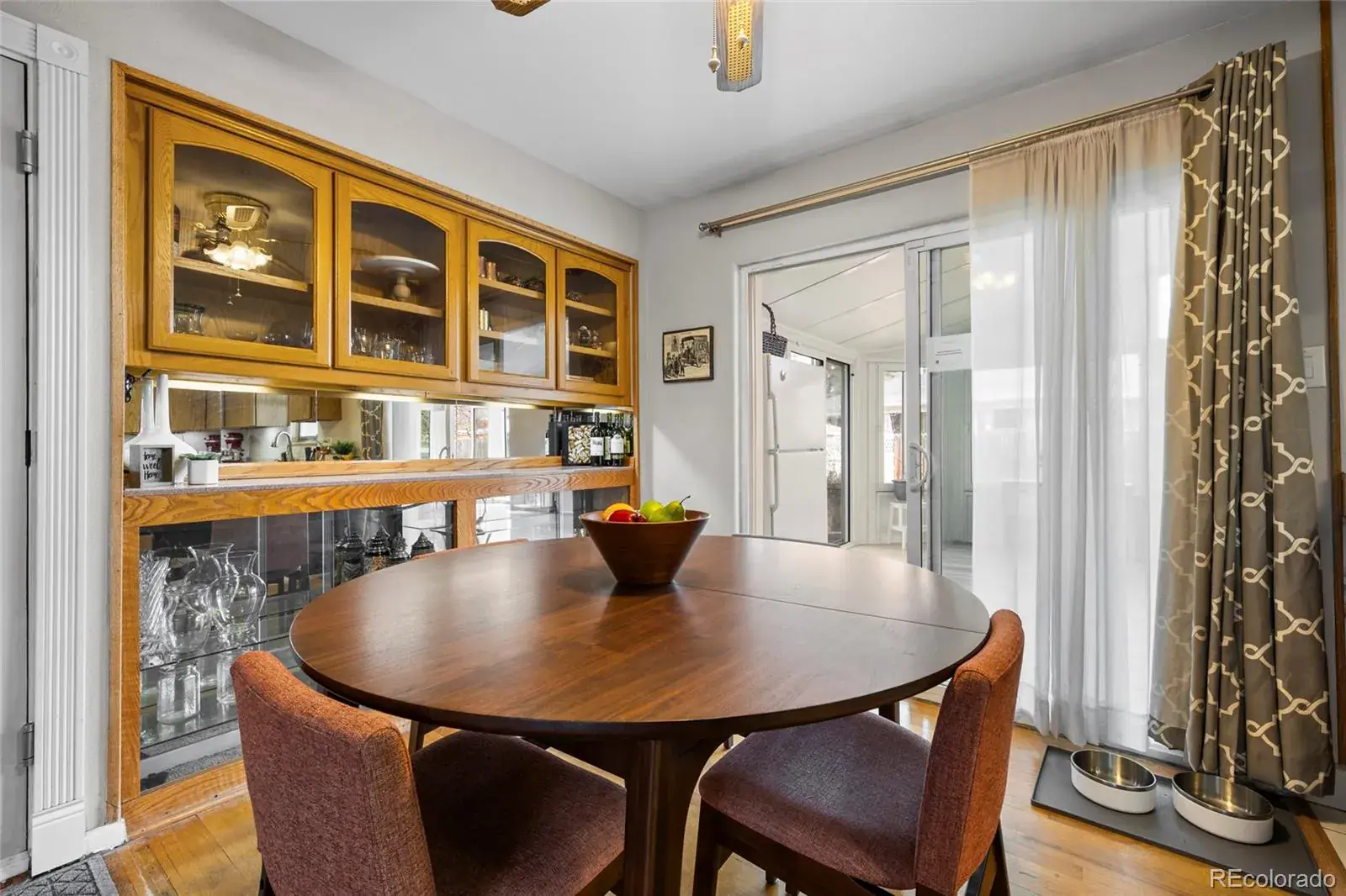 Welcome home to this beautifully maintained 3-bedroom, 3-bathroom ranch in sought-after Aurora Hills. Offering over 1,700 square feet on the main level, this home blends timeless character with thoughtful updates. Step inside to discover original hardwood floors, abundant natural light, and a stunning built-in China hutch anchoring the dining area — a true nod to the home’s period charm. The spacious layout includes a large sunroom addition, perfect for year-round relaxation, entertaining, or a bright home office. The main-floor primary suite offers privacy and everyday comfort, featuring a private en suite bath and walk-in closet. With another 1,297-square-foot basement provides exceptional flexibility with a ¾ bathroom, generous storage, multiple rooms – perfect for recreation, guests, or hobbies. Enjoy Colorado outdoor living on the deck or patio overlooking a private yard, complete with raised garden beds, a utility shed, and front and back sprinkler systems. A gardener’s delight, featuring established rhubarb and strawberry plants, native Colorado wildflowers, vibrant clematis, and a welcoming front entry accented with hundreds of spring tulips, daffodils, and crocuses. The attached garage, newer driveway, new roof (2022). Ideally located near parks, the Highline Canal Trail, area retail and dining, and with easy access to major roads and highways, this home combines comfort, character, and convenience. A true gem!