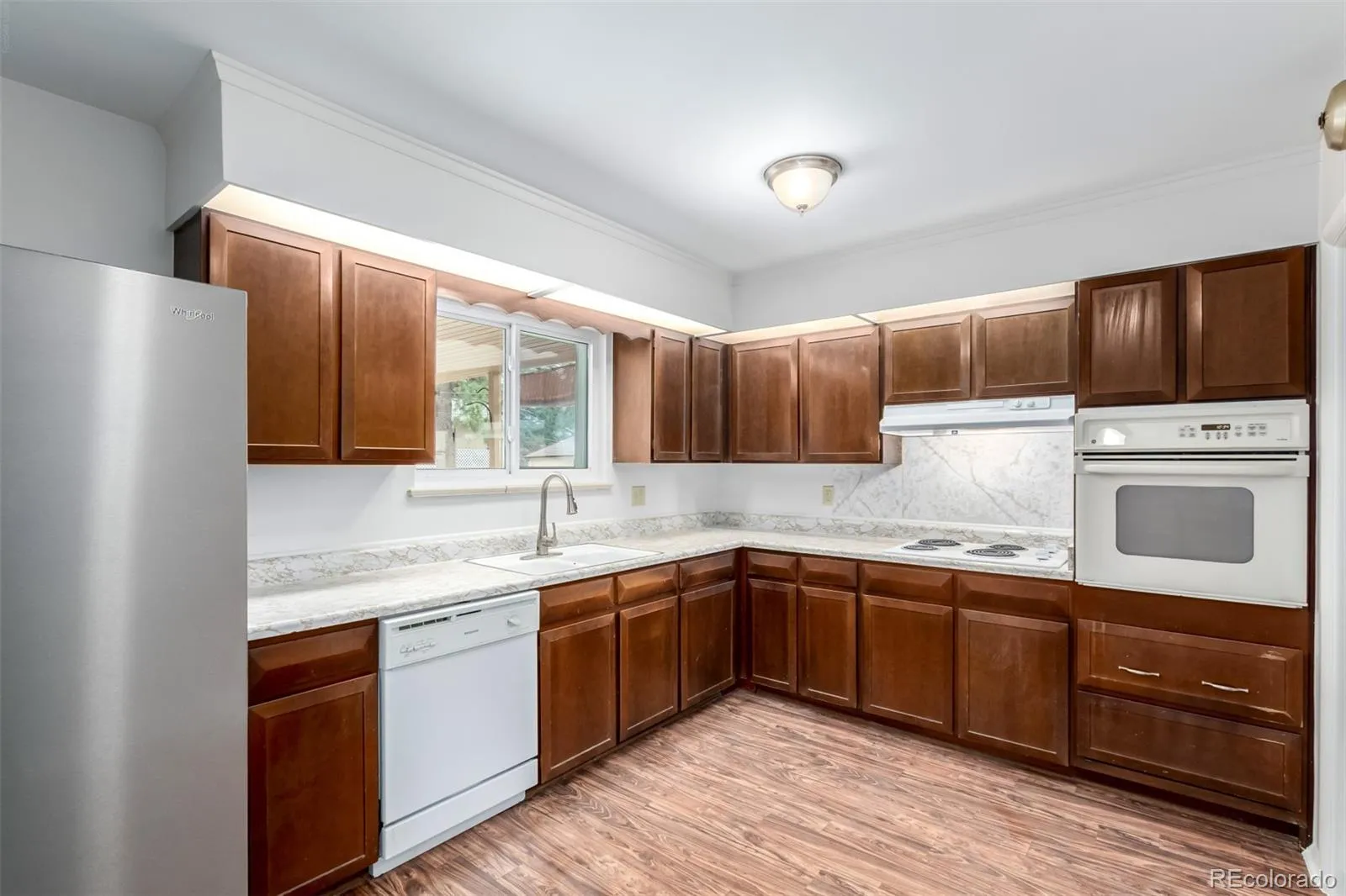 Sprawling brick ranch in Aurora Hills with exceptional curb appeal and abundant natural light throughout. The main level features gleaming hardwood floors, a spacious kitchen with ample cabinet storage, and three well-sized bedrooms. A massive addition provides flexible living space perfect for a second living room, office, or entertaining area. The finished basement adds two additional bedrooms and a bathroom, offering great space for guests or extended living. Newer roof and newer windows for added peace of mind. Complete with a one-car attached garage and a highly convenient location just minutes from I-225, DIA, and downtown Denver.