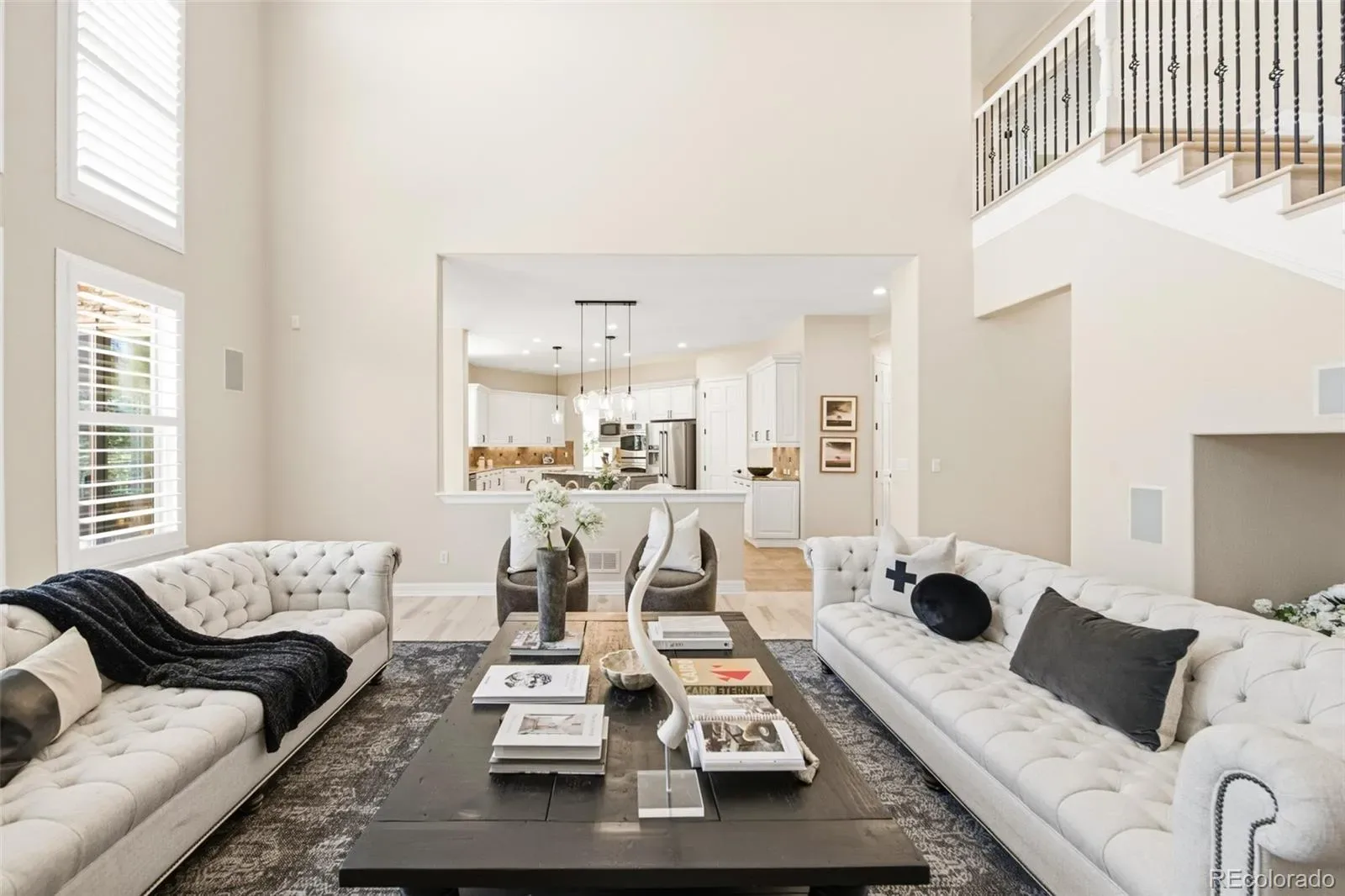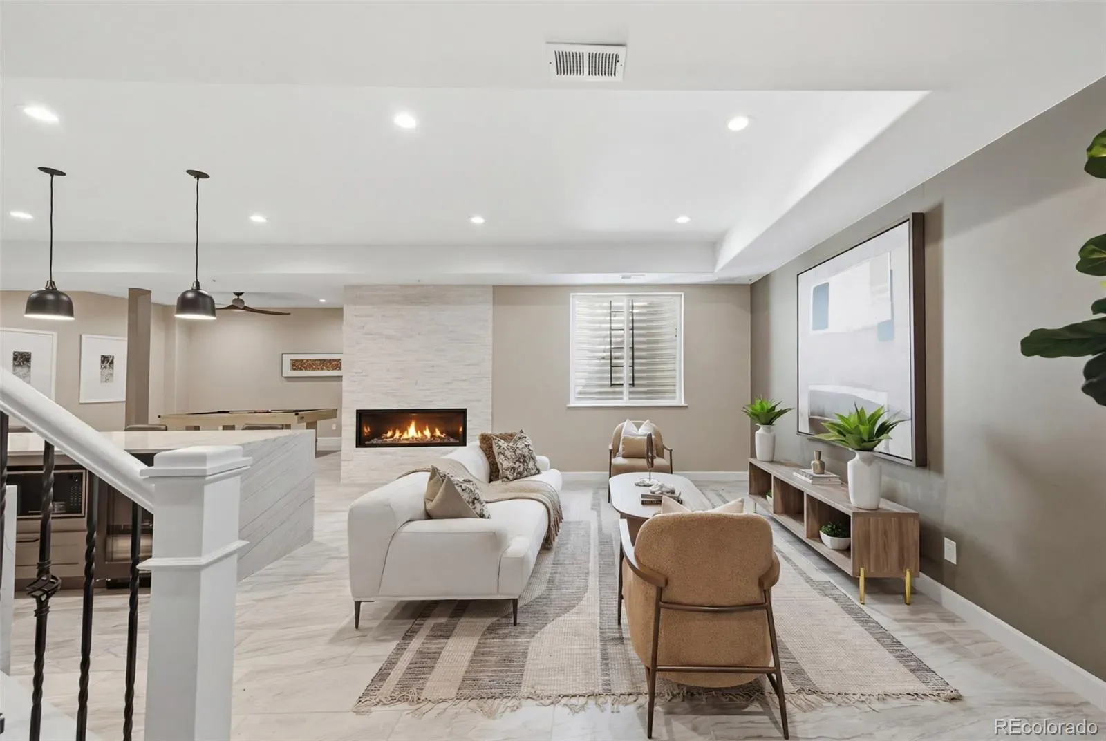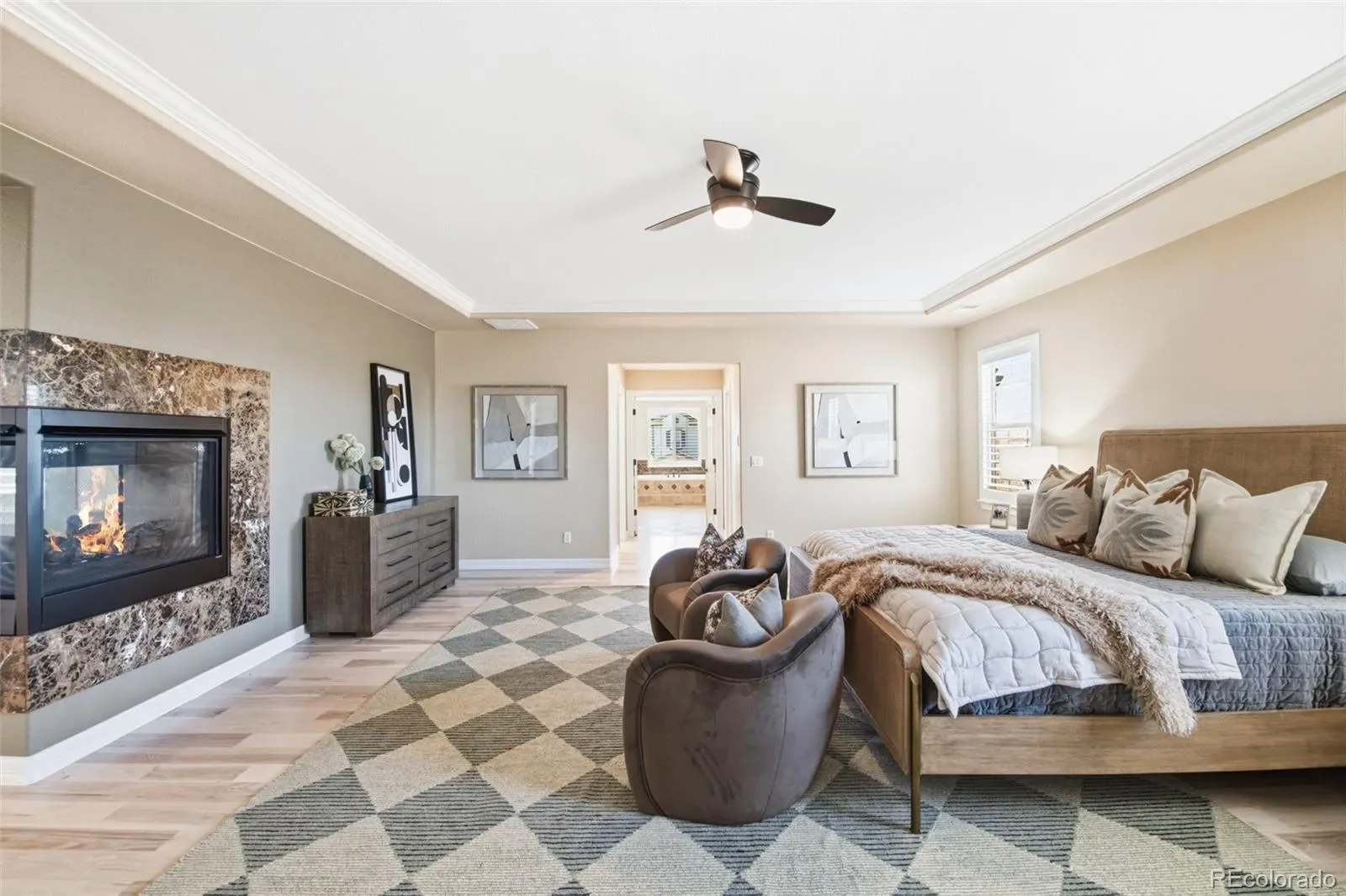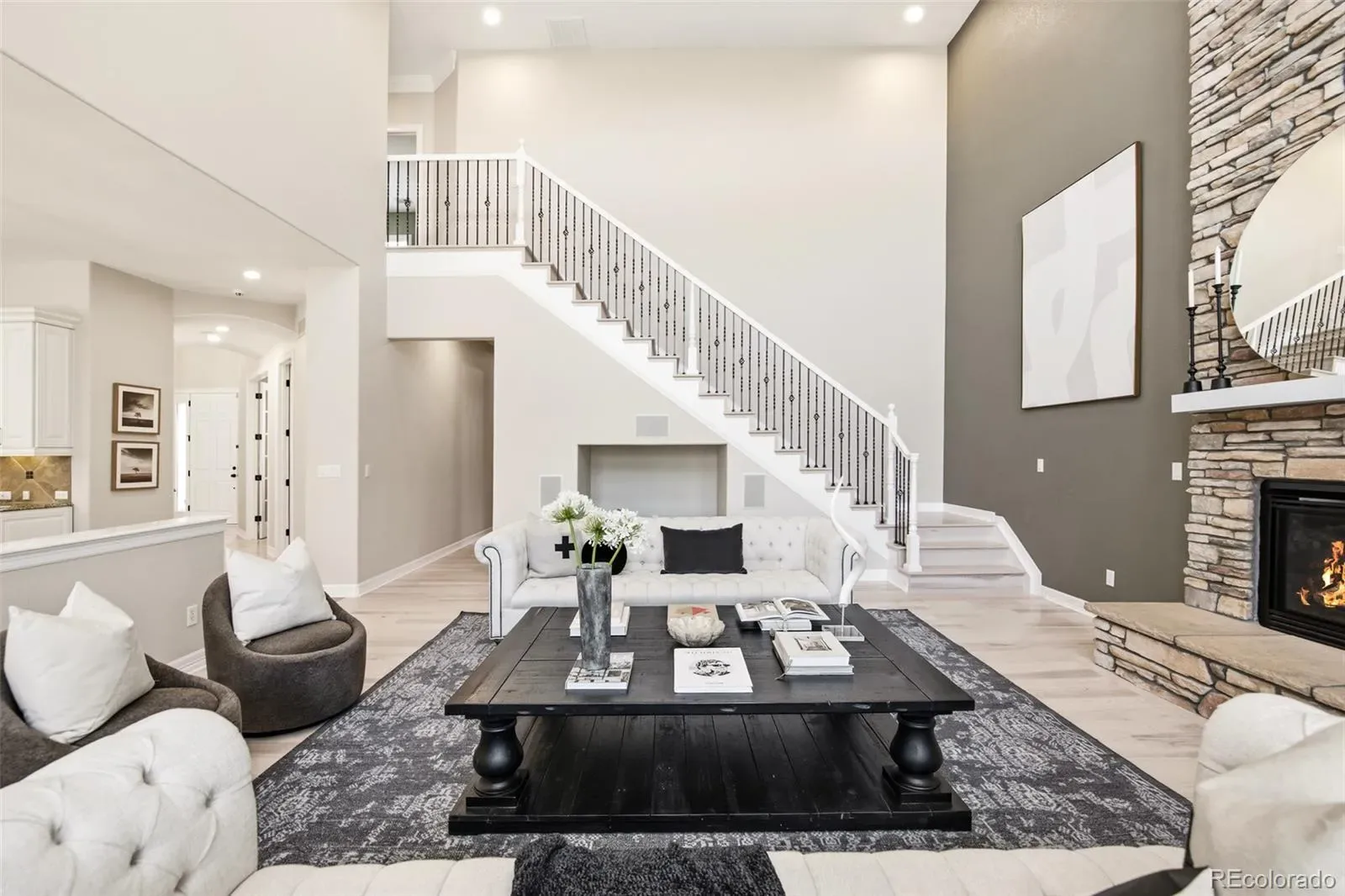 This expansive semi-custom Toll Brothers residence in Beacon Point offers a rare blend of scale, craftsmanship, and modern efficiency designed for both elevated daily living and effortless entertaining. A grand two-story foyer opens into a dramatic great room with soaring ceilings, creating an immediate sense of space and light. The kitchen is both refined and highly functional, featuring double ovens, an induction range, premium appliances, and a walk-in pantry. The main level is thoughtfully designed with a dedicated office, library, and sunroom, along with a well-appointed mudroom and laundry room. A full interior refresh in 2026, paired with custom shutters, hickory hardwoods and updated lighting, delivers a clean, cohesive, and move-in-ready aesthetic throughout. Upstairs, the primary suite is a sanctuary unto itself a built-in Miele coffee maker, wet bar, double-sided fireplace, dual walk-in closets, and a luxurious bathroom create a retreat you’ll never want to leave. The finished basement extends the living experience with a guest bedroom, KitchenAid appliance package, and an exquisitely finished spa-style bathroom with a private sauna, ideal for guests or multi-generational living. Outdoors, the backyard offers a spacious patio, a tranquil water feature, and water-efficient landscaping, creating a private and low-maintenance setting. The oversized three-car garage is equipped with built-in cabinetry, a workbench, and a dedicated 220V outlet for EV charging. A fully owned 13.1 kWh solar system, R60 insulation, dual-zone HVAC, and Class 4 impact-resistant tile roof deliver exceptional energy efficiency and near-zero utility costs. Residents enjoy a clubhouse, fitness center, resort-style pool, and tennis courts, all steps from Aurora Reservoir and miles of trails. Top-rated Cherry Creek Schools, Southlands Mall minutes away, and both DIA and DTC within 20 minutes complete this extraordinary offering.