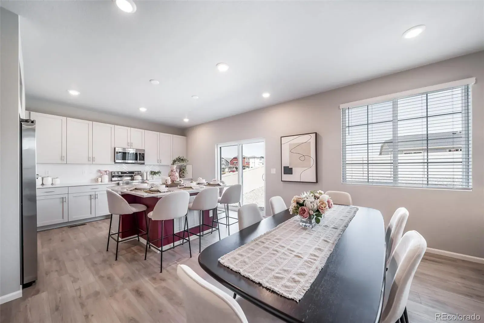 This home has plenty of curb appeal featuring a multi-textural exterior, and front porch. The main level is bright with oversized windows, 9’ ceilings, home-office flex room, dining area, and an expansive great room. Enjoy designer LVP flooring, Shaw carpeting, and Sherwin-Williams paint throughout. The kitchen is complete with a large dining island, stainless-steel sink, and large pantry. The spacious primary suite offers a large walk-in closet, double vanity sink, and a tiled spa shower. The 2nd floor also features a laundry room and 4 additional bedrooms with large closets. Actual home may differ from artist’s rendering or photography shown.