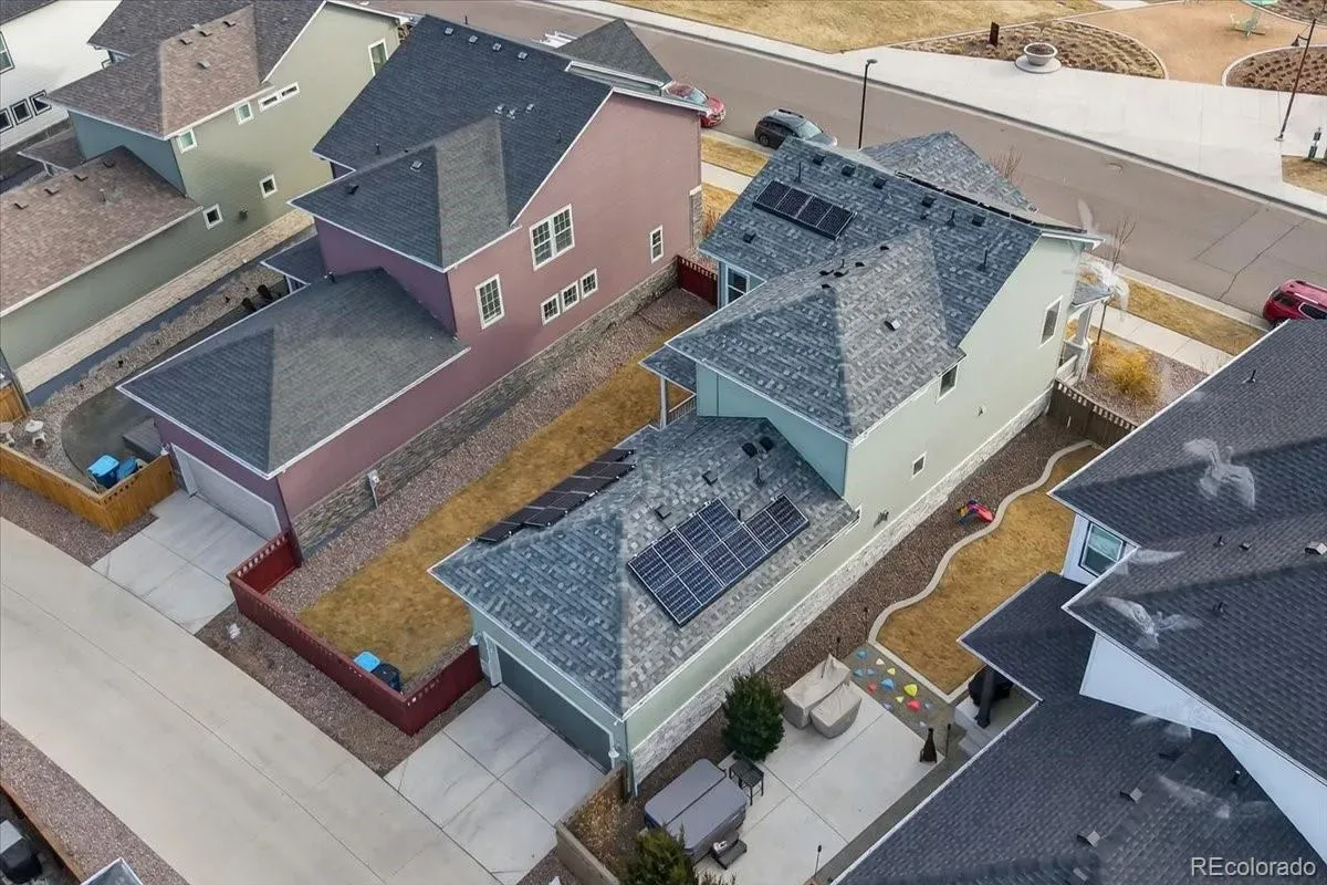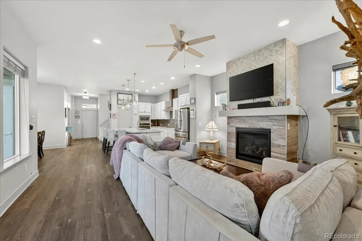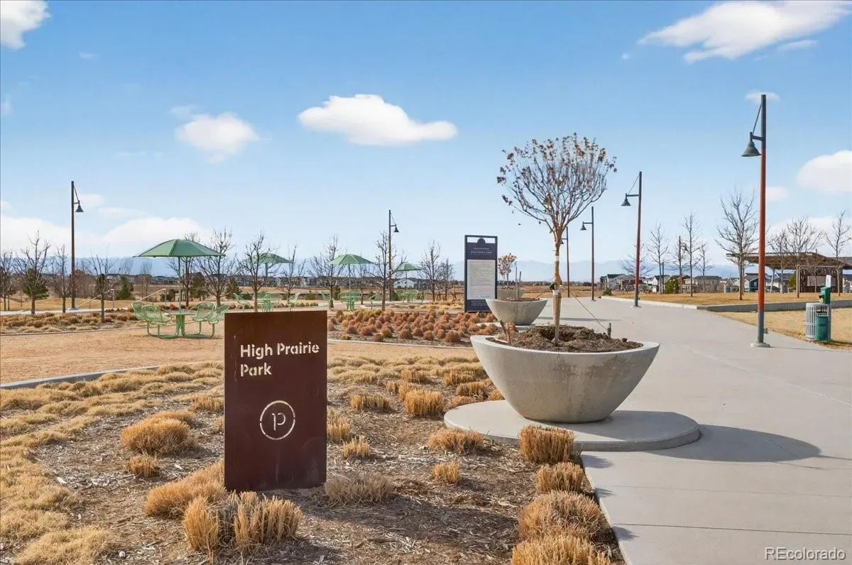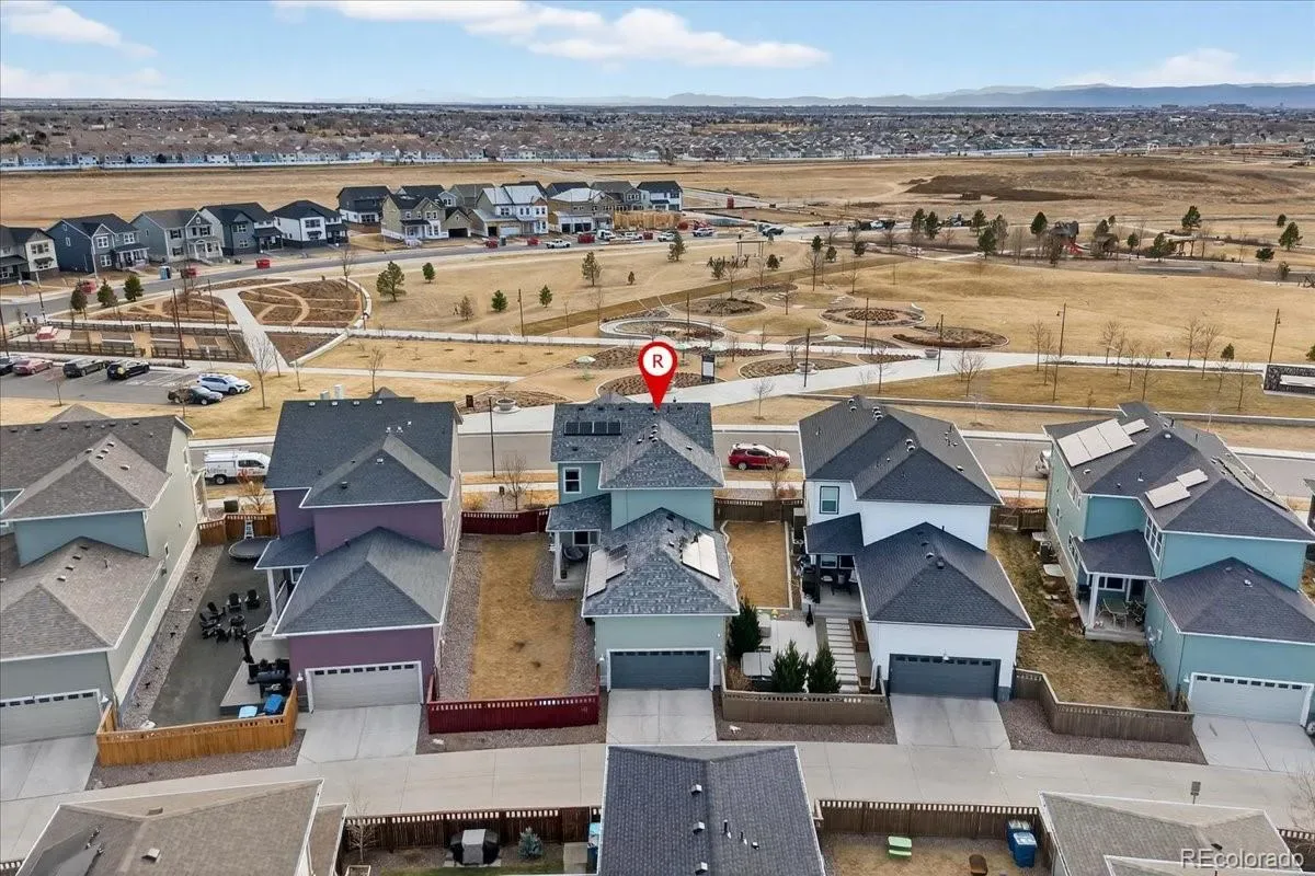 Positioned to sell quickly at this new price! Offering park views, a finished basement, and flexible 4–5 bedroom living, plus $6K toward rate buy-down or closing costs. Built by David Weekley Homes, known for quality construction and thoughtful design. Located near the Gaylord Rockies Resort with a future King Soopers Marketplace, Super Target, and Sprouts nearby, offering both convenience and growth potential. Situated on a premium park-facing lot with an expanded side yard, the home offers a rare sense of openness and usable outdoor space. The bright, open main level features durable waterproof LVT flooring throughout—ideal for kids and pets—a private office with French doors, and a spacious living area with a custom fireplace. The kitchen includes a large island, upgraded cabinetry, built-in oven and microwave, custom hood vent, herringbone tile backsplash, and roll-out cabinetry. Upstairs, a loft offers flexible space or potential for an additional bedroom. The primary suite features a five-piece bath with dual vanities, soaking tub, and separate shower. The finished basement includes a bedroom, full bath, living area, wet bar with mini fridge, and storage, with potential for a fifth bedroom. Additional features include attic fan, fireplace blower, Graber blinds, enhanced electrical with EV potential, sump pump, radon system, and smart cameras and doorbell. New Class 4 roof (2024) and leased solar provide efficiency and cost savings. Fully landscaped with irrigation, minutes to DIA with easy access to E-470, shopping, dining, and amenities.