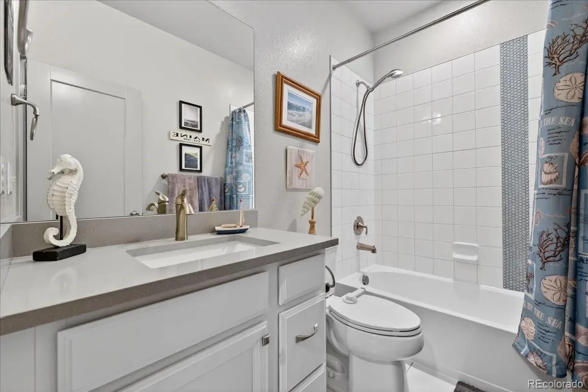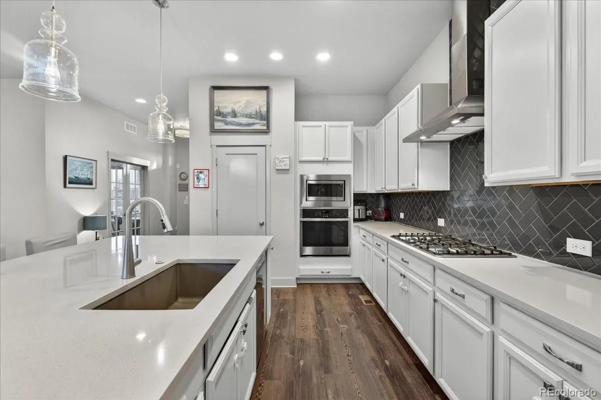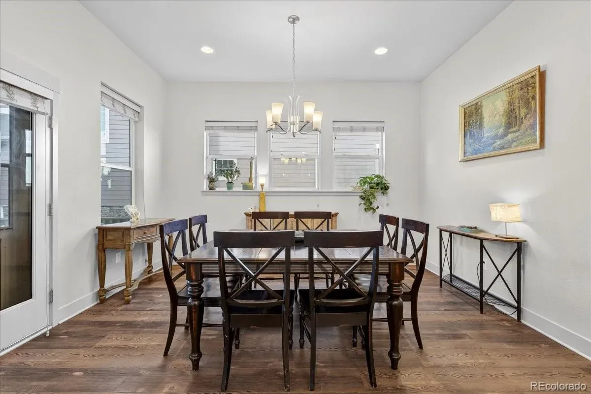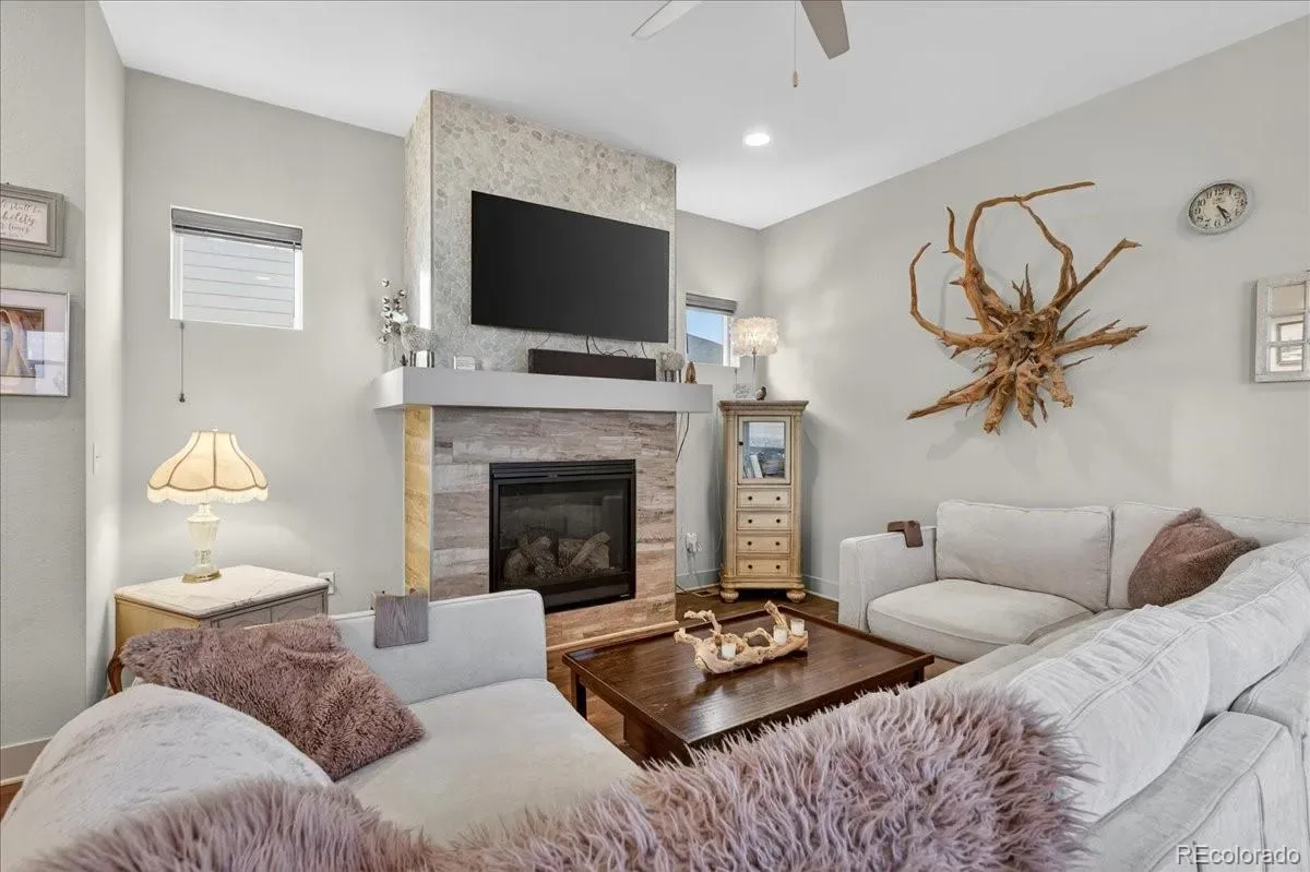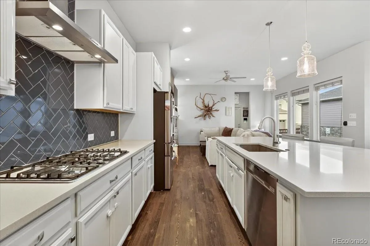 Positioned to sell quickly at this new price! Offering park views, a finished basement, and flexible 4–5 bedroom living, plus $6K toward rate buy-down or closing costs. Built by David Weekley Homes, known for quality construction and thoughtful design. Located near the Gaylord Rockies Resort with a future King Soopers Marketplace, Super Target, and Sprouts nearby, offering both convenience and growth potential. Situated on a premium park-facing lot with an expanded side yard, the home offers a rare sense of openness and usable outdoor space. The bright, open main level features durable waterproof LVT flooring throughout—ideal for kids and pets—a private office with French doors, and a spacious living area with a custom fireplace. The kitchen includes a large island, upgraded cabinetry, built-in oven and microwave, custom hood vent, herringbone tile backsplash, and roll-out cabinetry. Upstairs, a loft offers flexible space or potential for an additional bedroom. The primary suite features a five-piece bath with dual vanities, soaking tub, and separate shower. The finished basement includes a bedroom, full bath, living area, wet bar with mini fridge, and storage, with potential for a fifth bedroom. Additional features include attic fan, fireplace blower, Graber blinds, enhanced electrical with EV potential, sump pump, radon system, and smart cameras and doorbell. New Class 4 roof (2024) and leased solar provide efficiency and cost savings. Fully landscaped with irrigation, minutes to DIA with easy access to E-470, shopping, dining, and amenities.