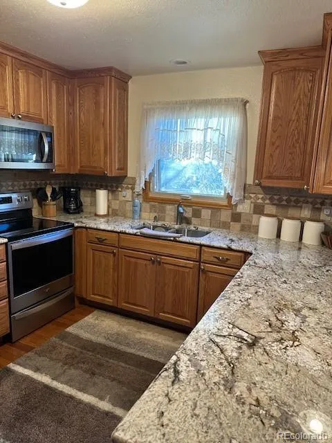 Please do not miss this gorgeous 2 story home in Tuscany Piney Creek East. The owners have paid attention to every detail of the home in remodeling., updating and finishing the entire home. Mountain Views abound from the lovely deck off the kitchen and from the large windows of the family room on the main level. The home backs onto an elementary school allowing privacy. The main level has a family room featuring a brick fireplace and vaulted ceilings. The kitchen was remodeled in 2021 with new cabinets, granite counters, new lighting , new paint, stainless appliance plus a large pantry. The adjacent eating space accesses the recently replaced deck. A big dining room for group gatherings includes a custom made chandelier. The large living room, an office with built in shelving,conveniently located near the home entry which has a vaulted ceiling and custom stair railings, and a half bath complete the main level. Three ample bedrooms with good closets, and 6 panel wood doors are served by the full bath featuring solid surface counter and new vanity. The primary bedroom has vaulted ceilings and easily holds a king size bedroom set. The 5 piece bath offers a luxurious garden tub and large walk in closet. The walk out basement level has recently been created with a 5th bedroom and huge walk in closet, a laundry room with utility sink, a large storage room with shelves included, and a 3/4 bath and an cozy bonus/ family room including an electric fireplace. You walk out to a manicured yard and covered patio with porch swing. Trees/ bushes and the gutters for the home are maintained through fall with pre-paid service. The HVAC system was replaced in 2021; roof replaced in 2023; windows all replaced 2023; back yard shed is included, and sprinklers front and back are maintained professionally. A Blue Ribbon Home Warranty will be provided to the buyers effective the closing date. Inside and out this home is a winner!!