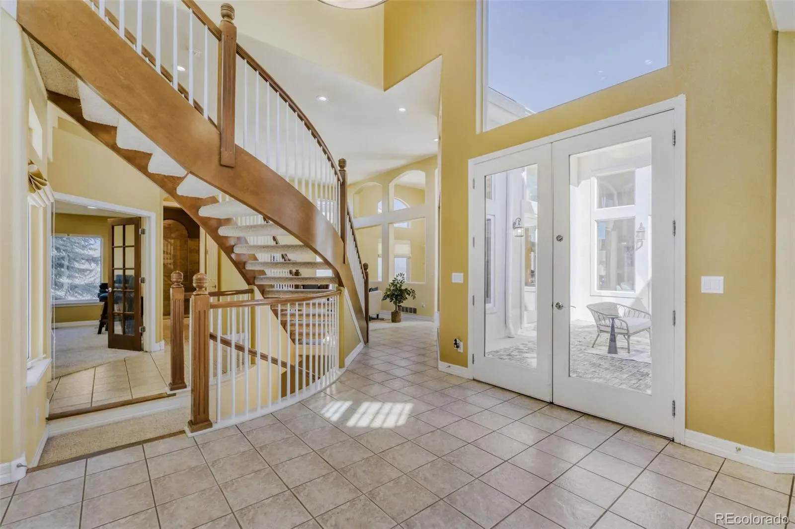Upstairs bedrooms include walk-in closets and en-suite bathrooms. The main level also offers a living room, study or optional fifth bedroom, and laundry room. South-facing orientation supports natural snow melt. Two garages offer interior access and space equivalent to a 4 car garage . Cherry Creek School District with HOA dues of $260 annually.