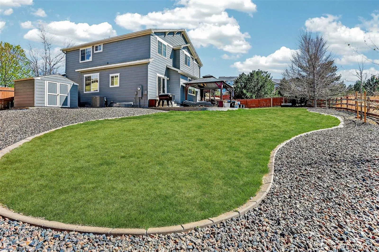Situated on a quiet cul-de-sac and backing to open greenbelt, this beautifully updated 3,300 SF South Aurora home offers the space, flexibility, and lifestyle today’s buyers are searching for. The main level is bright and inviting, featuring newly refinished hardwood floors, fresh interior paint, and an open-concept layout that seamlessly connects the family room and kitchen. The kitchen is designed for both daily living and entertaining, complete with granite countertops, stainless steel appliances, glass tile backsplash, and abundant cabinetry. Upstairs, the spacious primary suite includes dual closets and a well-appointed en suite bath. Secondary bedrooms are generously sized, and the versatile loft provides the perfect space for a home office, playroom, or additional lounge area. The finished basement expands your living options with a large rec room, wet bar, additional bedroom, stylish ¾ bath, and dedicated storage, ideal for guests or multi-generational living. Step outside to a private backyard retreat on a quarter-acre lot, featuring a 16×40 stamped concrete patio, pergola, fire pit, dog run, sprinkler systems, and utility shed, all backing to peaceful open space. A rare 4-car garage with tandem bay offers exceptional room for vehicles, storage, or hobbies. New exterior paint 2025. Located in the Cherry Creek School District and just minutes from Saddle Rock Golf Club, Southlands Shopping Center, E-470, DTC, and DIA, this home combines convenience with quiet suburban living.