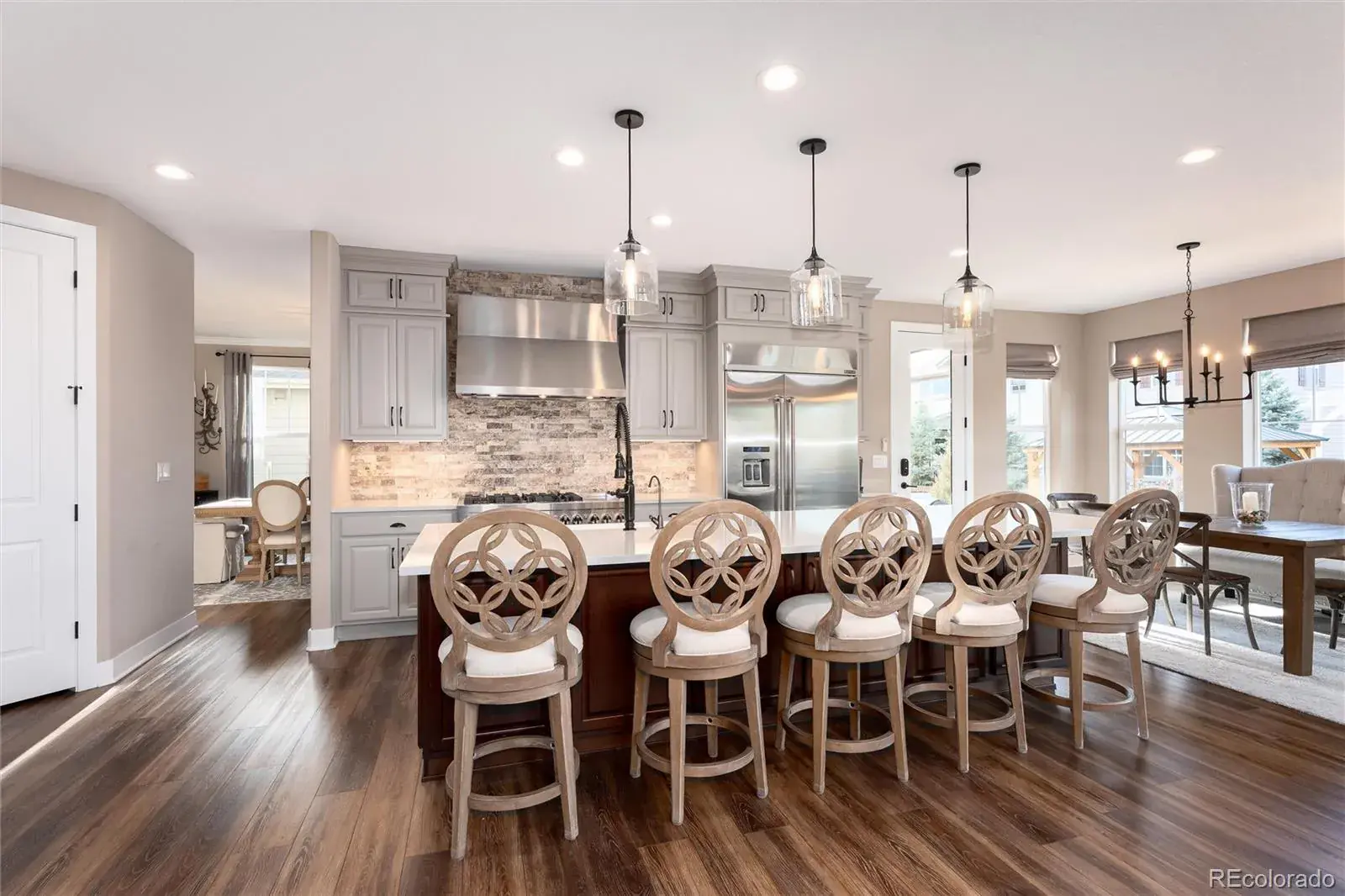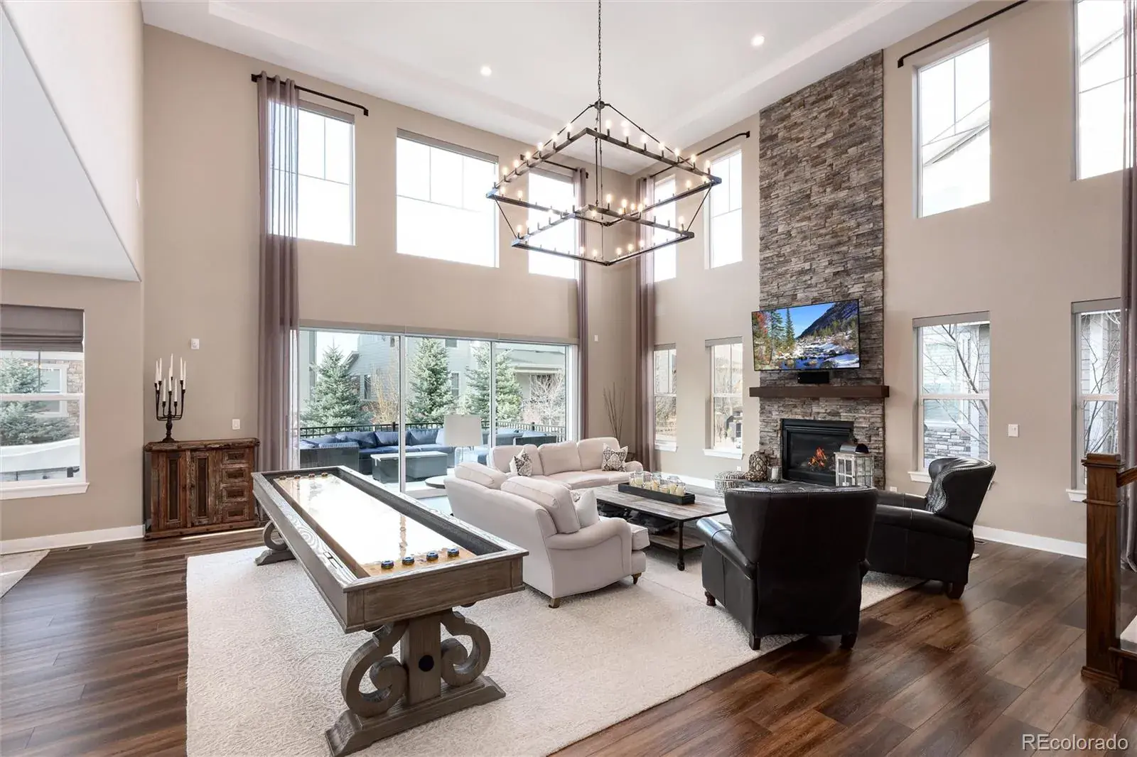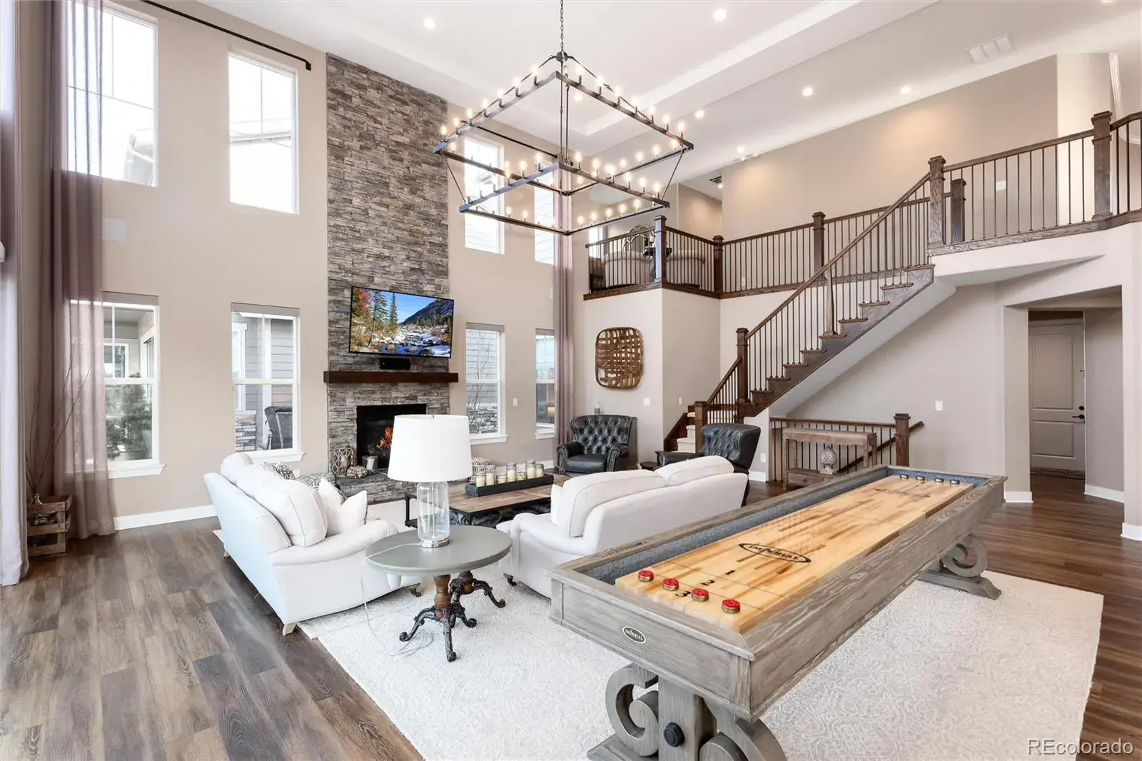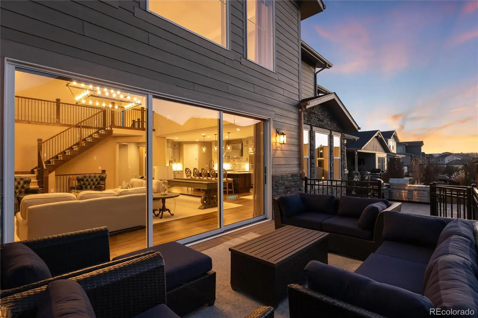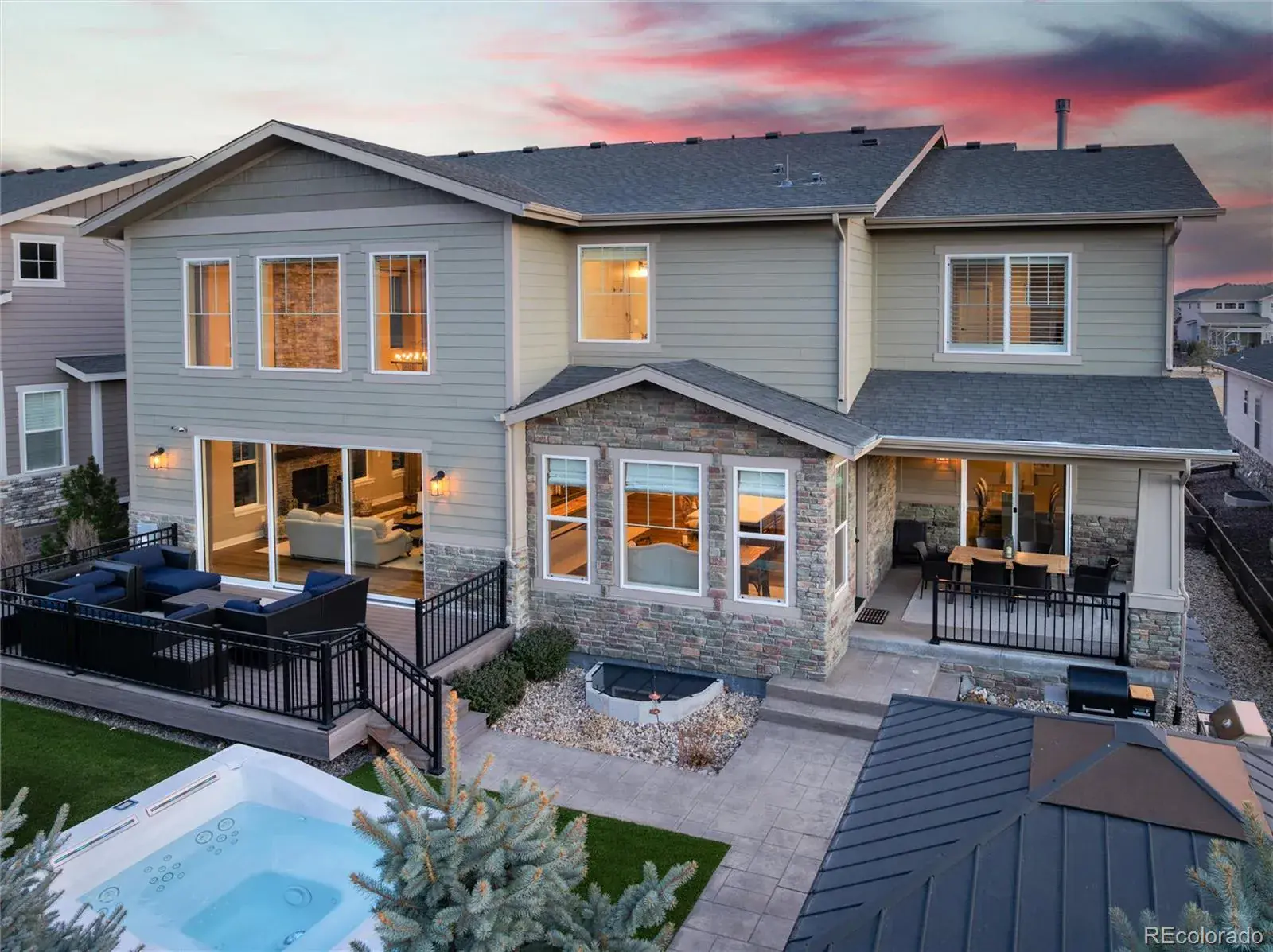 For Buyers looking for a luxury home in SE Aurora, be prepared to check off every item on your wish list at 27643 E Euclid Drive in Southshore. This stunning, Toll Brothers home impresses from every angle. With a large two story foyer guests will arrive and walk past a quiet home office w/dual glass doors and main floor powder room. The expansive two story great room showcases a floor-to-ceiling stone fireplace, stunning upgraded chandelier and 12 foot sliding door, which leads out to one of three outdoor entertaining spaces off the back of the home. Back inside, the kitchen continues to impress with an extended center island w/quartz countertops and upgraded appliances including the built-in, oversized refrigerator, gas range with hood and three ovens. Off the kitchen, the dedicated dining room leads to a covered outdoor patio with outdoor kitchen, fire pit and hot tub. A main floor bedroom w/ensuite bath and laundry room with second refrigerator complete the main floor. Off the second staircase are the upstairs living quarters showcasing the Primary Bedroom w/seating area and dual-sided gas fireplace. The Primary Suite offers privacy and mountain views with a true owners spa retreat w/frameless glass dual-headed shower, deep soaking tub and large closet with custom built-in shelving. Two additional bedrooms share a secondary bath with dual sinks and tub/shower combo. Downstairs, be ready to entertain on game day with a large family room featuring a wet bar and three mounted TV’s perfect for showcasing the big game. An additional bedroom, bath and home gym area complete the finished basement. The home is located one block from direct access to the Aurora Reservoir for paddle boarding, swimming, fishing and biking. Enjoy peace of mind living within walking distance to elementary, middle and high schools in the Cherry Creek School District! Southshore is the only community in SE Aurora with two clubhouses, multiple pools and gyms, parks trails and private dog park.