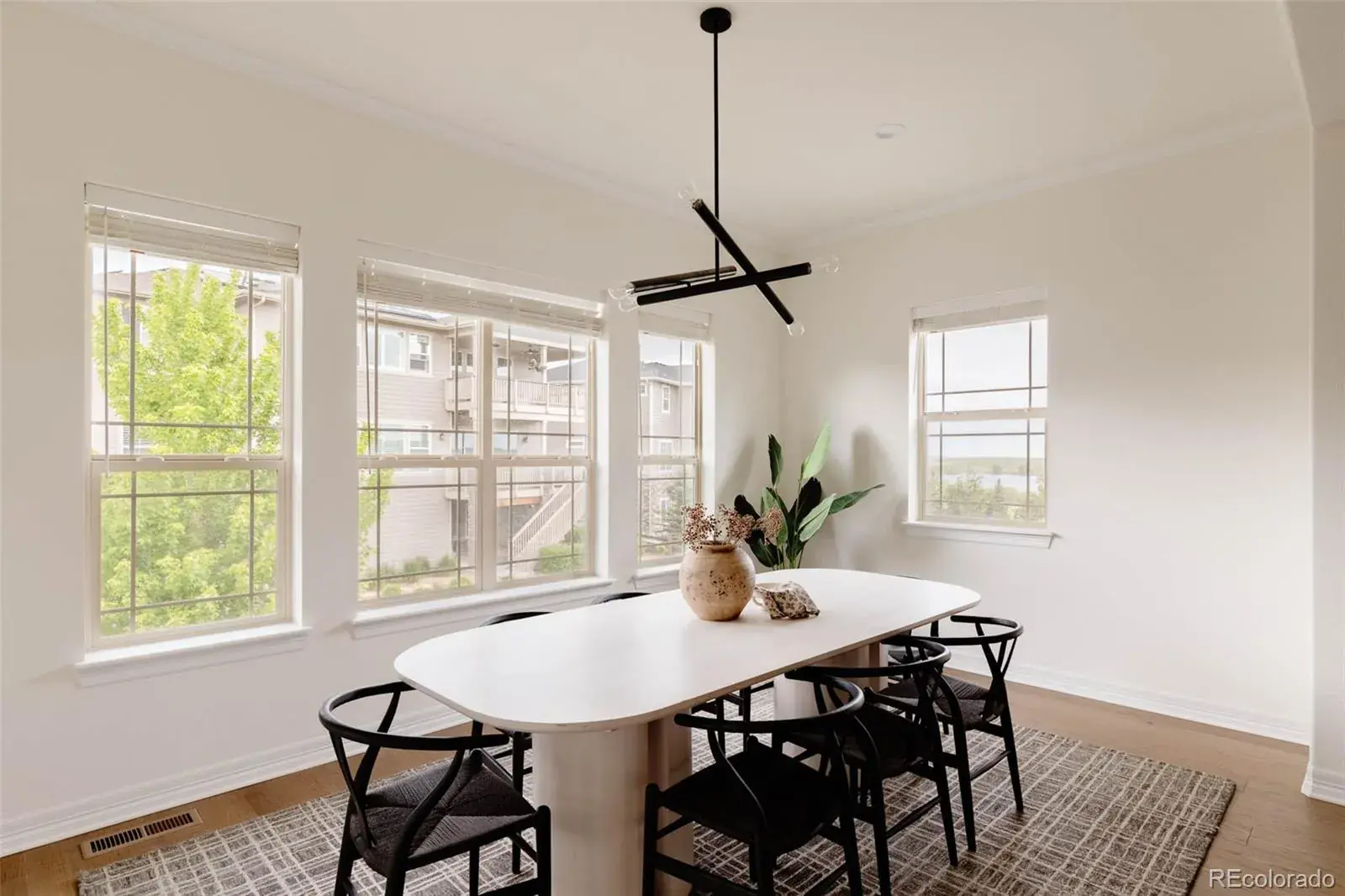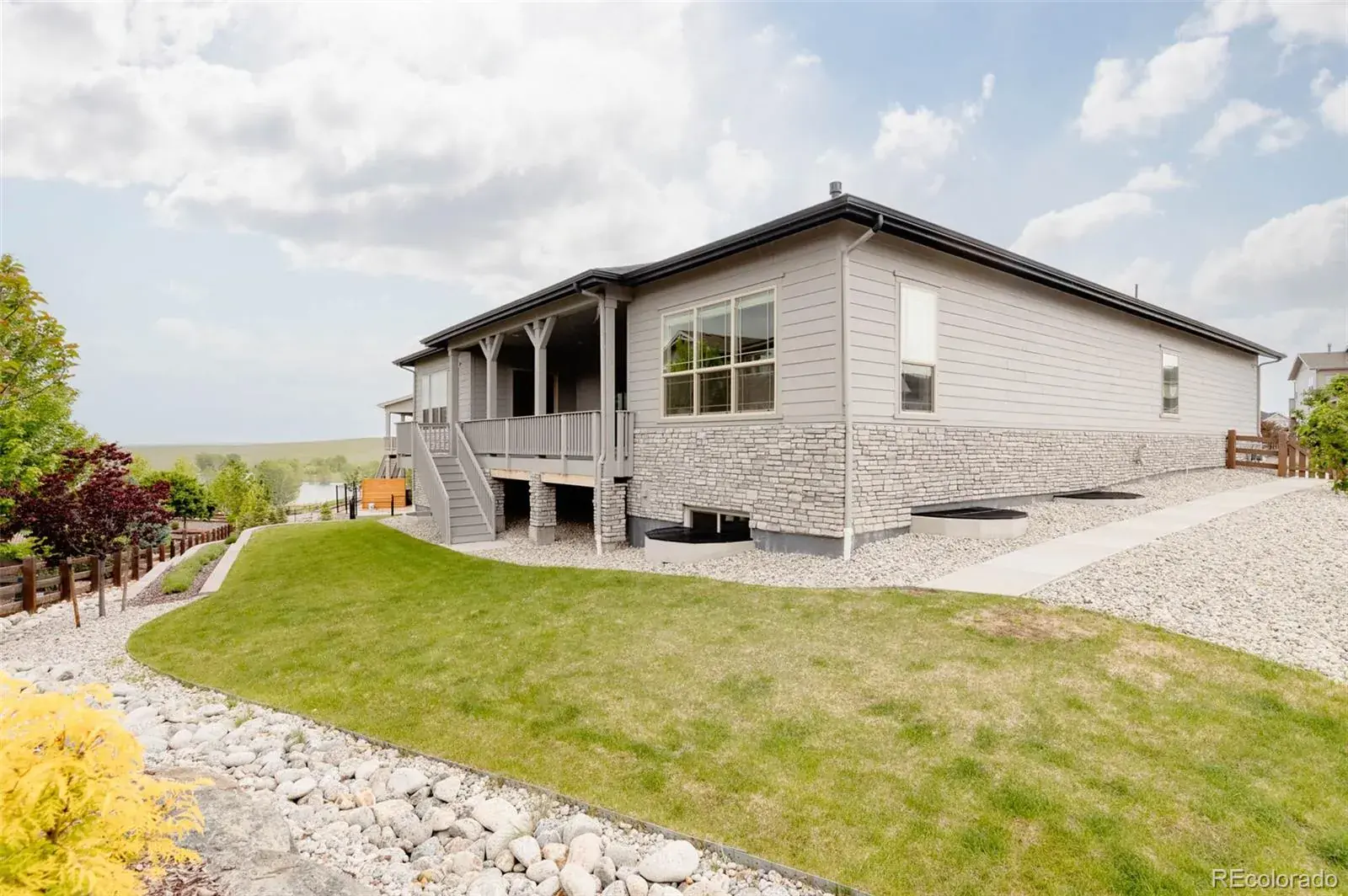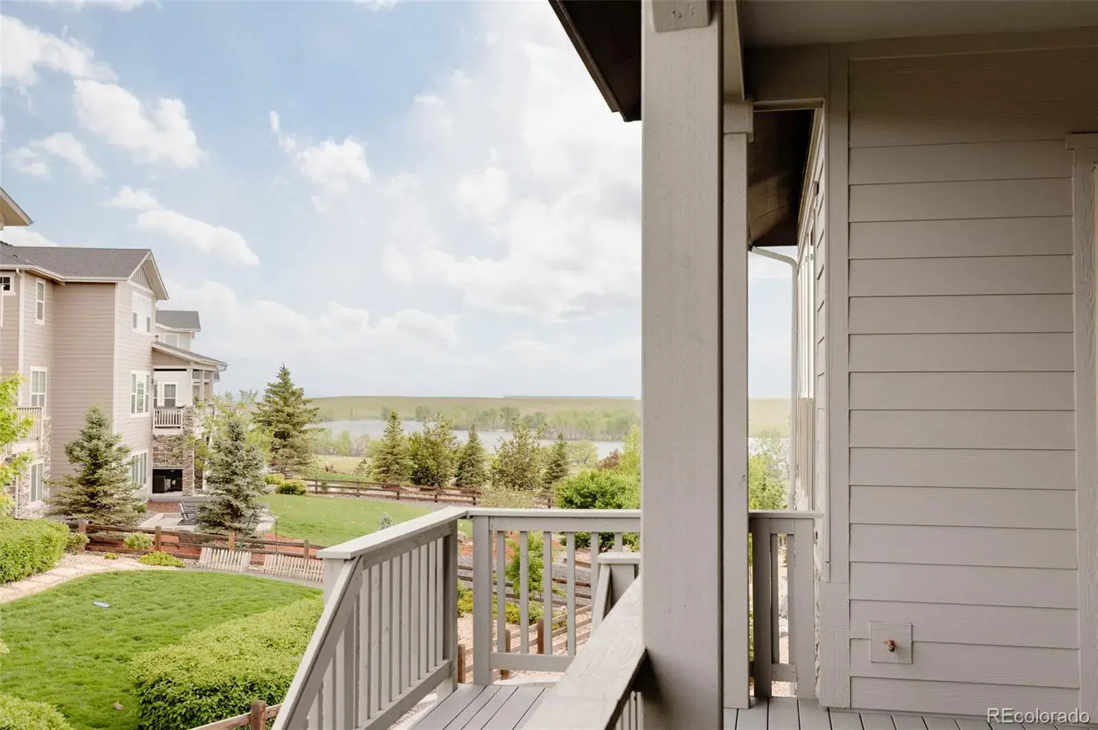Nestled between 2 resort-style clubhouses & pools, & part of the award-winning Cherry Creek School District, this home offers the best of Colorado living w/scenic trails, vibrant parks, state-of-the-art fitness centers, & the Aurora Reservoir steps away. Inside, the great room impresses with soaring 12ft ceilings & a stunning 15ft stacked slider to access an extended patio, while the dining area has a picturesque view of the reservoir. A gas fireplace with tile surround anchors the space, complemented by engineered wide-plank oak floors & recessed LED lighting throughout. The kitchen shines w/ stacked white cabinetry to the ceiling, quartz countertops, designer lighting, an extended island perfect for entertaining, & upgraded stainless steel appliances including a gas range. A large pantry completes the space. The main level features a secondary bed w/ its own en-suite bath, providing comfort & privacy for guests or family. An additional bedroom with French doors can be used as a study, showcasing water views for an ideal work-from-home retreat. The primary suite is a sanctuary with a luxurious en-suite bath boasting double vanities, upgraded countertops, a large walk-in shower with floor-to-ceiling tile, a soaking tub & a large walk-in closet. The convenient mud/laundry room enhances daily organization. The garden-level unfinished basement is bright with six large windows & ready for your custom vision, including plumbing rough-in. Upgrades include custom blinds, enhanced sound & garage insulation, gas fireplace fan, in-line humidifier, & radon detection system. The 3-car garage is pre-wired for an EV charger; the backyard is wired for a swim spa or hot tub. Outdoors, enjoy a beautifully landscaped yard w/ dual retaining walls & a custom water runoff channel. Relax on an expanded rear deck w/water views. The deck has a gas line, perfect for grilling, while a hot/cold hose bib in the front yard adds convenience. South-facing driveway ensures easy snowmelt in winter.