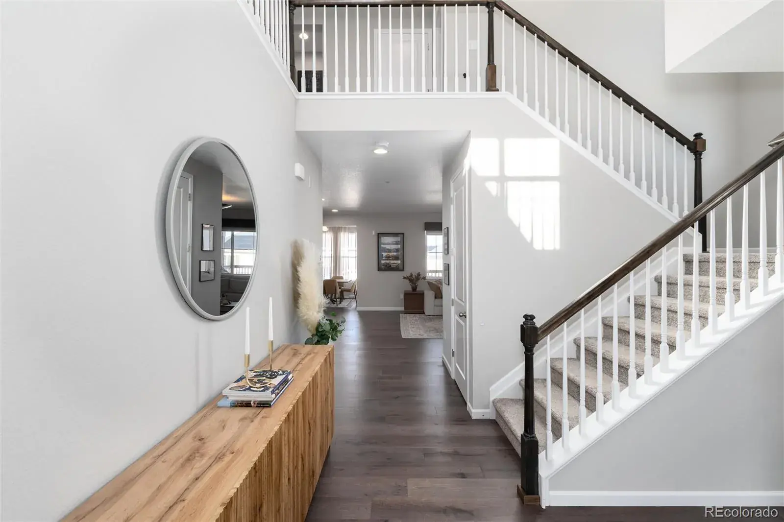 Welcome to this exquisite two-story home in the heart of Southshore. From the moment you arrive, you will feel the comfort of this home all around you. The main level invites you in with its open layout, perfect for everyday living or memorable gatherings. At the heart of the home is the gourmet kitchen offering everything you need to bring people together with a generous kitchen island, gas range, double ovens and a walk-in pantry. This open floor plan has a light and bright adjacent dining room and inviting living room featuring a gas fireplace as well as large main floor office. Upstairs, the primary bedroom is a peaceful retreat with a spa-like bathroom and walk-in closet. The spacious loft provides a comfortable spot to unwind and flex-space. Two additional bedrooms and two full bathrooms, and a conveniently located upper laundry room add everyday ease and thoughtful functionality. Downstairs, the fully finished basement offers tons of additional living space, perfect for entertaining and extra guests. Enjoy a spacious family room, playroom or flex-space and an additional bedroom and full bathroom, with plenty of storage. Sit back, relax and enjoy your privately covered deck and fully fenced and custom landscaped yard with an additional spacious patio. This home is minutes from amenities which include two resort-style pools, fitness center, playgrounds, neighborhood parks, and miles of trails to explore. Located in the Cherry Creek School District with easy access to the Altitude elementary school. Here, you’ll find more than just a home, you’ll also find community. Virtual Tour: https://my.matterport.com/show/?m=SqfhoSmQjCf