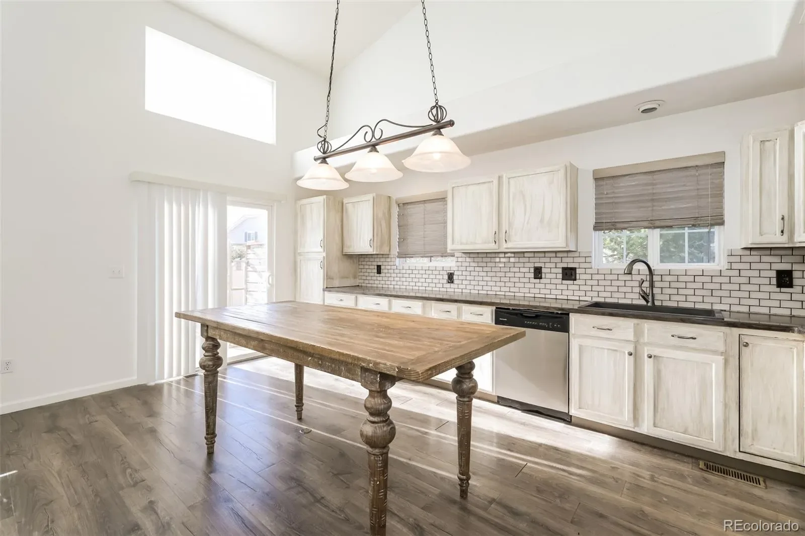 Welcome to 2604 S Dunkirk Ct! A well-located home offering comfortable living space with convenient access to parks, schools, and everyday amenities. This home features a functional layout with welcoming living areas that flow into the kitchen and dining space, creating an easy setup for daily living or entertaining. The highlight of the home is the gorgeous kitchen overlooking the living room with soaring vaulted ceilings and fireplace with floor-to-ceiling stone. Also on the main floor you’ll find a dedicated laundry, a dining room that would also make a great home office, and a mudroom & laundry room The primary bedroom sits tucked away on its own floor, offering a quiet retreat from the rest of the house. Two additional bedrooms and full bath are situated on the top floor.
