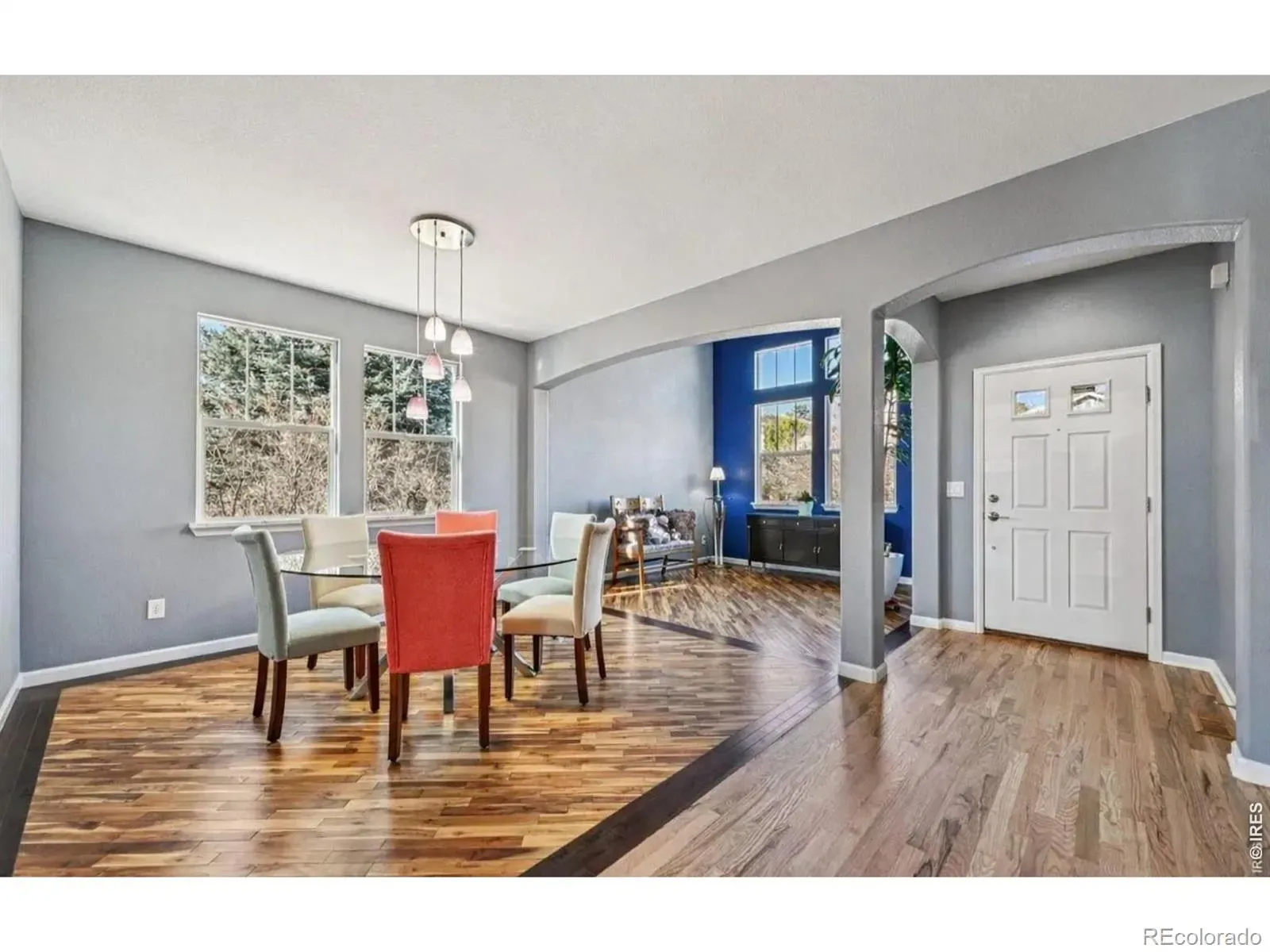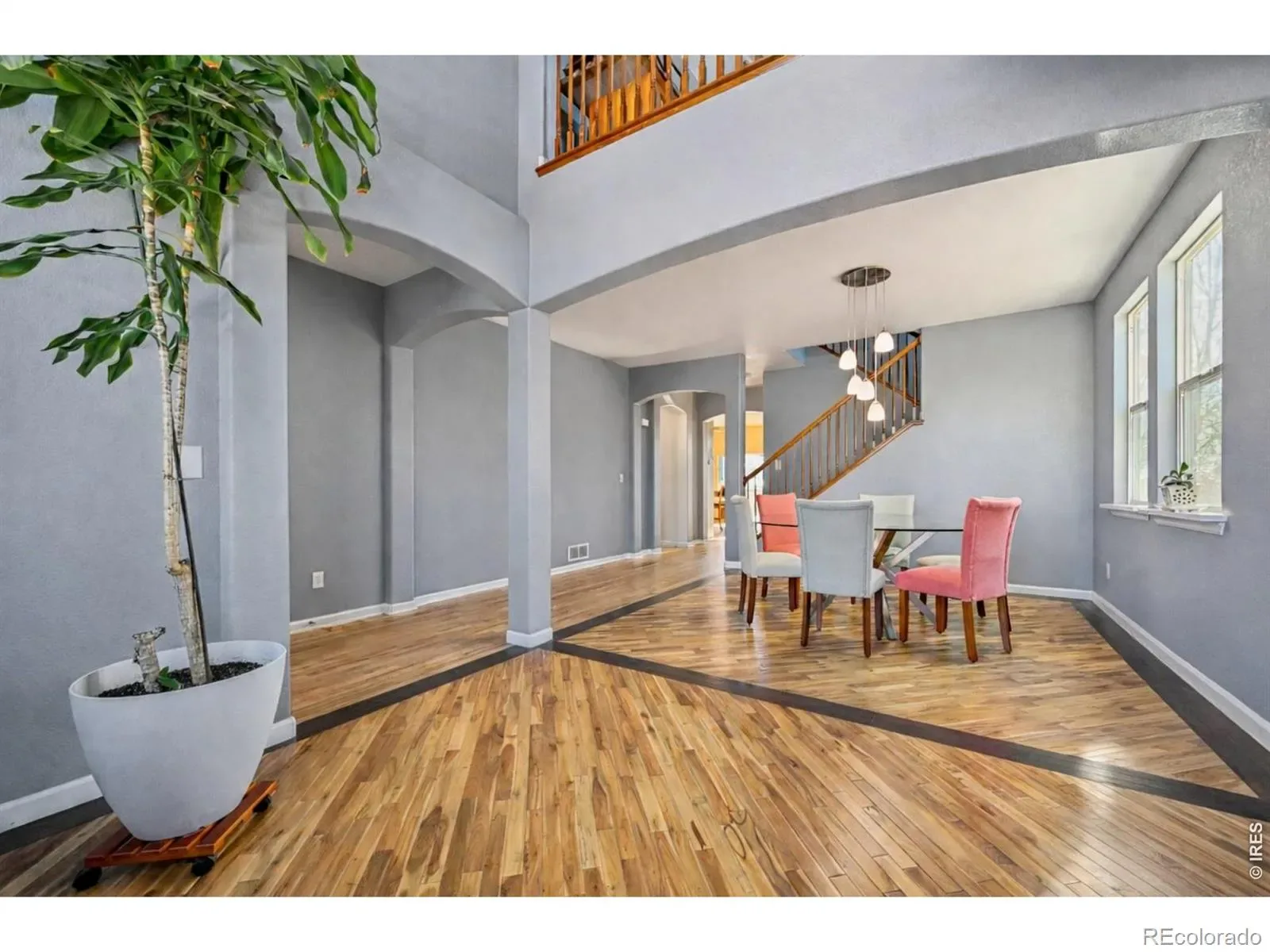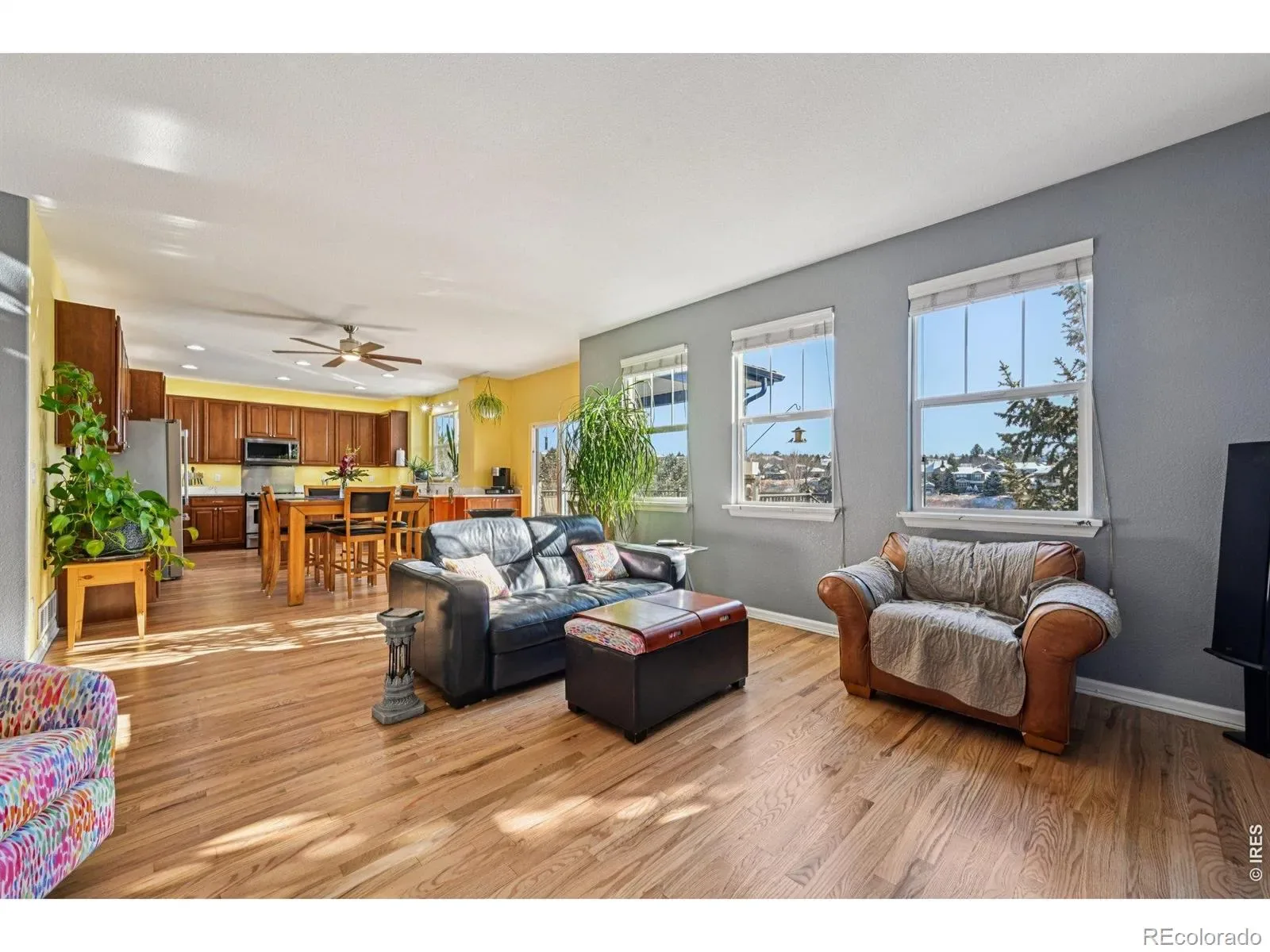 Welcome home to this beautiful 2-story residence in desirable Tallyn’s Reach North, ideally situated on a premium lot adjacent to greenbelt on two sides with mountain views. Thoughtfully designed for everyday living and entertaining, this home offers 5 bedrooms, 4 bathrooms, finished walk-out basement, and oversized 2.5-car garage. A covered entry opens to warm hardwood floors and soaring ceilings, creating an inviting first impression. The light-filled living room features dramatic two-story windows, while the formal dining room accommodates both intimate dinners and larger gatherings. The open-concept great room includes a cozy gas fireplace and overlooks lush landscaping. The spacious kitchen is equipped with quartz countertops, a large island, stainless steel appliances, abundant cabinetry with under and over cabinet lighting, a built-in desk, and a sunny breakfast nook with access to the deck. The finished walk-out basement expands the living space with a large rec room, second kitchen, wet bar, built-ins, second laundry hookup, bedroom, and 3/4 bath, offering excellent flexibility for guests or multi-generational living. Upstairs, a versatile loft leads to the primary suite featuring a heated floor bathroom and a cedar-lined walk-in closet with built-ins. Three additional bedrooms, a full bath, and an upper-level laundry room complete the floor. Outdoor living shines with a partially covered composite deck, prewired and plumbed for gas, electric, and speakers, plus a covered patio below. The fully fenced yard includes mature trees, sprinkler system, and professionally designed landscaping. Additional features include a finished, insulated oversized garage with built-in workbench, storage, and gas line for heater. Enjoy access to community amenities including clubhouse, pool, tennis courts, parks, and trails, all within close proximity to Cherry Creek schools, shopping, dining, and recreation.