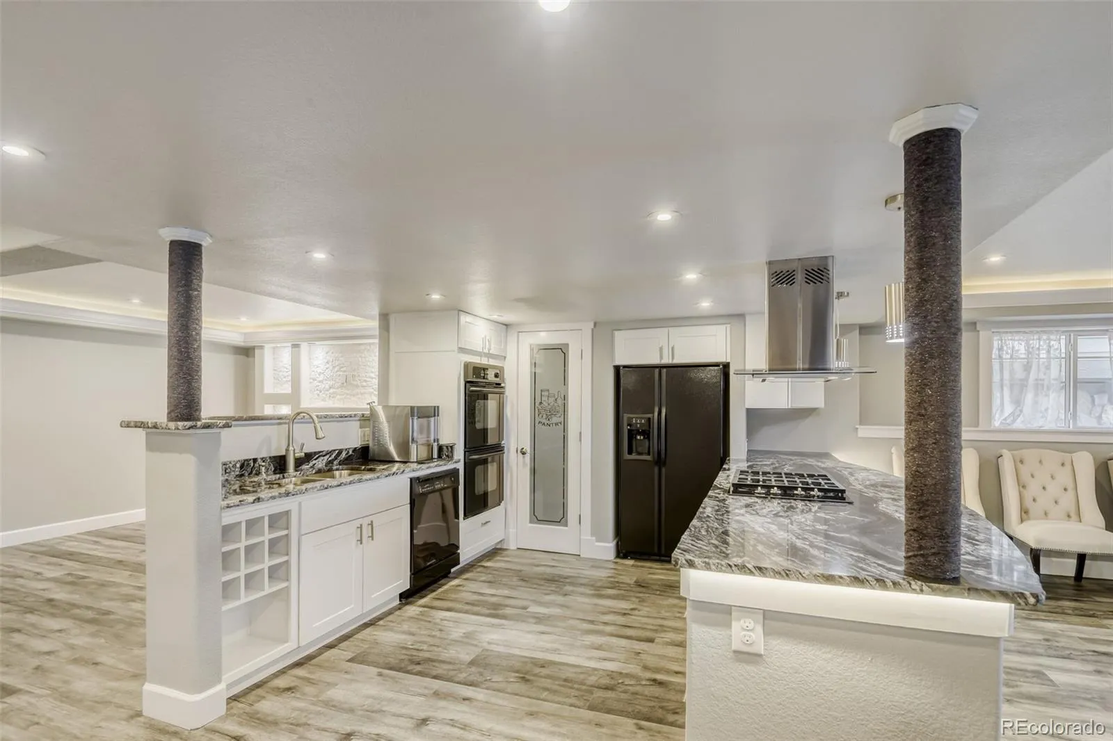 Designed for multigenerational living, guest accommodations, or unforgettable gatherings. The finished walk-out basement features LVP flooring, crown molding, custom lighting, a modern fireplace, spacious recreation area, abundant finished storage, and a second full chef’s kitchen with double ovens, gas cooktop, dishwasher, microwave, hood, and pantry. A second laundry room and additional bedroom with walk-in closet complete the lower level.