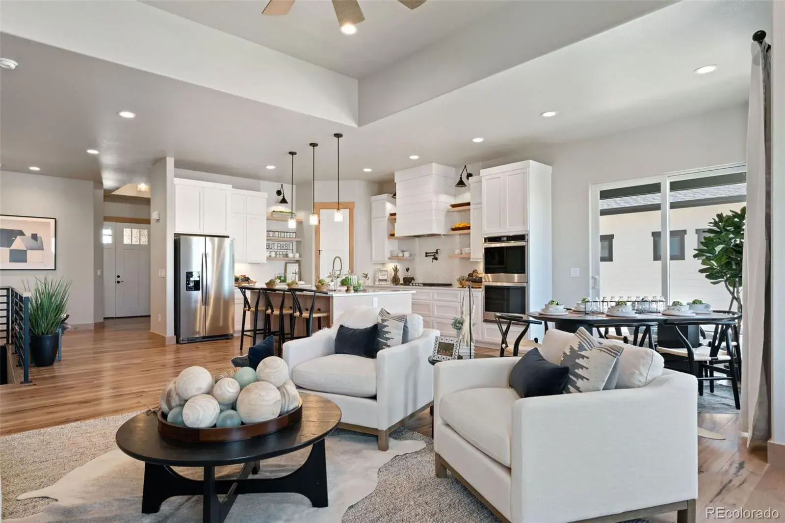 Former Model Home – The Hudson by Bridgewater Homes!Don’t miss your chance to own the sought-after Hudson model, Bridgewater Homes’ most popular ranch-style floor plan, now available for the first time! This former model is packed with high-end upgrades and thoughtful design throughout.Featuring 4 bedrooms, 3 bathrooms, a main floor office, and a fully finished basement with a wet bar, this home is ideal for both everyday living and entertaining. Quality craftsmanship shines with 2’x6′ exterior walls and premium finishes at every turn.The light-filled main level offers Front Range views and low-maintenance luxury, including engineered hardwood flooring, an open-concept layout, and a gourmet kitchen complete with slab quartz countertops, custom Tharp cabinetry, gas range with double ovens, stainless steel appliances, and a spacious walk-in pantry. Relax by the gas fireplace or step into the expanded primary suite, which features a square bay window, luxury 4-piece bath, and a large walk-in closet.Enjoy true low-maintenance living with professional front and back yard landscaping, an 11’x18′ covered patio for outdoor gatherings, and an oversized 3-car garage for all your storage needs and an EV Charger.Every detail carefully curated, this home blends comfort, style, and effortless living. Schedule your private showing today!