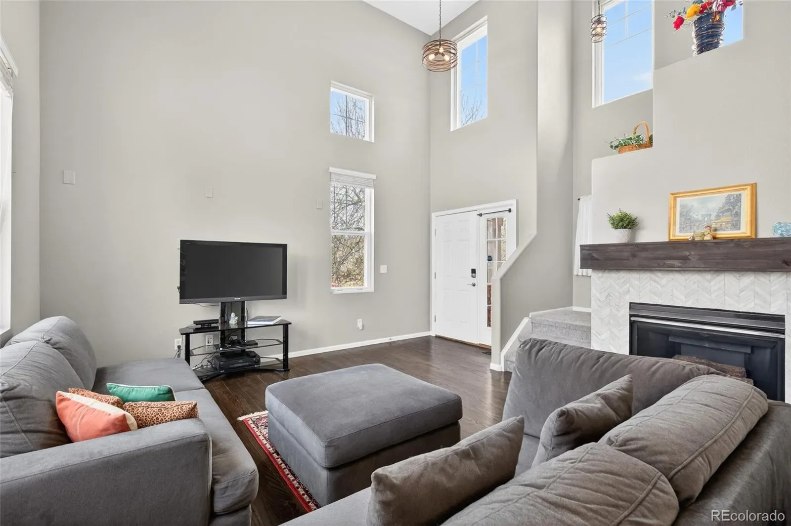 Discover an incredible opportunity nestled in the Conservatory – one of Aurora’s most sought after neighborhoods!! The Conservatory is a quiet, family-friendly, covenant-controlled community known for its well-maintained homes, extensive trails, pool, pocket parks and close proximity to the 1,100-acre Plains Conservation Center. Located on the eastern edge of Aurora, it offers a suburban feel with easy access to shopping, schools, dining and mountain views. This home is in a prime location in the community that backs to open space which you can enjoy while in your yard or sitting on your extend deck. Let’s talk about your home which is welcoming and filled with natural light. Upgrades include granite tile countertops, a tastefully designed brick backsplash, wood floors on the main level, fireplace surround by custom tilework, upgraded carpet and new interior paint both in 2024 along with the air ducts that were cleaned in 2024. There is a gas line behind the electric stove as well that would allow you to easily change to a gas stove. The renovated primary bathroom features frameless glass doors on the shower and a modern vanity. The hall bath was also renovated to include an elevated basin on the modern vanity and tile was added in the tub/shower. The primary bedroom has stunning mountain views, connections to easily mount your TV to the wall as well as two closets – a walk in and a wall closet! The secondary bedrooms each have upgraded ceiling fans & both are large enough to comfortably fit a queen size bed. The 4th bedroom is located in the basement with an egress window an a closet. This area can be used as a multi purpose space to fit your needs. Your home is conveniently located a few minutes away from the Aurora Reservoir, Southlands Mall and Buckley Space Force Base. There is also easy access to E470, DIA, the DTC, I225 and I70.