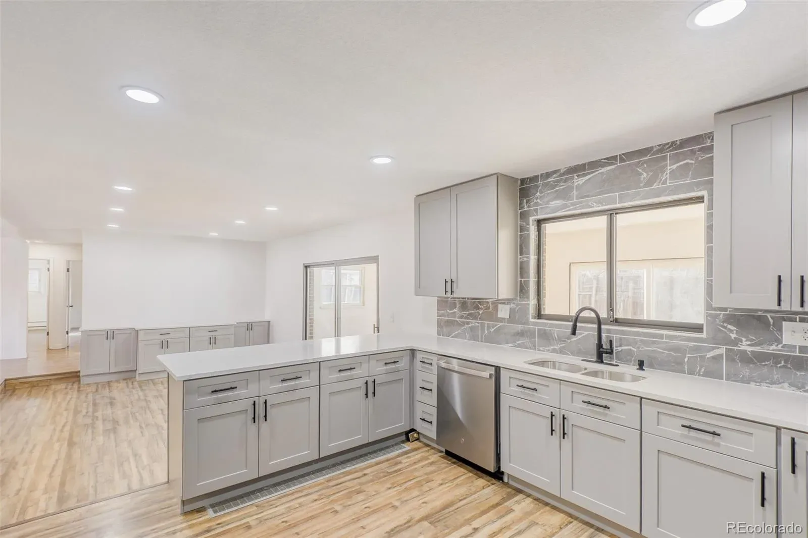 Enjoy the comfort and convenience of true one-level living. This completely remodeled ranch style home showcases a bright, open concept design. The layout creates seamless transitions between living spaces, ideal for both relaxing and entertaining. Located in a beautiful, quiet neighborhood next to Aurora Hills Golf Course. Wide plank laminate flooring runs throughout the entire home, complemented by upgraded lighting, designer paint, and custom built-in cabinets in the living room. The modern kitchen showcases brand new custom cabinets, 42” upper cabinets, quartz countertops, and stainless steel appliances, perfect for everyday living. This thoughtfully updated home features 4 bedrooms and 3 bathrooms. Including a spacious primary bedroom with en suite that has been completely remodeled. The three additional bedrooms share a beautifully renovated bathroom, offering both comfort and convenience. This updated bathroom features stylish finishes including all new vanity with double sinks, making it easy for multiple people to get ready at the same time. The sunroom leads to a private backyard with perennials beginning to pop-up and along with raised flower beds. Homes in this great neighborhood don’t come for sale that often, so don’t miss this opportunity!