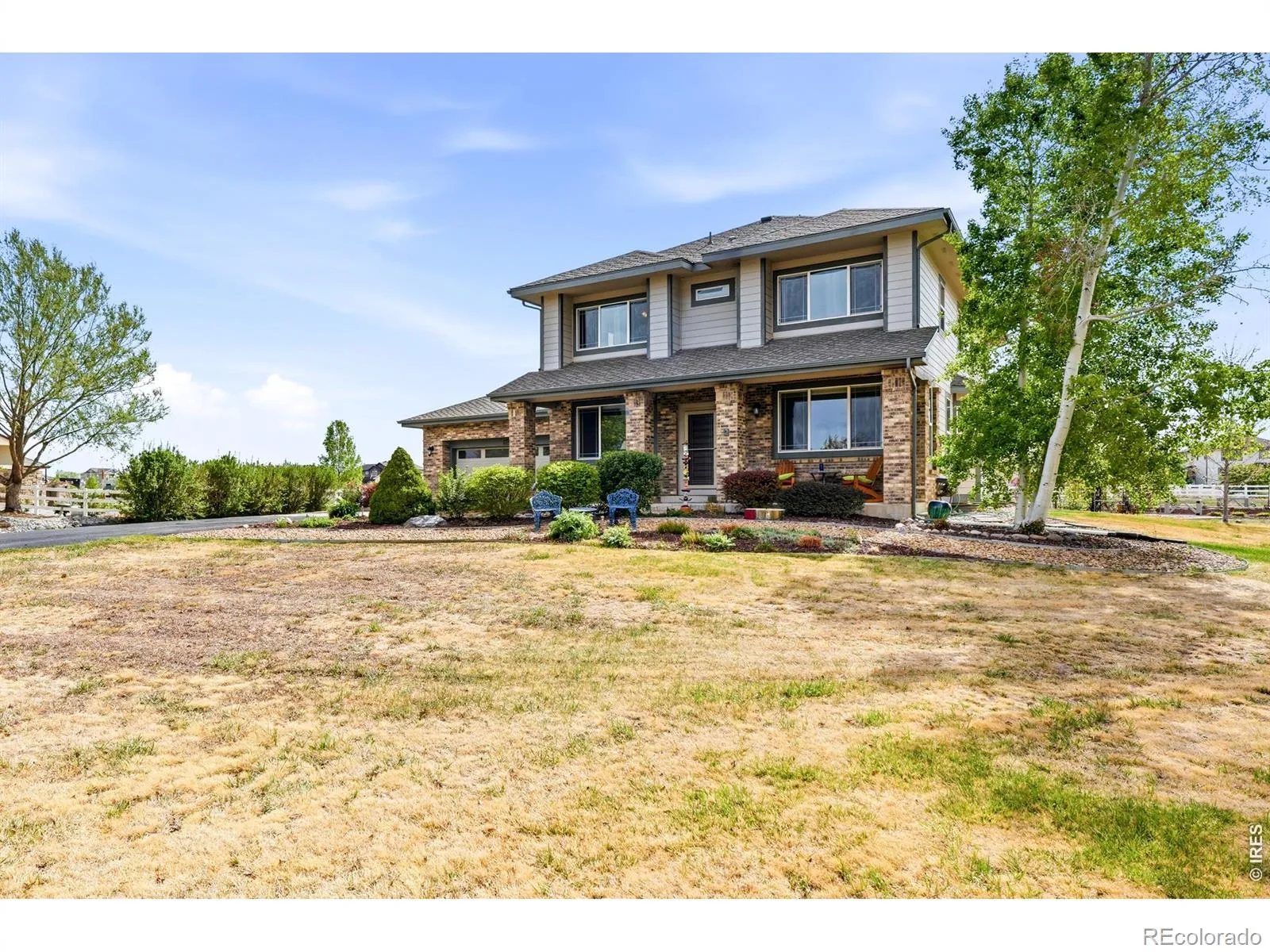Step inside & feel instantly at home. Rich wood floors sets a warm, welcoming tone & carry you through a bright, open layout. Just off the entry, a dedicated study offers a quiet place to focus. At the heart of the home, the spacious great room is filled with natural light, highlighted by 9 foot ceilings and a cozy gas fireplace. It flows into the chef-inspired kitchen-as functional as it is beautiful. Featuring slab granite countertops & backsplash, stainless steel appliances, double ovens, a pantry & generous cabinetry, this kitchen is ready. The open connection to the living & dining areas make it easy to stay engaged w/family & guests.A spacious laundry room off of the kitchen w/built-in shelving & a utility sink adds an everyday convenience.The primary suite offers a peaceful retreat at the end of the day. Its spa-like en-suite bath includes dual vanities, a soaking tub, a separate shower, & a spacious walk-in closet. 3 additional bedrooms provide flexibility for guests or creative spaces, complemented by well-placed bathrooms. Downstairs, the full unfinished basement opens the door to endless possibilities-a home gym, recreation room or additional living space. Outside, the setting is just as compelling. Set on over an acre in the sought-after Eagle Shadow community, this property offers sweeping panoramic views that bring a sense of calm and openness. The out backyard is a blank canvas, supported by Todd Creek irrigation. The seamless indoor-outdoor flow makes it easy to enjoy Colorado’s beautiful seasons.There’s no shortage of space for your lifestyle w/a tandem four-car garage & a detached garage. This location that feels like a private retreat, yet keeps you close-just 10 minutes to Brighton & 30 minutes to Denver/DIA. With its generous space, thoughtful upgrades, and breathtaking surroundings, this move-in-ready home offers a rare opportunity to enjoy comfort, convenience, and a true Colorado lifestyle. Welcome home.